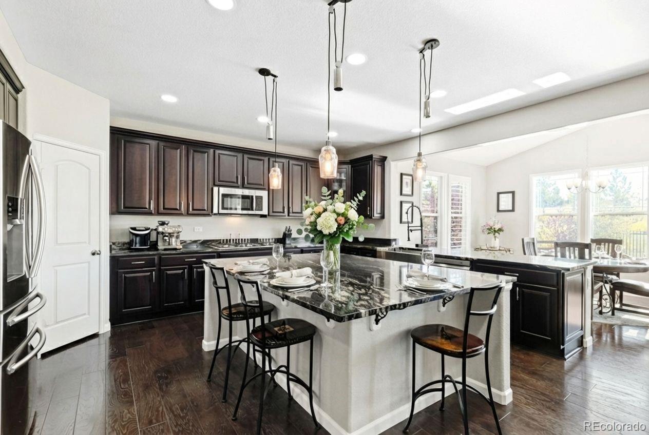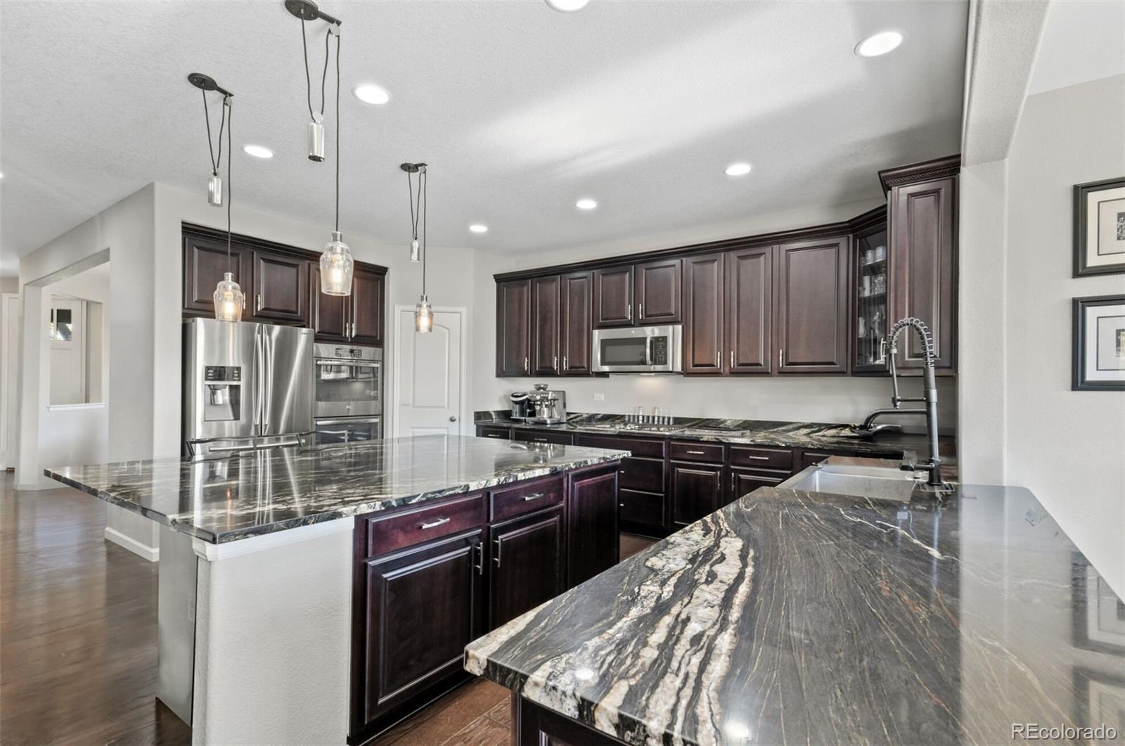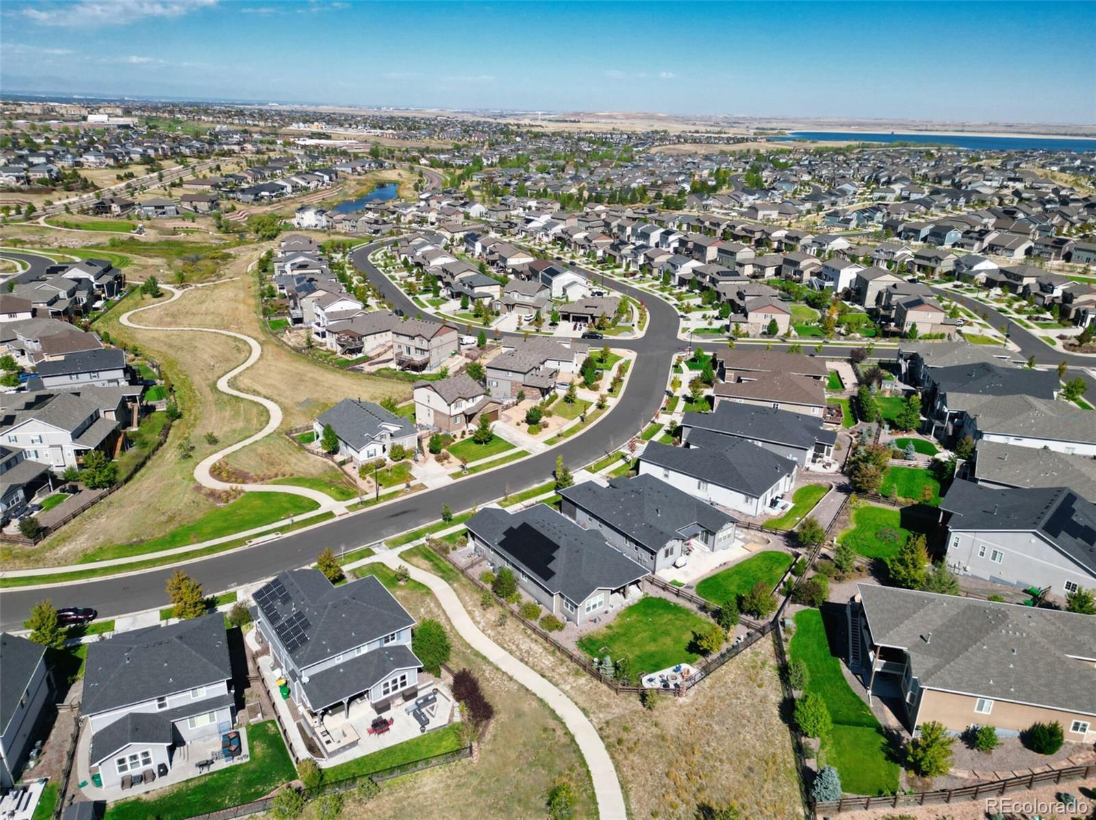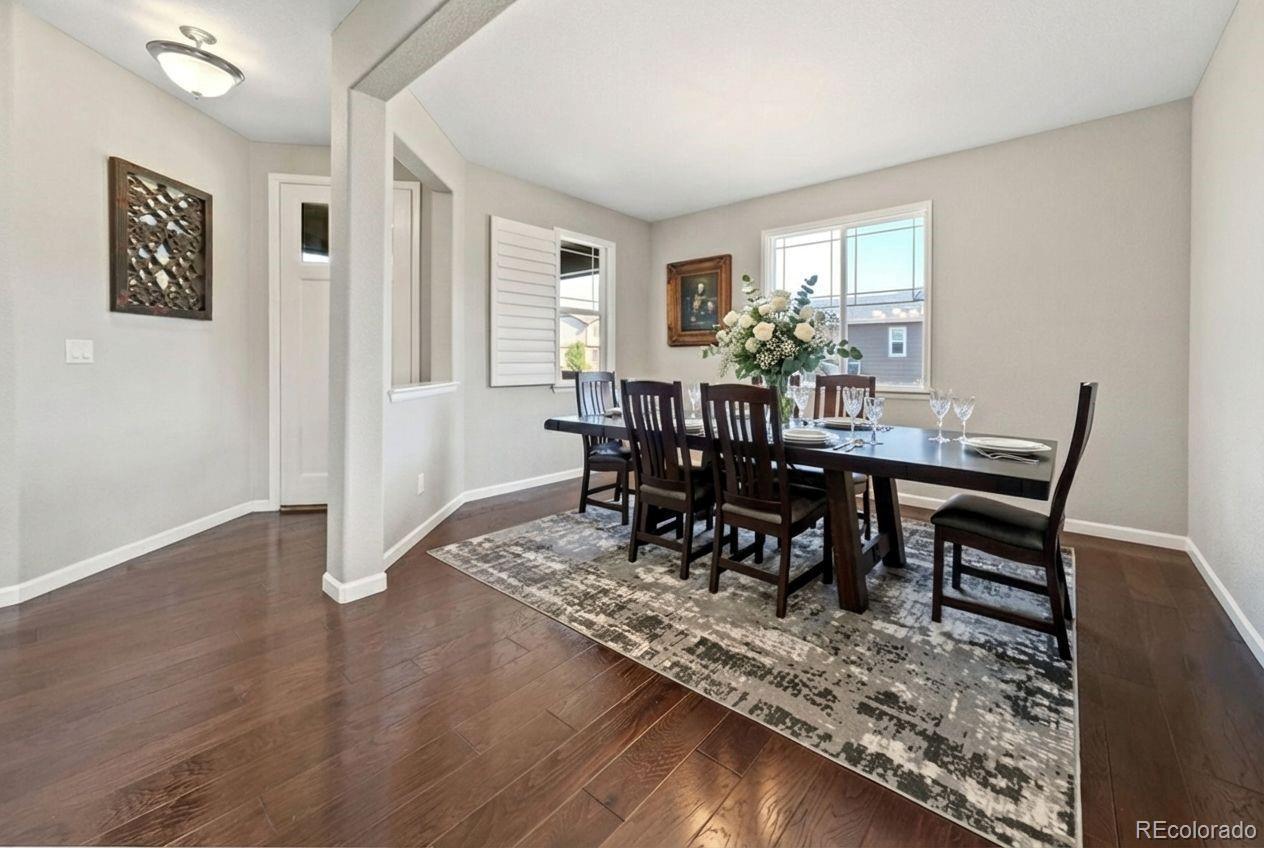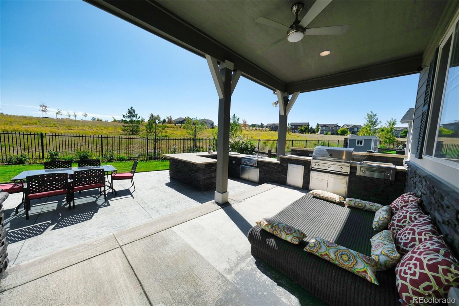 Better than new SETH! Walk tro top rated Cherry Creek School District K-12, backs to greenbelt, across the street from walking trails, you couldn't ask for a better location! This exquisite 2-story home epitomizes comfort, luxury, and convenience! Boasting 5 bedrooms and 3 bathrooms, this immaculate residence is impeccably maintained and awaits your immediate enjoyment. Upon entry, the open layout of the main level creates an inviting atmosphere, perfect for entertaining guests. The cozy family room, complete with a gas fireplace, sets the stage for intimate gatherings, while the formal dining room provides an elegant backdrop for memorable meals. Additionally, a main floor bedroom easily transitions to a convenient home office. The heart of the home, the gourmet kitchen is a Chef's dream! It features stainless steel appliances 42" upper cabinets, granite counters, a walk-in pantry and a remarkable oversized island. Upstairs, the spacious owner's suite offers a luxurious retreat, with a spa-like 5-piece bath and dual walk in closets. Three additional bedrooms, 2 bathrooms, a generous loft and a super handy laundry room complete the upper level. Step outside into your private backyard oasis, complete with an outdoor kitchen with two beer taps and top of the line Lynx appliances. The covered patio provides ample space for outdoor entertaining. Enjoy the tranquility of a wonderfully landscaped yard and gather around the fire pit for cozy evenings under the stars. With direct access to open space and trails, this home offers unparalleled opportunities for outdoor recreation and exploration. Experience the unique lifestyle of Southshore! Walk to the new K-12 and Rec Center in minutes! Residents enjoy access to a wealth of amenities, including the newly opened 9,000 square feet recreation center. Features such as year-round natural light, high end finishes, and a serene, quiet street add to the allure of this exceptional property. It's a rare opportunity not to be missed!