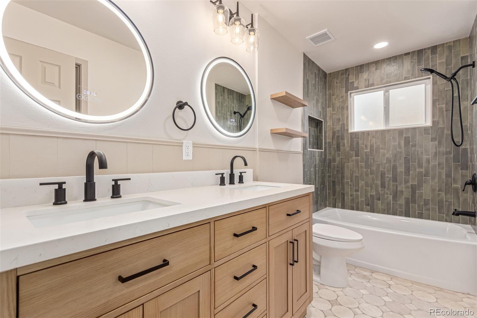 Welcome to Your Dream Home in Leawood! 6437 W Arbor Drive – Truly a Must-See! Discover this beautifully remodeled single-family home offering 4 bedrooms, 3 bathrooms, and a finished basement that can easily serve as a FIFTH bedroom (non-conforming) or additional living space. Every inch of this home has been thoughtfully designed, blending modern updates with warm, organic touches throughout. The modern exterior features new siding and fresh paint, new front and garage doors, and lovely curb appeal. Step inside to find new flooring, new carpet on the upper levels and basement, and new windows that fill the home with natural light. Inside, you’ll love the new media wall and dry bar! The brand-new kitchen showcases white-oak cabinets, designer tile backsplash, new pantry and quartz countertops, complete with new stainless-steel appliances for your peace of mind. Cozy up this winter by not one, but two fireplaces, creating the perfect ambiance for relaxing or entertaining. All bathrooms have been nicely updated, including jack-and-jill sinks with a soaking tub in the primary bathroom. Major systems have been updated, including a new AC unit, furnace, and water heater, making this home truly move-in ready. Outside, enjoy a private backyard with two storage sheds included, plus RV parking alongside the driveway. All with no HOA to restrict your plans! Located within walking distance to several parks and trails, with easy access to the Foothills, Columbine High School, Chatfield Reservoir, shopping, Southwest Plaza, restaurants, and entertainment, you’ll love the convenience and lifestyle this neighborhood offers. Immaculate, thoughtfully updated, and ready for new owners—your buyers will fall in love!