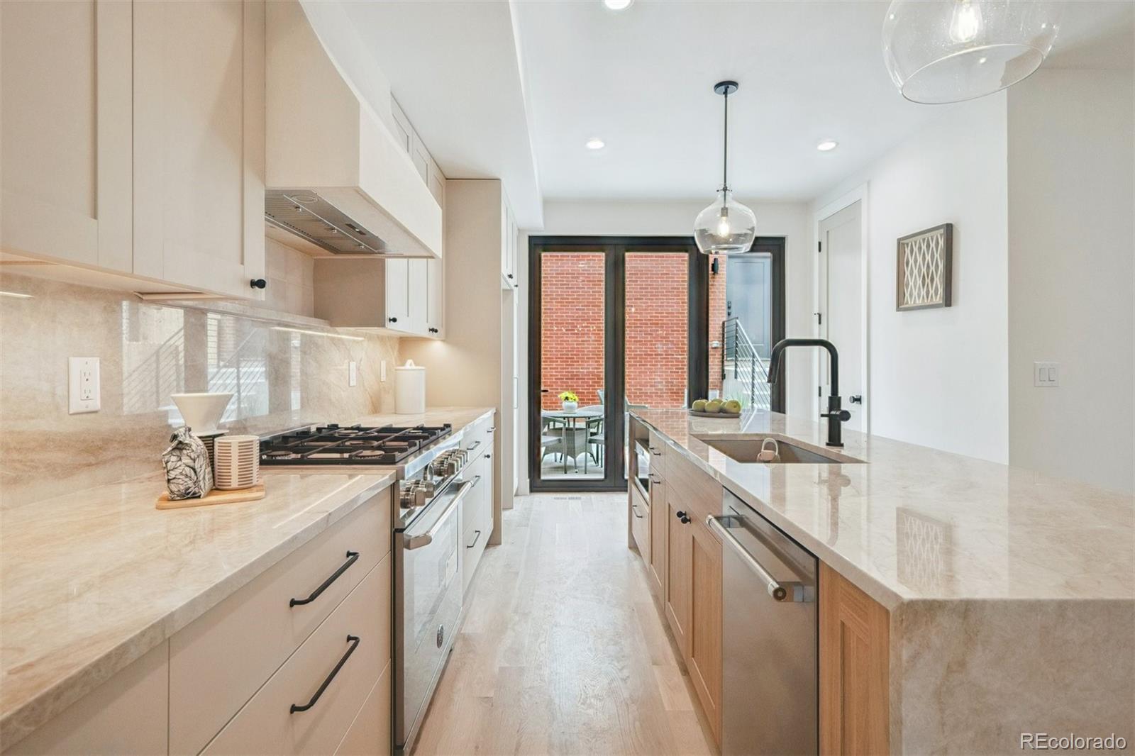 New Price for this Rare New Construction Single Family Home in the coveted Potter Highlands Historical District with 3 beds, 4 baths and almost 2600 sq ft of living space Situated just blocks from coffee shops, restaurants and retail in the Highlands, Zuni Street and LOHI neighborhoods * Professionally Designed and Built By One Of The Neighborhood's Top Builders * Super Unique Brick Exterior and Interior Layout (truly one of a kind) * Luxurious Living room with den and gas fireplace and 9 ft wide NANO doors to the outside patio * Chef's kitchen with pro appliances, pantry and "Taj Mahal" quartz countertops waterfall island - perfect for entertaining *Tons of natural light and oak hardwood floors throughout the main level. * Dining room off kitchen and living room * Front entryway has built in storage and a bench. *Upper level spacious owner's suite with vaulted ceilings, hardwood floors, balcony, x-large walk in closet & 5 piece bathroom with soaking tub and walk in shower * One (1) more bedroom with ensuite full bath along with laundry with utility sink and cabinets on the upper level * Lower level has a guest suite, full bathroom, family/media room* Fully Fenced Private Back Yard and detached two (2) car garage * This great home comes with a TESLA solar power array on the roof potentially reducing utility costs. * Hard to find a single family home just blocks from all that the Highlands and LOHI has to offer *