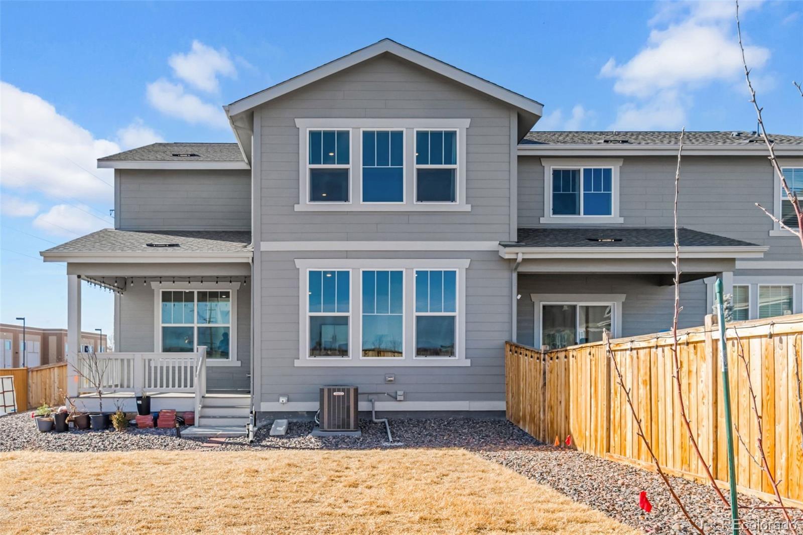 Perfect for buyers wanting a single-family feel! This almost-new townhome offers the space and privacy of a detached home—an exceptional find in today’s market. This beautiful Ascent model 2-story features 3 bedrooms, 2.5 baths, a loft, and a 2-car attached garage, plus a full unfinished basement with outstanding future expansion and equity potential. Even more rare is the huge private backyard, complete with privacy fencing, ideal for outdoor living and entertaining. Inside, enjoy an open-concept layout with custom cabinetry, slab quartz countertops, Delfino luxury vinyl plank flooring, and stylish modern finishes throughout. The home also features an upgraded wrap-around porch, covered front and back decks, and front yard landscaping, enhancing both curb appeal and functionality. Built by Lennar Homes, this property includes high-end features as standard, including GE kitchen appliances, faux window blinds in privacy areas, and a full suite of smart home technology: Ring video doorbell, wireless access point, garage door hub, smart thermostat, and smart water shutoff system. Energy efficiency and connectivity are seamlessly blended with modern luxury. Furniture is new and negotiable, making this home truly move-in ready. Conveniently located near dining, shopping, entertainment, and everyday amenities—this is Colorado living at its finest.