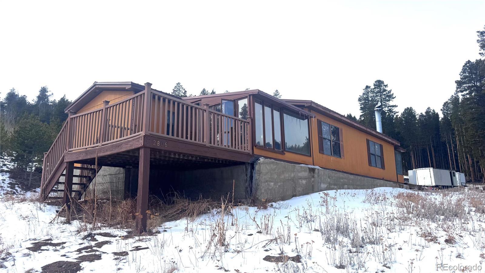 Stunning private location close to Chase Gulch Reservoir. With National Forest on 3 sides, this manufactured home sits on over 5 acres and has an oversized 3 car garage plus multiple outbuildings. The home is 1538 Square Feet, 2 bedrooms, 2 bathrooms, all on one level. Metal roof on home and garage. Needs some work and TLC but is a fantastic opportunity to live in quiet and seclusion in rural Gilpin County significantly below market value. Sunny, spacious meadow. Abundance of wildlife. You can hike to back of property and there is a creek as the property meets National Forest. Abandoned mine shaft has been covered. No HOA. Easy Access to Denver and Ski Resorts Via I-70. Close to Black Hawk and Central City Casino's and Fine Dining, Hiking, Biking, ATV Trails, Rock Climbing and Rafting Close By. Super Low Gilpin County Taxes. Sold strictly As-Is.
