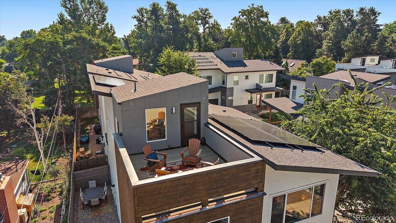Experience the perfect harmony of modern design and effortless upkeep in the heart of Wheat Ridge with this 4-bed, 4-bath home. One of only seven detached single-family residences in the Incarnation Community, this property offers a private rear yard, corner lot, 2-car attached garage, rooftop deck with sprawling Mountain Views, and a fully paid off solar system. Inside, the open-concept main floor is designed for both everyday comfort and memorable entertaining, showcasing a sleek gas fireplace, powered window coverings, and a convenient main floor half bath. The chef’s kitchen is a true showpiece, complete with stainless steel appliances, granite counters, an oversized center island, and a walk-in pantry with ample natural light. Upstairs, the primary suite serves as your own personal retreat with custom draperies, expansive walk-in closet, and a spa-worthy 5-piece bath featuring dual sinks, granite counters, a freestanding soaking tub, and a glass-enclosed shower. Two additional bedrooms, full bath, and convenient laundry room complete the upper level. The finished basement offers even more living space with a large family room, conforming guest bedroom, full bath, and generous storage. Outside you’ll enjoy a private fenced rear yard with a custom paver patio and gas hookup for grilling. Make your way upstairs to the private rooftop deck to enjoy sweeping mountain views with friends and family. Adding exceptional value, the current owners have installed a fully paid-off 9.6 kW grid-tied solar electric system sized beyond the home’s needs. This powerful system not only offsets energy costs but also generates surplus electricity that earns monthly credits, providing reserve power for cloudy or snowy days (potentially no more electric bills). With an HOA that handles exterior maintenance, structure, insurance, and landscaping, your weekends are free to explore nearby parks, dining, and shops. If you sleep on it, you may not sleep in it - Book your showing today!