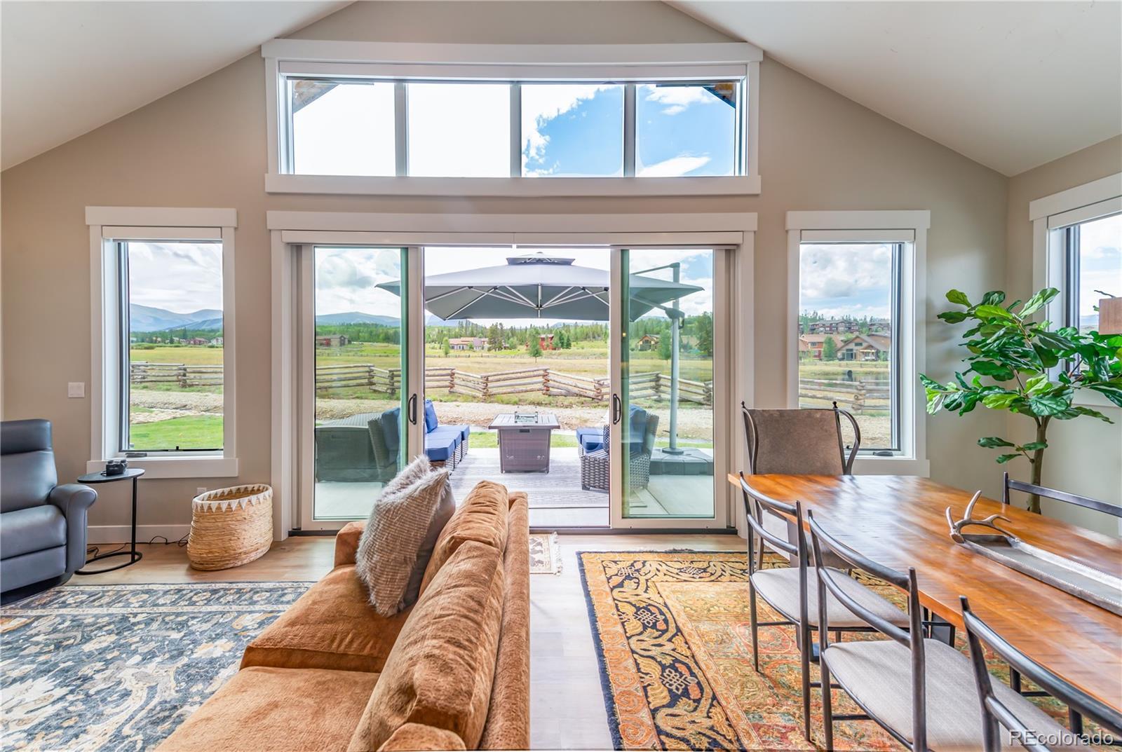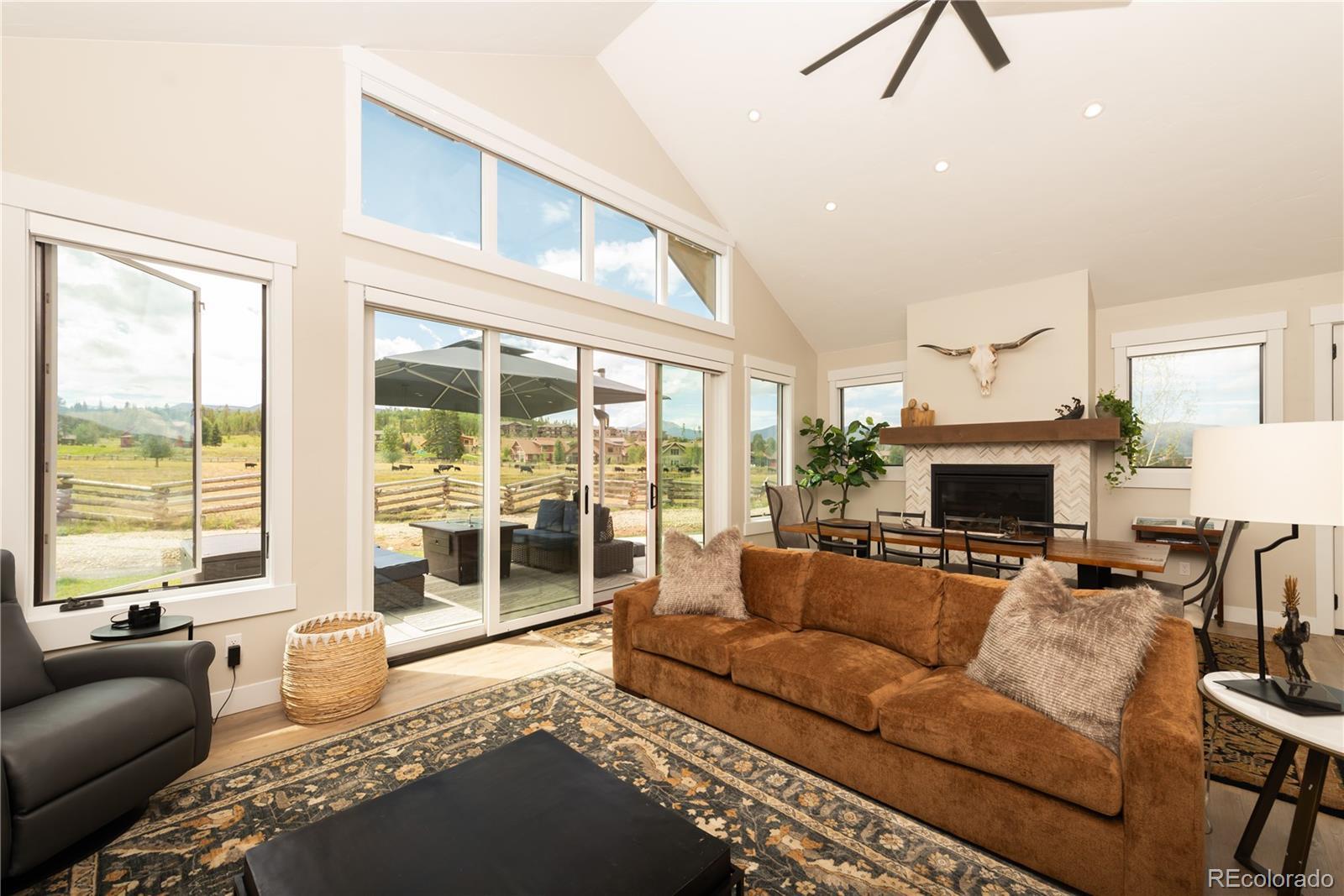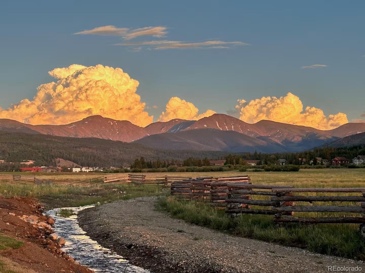 A rare opportunity in Grand Park: this 2021-built mountain contemporary sits on a premium lot backing to a protected meadow/conservation easement—guaranteeing permanent open space and views. Enjoy sweeping Byers Peak vistas, a peaceful streamside setting, and exceptional privacy. The 4 bed / 4 bath, 2,939 sq ft layout features a bright open main level with a chef’s kitchen, large island, butler’s pantry, and seamless indoor/outdoor living. The main-level primary suite offers patio and hot tub access with mountain views. Upstairs includes a second living area and additional bedrooms, ideal for guests. Offered turn-key and fully furnished, with an 8-person hot tub and 3-car garage for all your mountain gear. Walk to trails, dining, the Lift bus, and rec center—minutes from Winter Park Resort. Newer construction, protected open space, and a single-family home make this property stand out in the Fraser market.