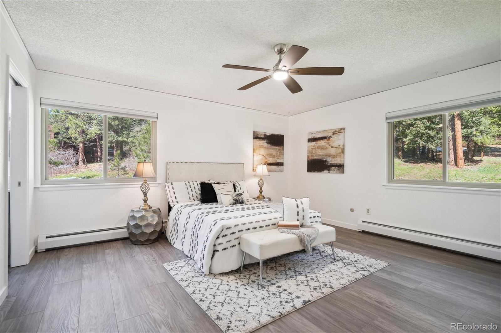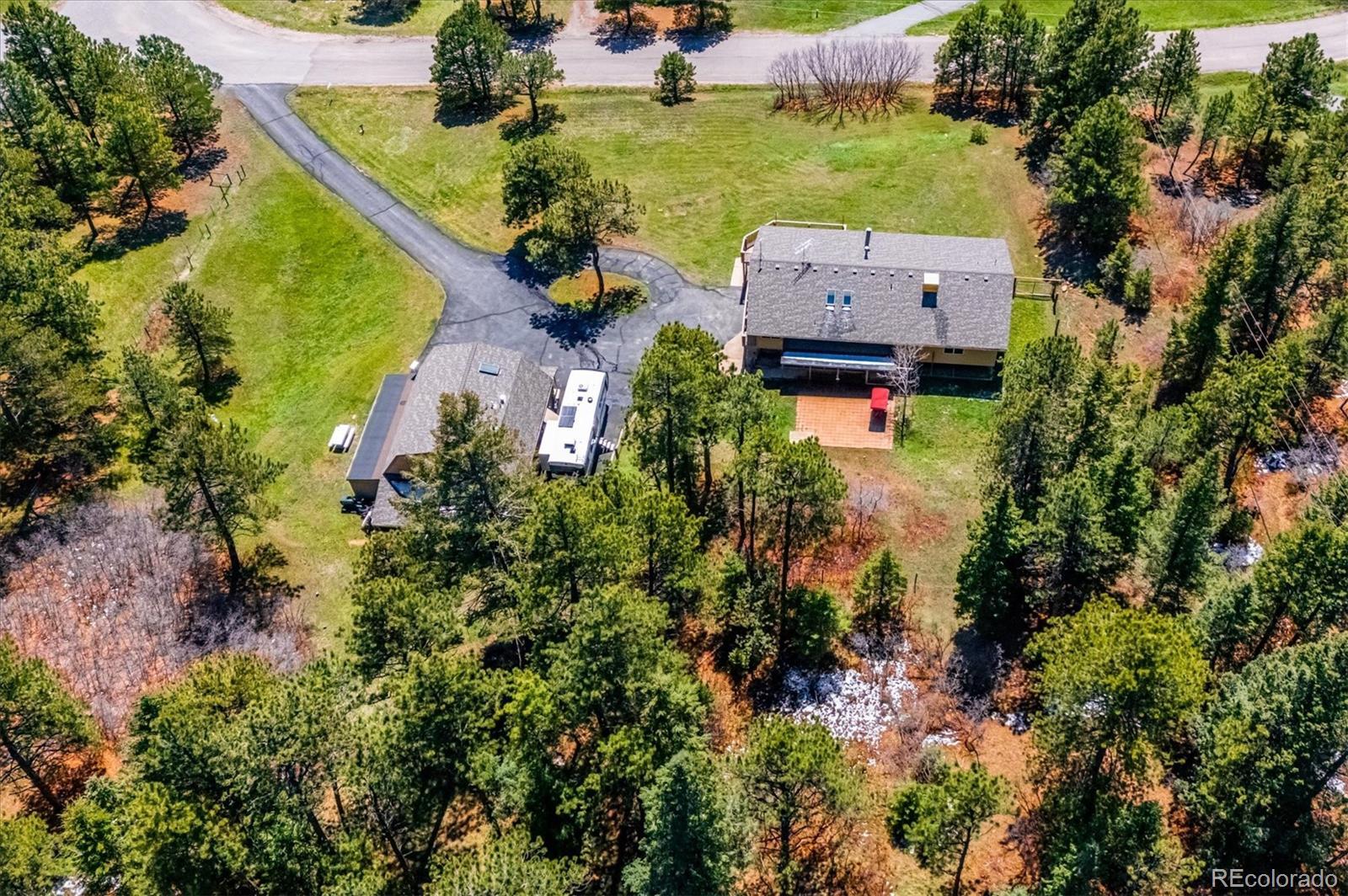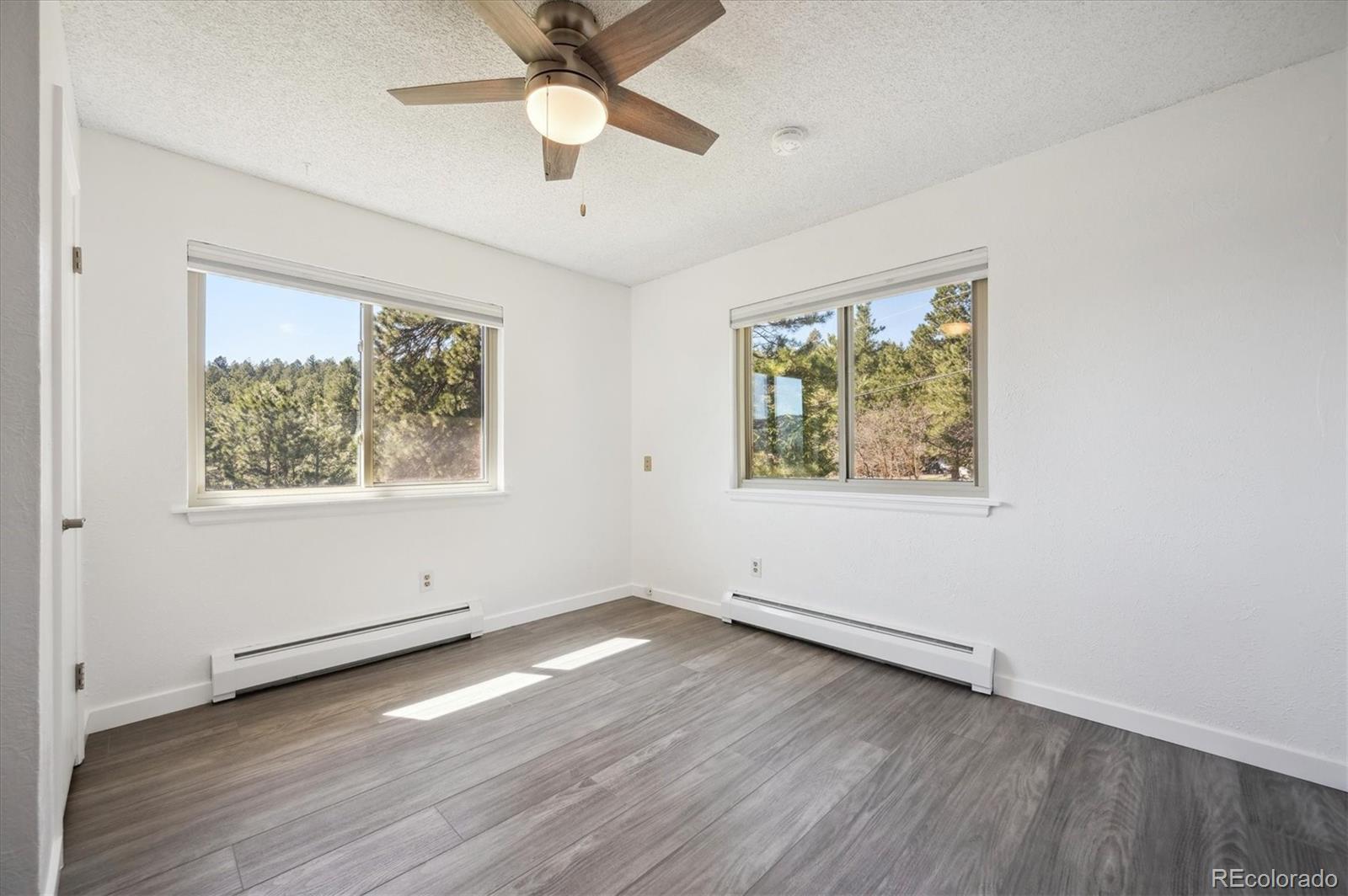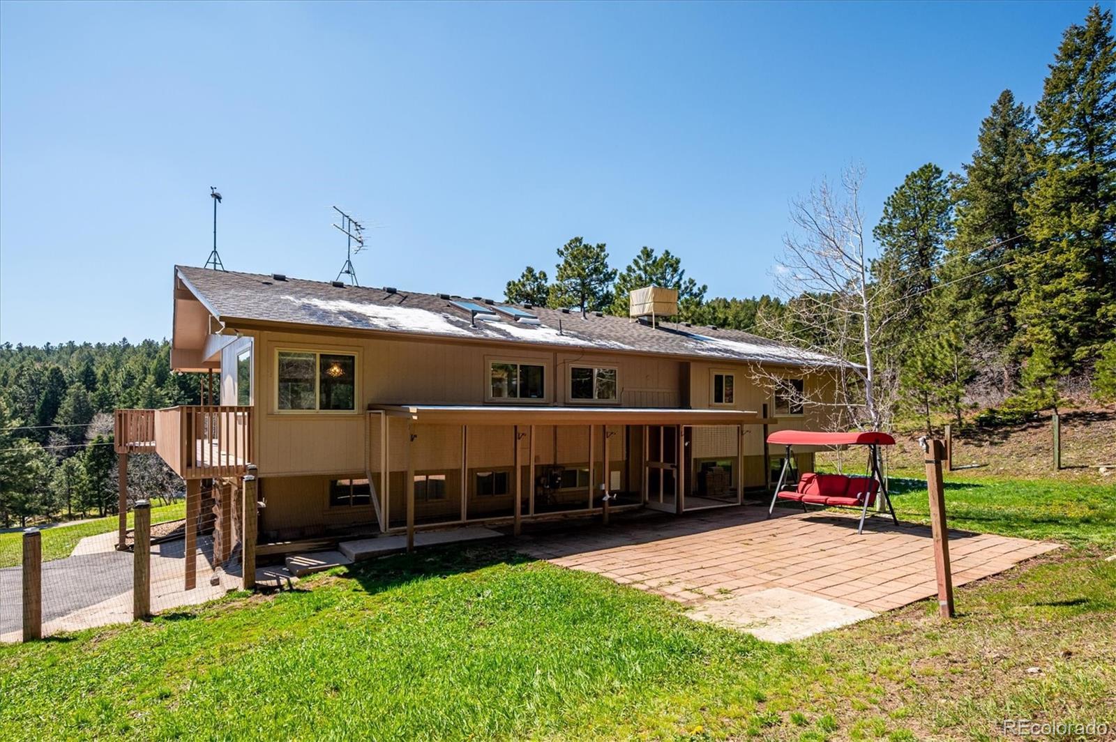 Tucked into a serene, gently sloping 2-acre lot, this updated mountain property offers the perfect blend of comfort, function, and flexibility, plus a rare income-producing opportunity. The standout feature is a fully legal, rentable, county-compliant 1,280 sq ft Accessory Dwelling Unit (ADU). Thoughtfully designed for comfort and independence, the ADU features zero-entry flooring for accessibility, a private 1-bedroom, 1-bathroom layout, full kitchen, laundry appliances, and its own epoxy-coated one-car garage. Upstairs offers additional flexible living space with skylights, a new state-of-the-art HVAC system, and the potential for a second bedroom and bathroom—perfect for guests, a home office, or future rental expansion. The main house has been thoughtfully remodeled with fresh paint inside and out, new durable plank vinyl flooring throughout, and top-down bottom-up honeycomb blinds for customizable light and privacy in every room. Designed for convenient main-level living, the home features a spacious primary suite with two walk-in closets and a beautifully updated kitchen that truly stands out. You'll love the large center island, two ovens, gas stove, luxurious granite countertops, and a modern chef-style workstation sink with a deep stainless steel basin, integrated cutting board and drying rack, finished with a high-arc pull-down spring faucet—this kitchen brings high-end style. A new Class 4 impact-resistant roof tops both the main house and the ADU. Outside, you’ll find a fenced yard, two dog runs, and a domestic well and zoning that allow for animals, making it ideal for those seeking a more self-sufficient mountain lifestyle. There’s also a generator for peace of mind, a designated space for a hot tub, RV parking with plug-ins and black water dump access, and plenty of room to relax and enjoy the beauty of Colorado’s outdoors on the wraparound deck. Unique, updated, and income-producing—this is more than a home; it’s a smart investment in your lifestyle.