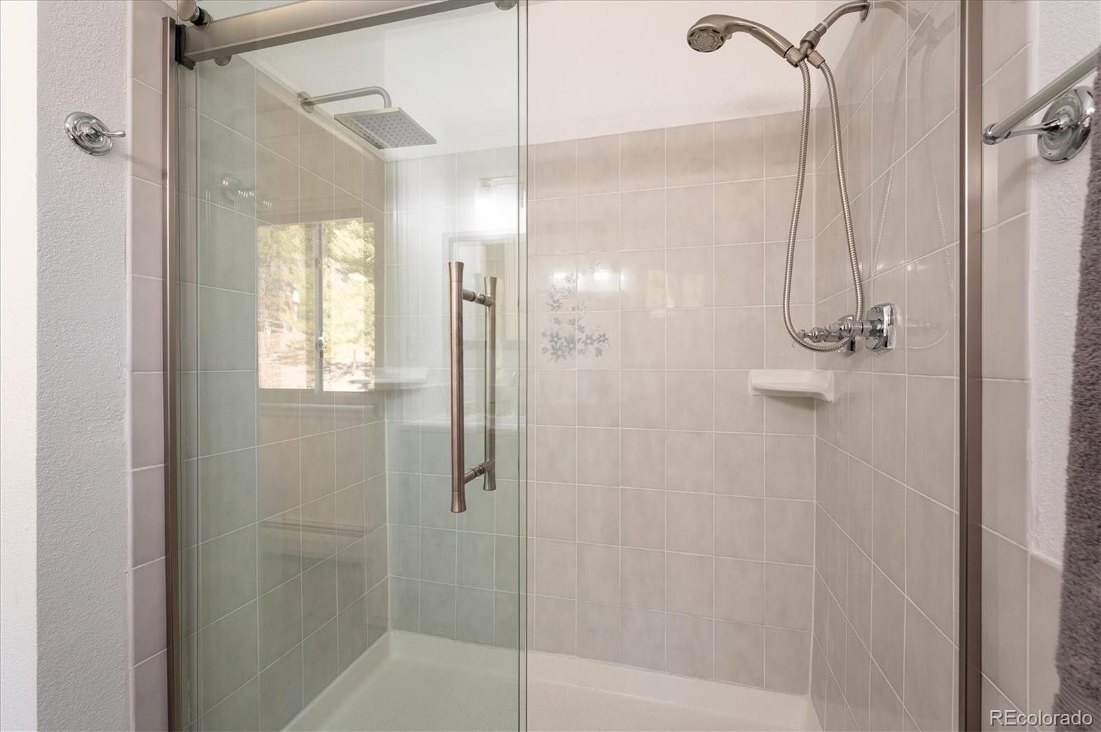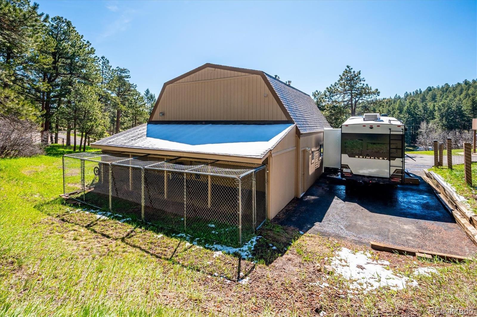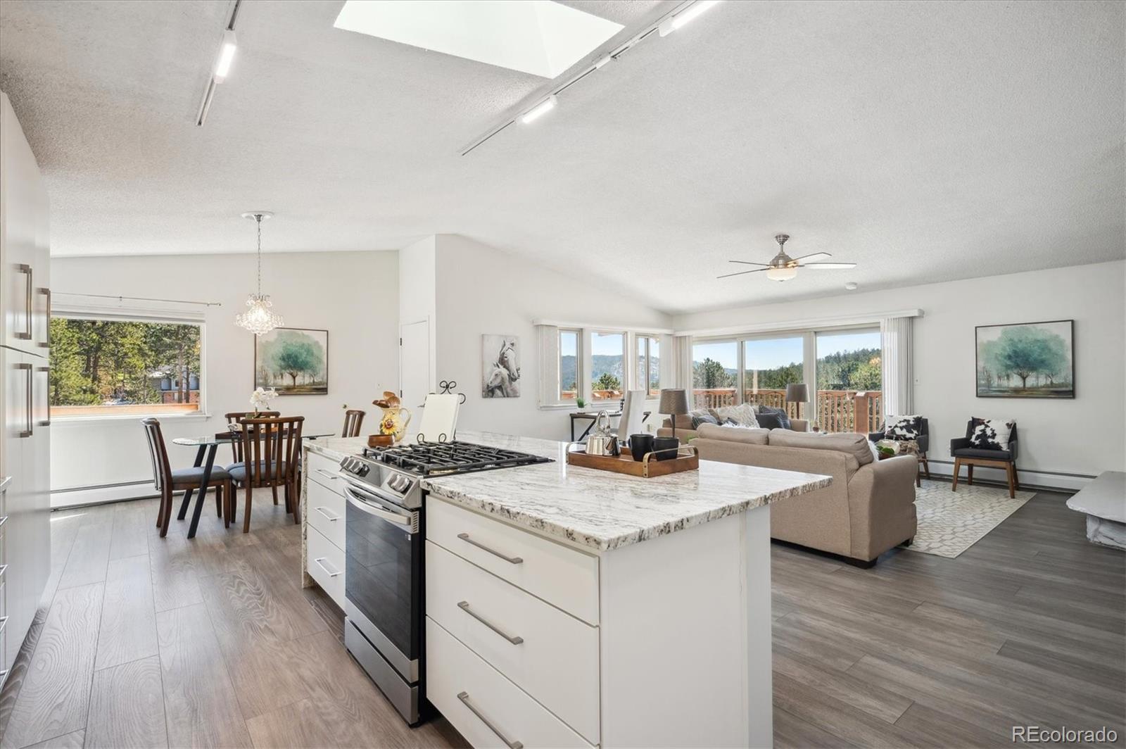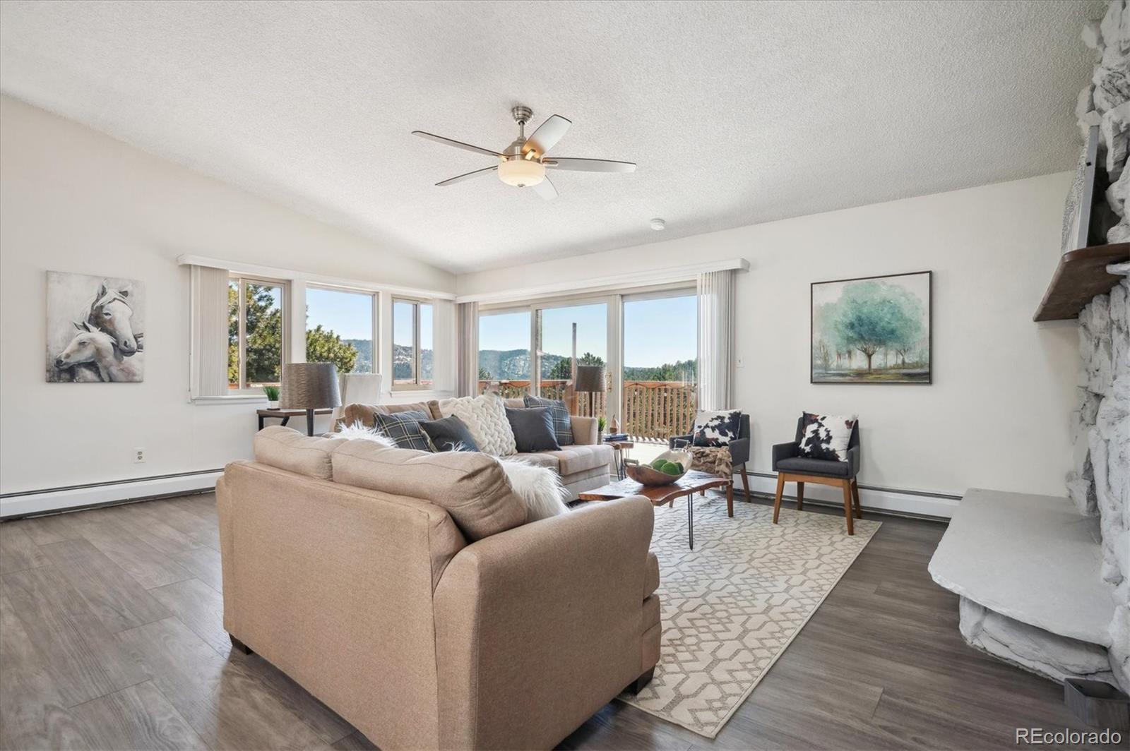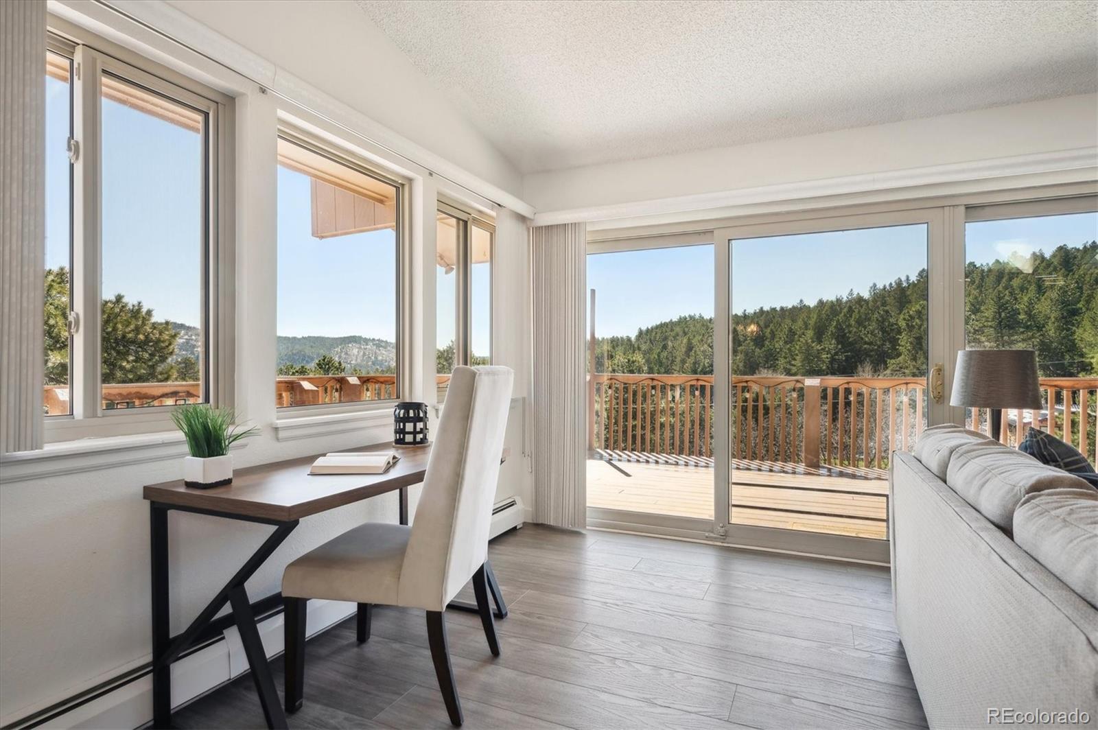 Tucked into a serene, gently sloping 2-acre lot, this updated mountain property offers the perfect blend of comfort, function, and flexibility, plus a rare income-producing opportunity. The standout feature is a fully legal, rentable, county-compliant 1,280 sq ft Accessory Dwelling Unit (ADU). Thoughtfully designed for comfort and independence, the ADU features zero-entry flooring for accessibility, a private 1-bedroom, 1-bathroom layout, full kitchen, laundry appliances, and its own epoxy-coated one-car garage. Upstairs offers additional flexible living space with skylights, a new state-of-the-art HVAC system, and the potential for a second bedroom and bathroom—perfect for guests, a home office, or future rental expansion. The main house has been thoughtfully remodeled with fresh paint inside and out, new durable plank vinyl flooring throughout, and top-down bottom-up honeycomb blinds for customizable light and privacy in every room. Designed for convenient main-level living, the home features a spacious primary suite with two walk-in closets and a beautifully updated kitchen that truly stands out. You'll love the large center island, two ovens, gas stove, luxurious granite countertops, and a modern chef-style workstation sink with a deep stainless steel basin, integrated cutting board and drying rack, finished with a high-arc pull-down spring faucet—this kitchen brings high-end style. A new Class 4 impact-resistant roof tops both the main house and the ADU. Outside, you’ll find a fenced yard, two dog runs, and a domestic well and zoning that allow for animals, making it ideal for those seeking a more self-sufficient mountain lifestyle. There’s also a generator for peace of mind, a designated space for a hot tub, RV parking with plug-ins and black water dump access, and plenty of room to relax and enjoy the beauty of Colorado’s outdoors on the wraparound deck. Unique, updated, and income-producing—this is more than a home; it’s a smart investment in your lifestyle.