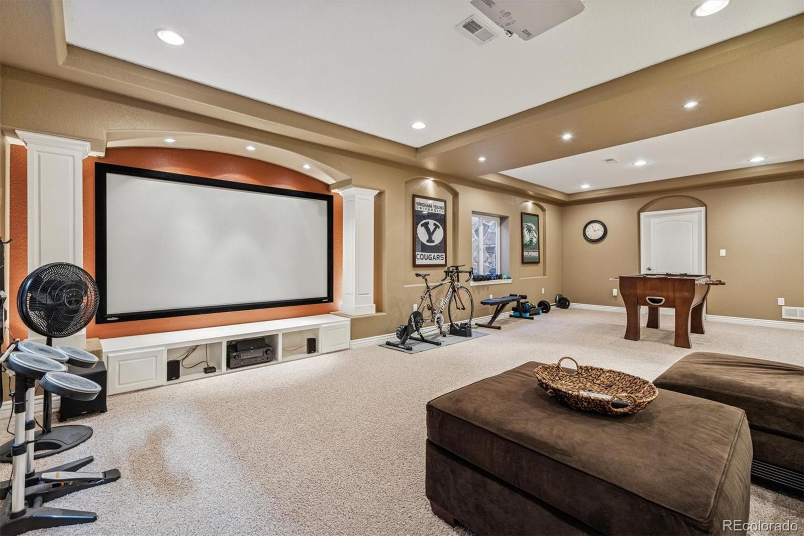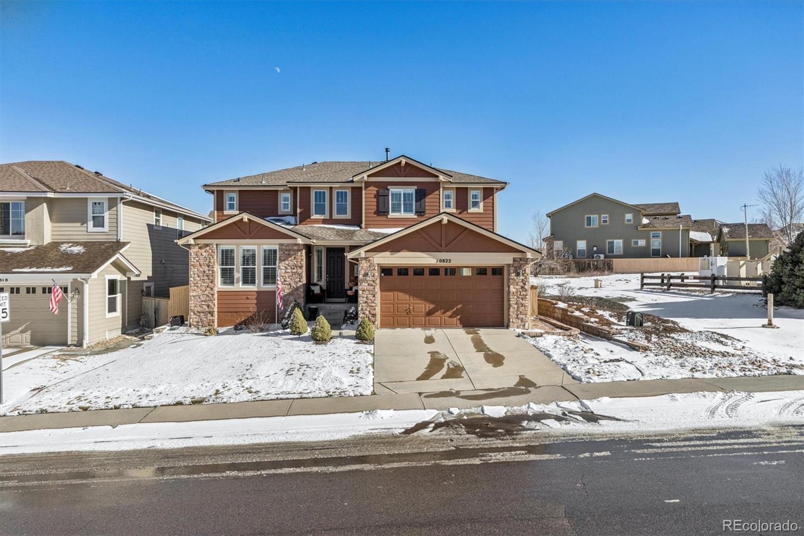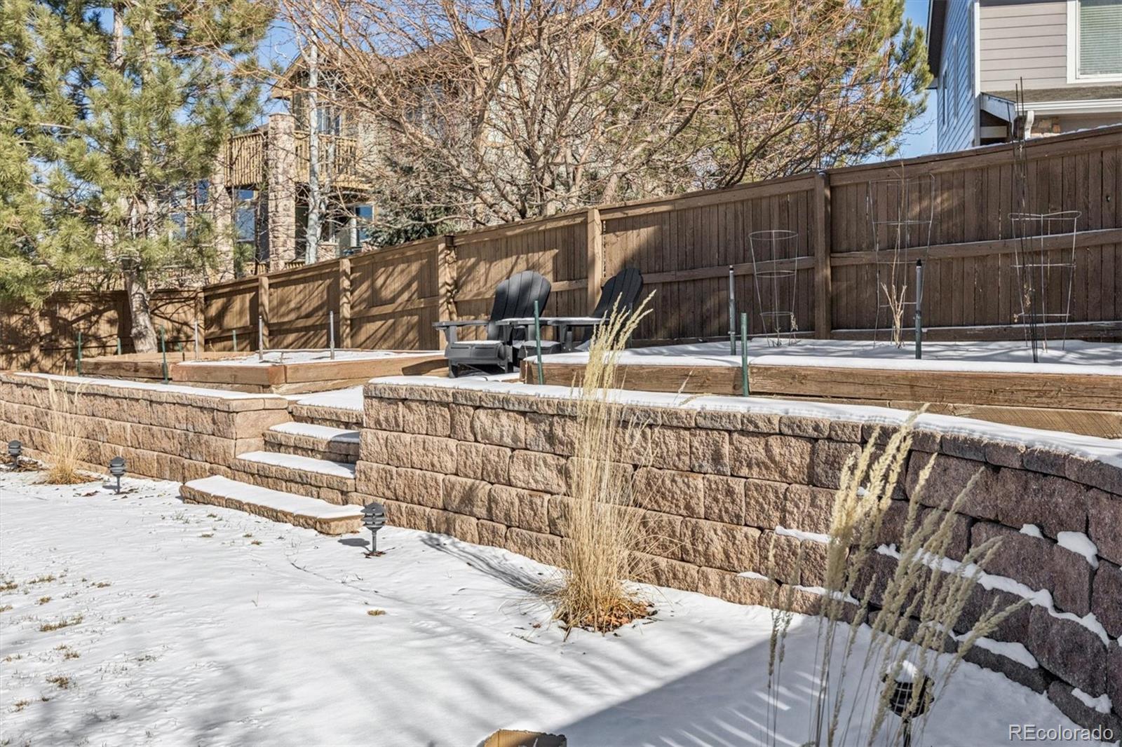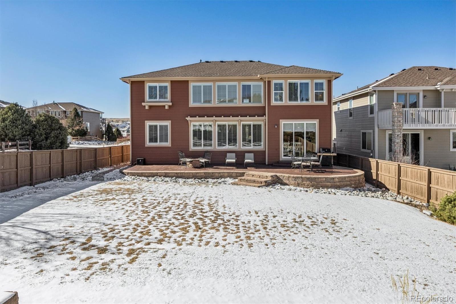 Here's your opportunity to be in one of Highlands Ranch’s most sought-after neighborhoods! This exceptional home offers a combination of a truly functional open concept living and a large lot w/ outstanding outdoor living. The professionally landscaped backyard is an entertainer’s dream, featuring expansive garden beds, an oversized stamped concrete patio, a built-in gas fire pit, landscape lighting, newer fencing, and fresh exterior paint. Enjoy peaceful shaded evenings, great neighbors, and the advantage of being just minutes from everyday conveniences. Inside, the home welcomes you with a bright, open floorplan filled with natural light and abundant windows. The impressive two-story family room creates a dramatic focal point, seamlessly flowing into the spacious kitchen appointed with 42” hickory cabinets and generous workspace. The main level is complete with solid wood flooring, elegant plantation shutters throughout, and a dedicated home office, ideal for today’s work-from-home lifestyle. The 3-car tandem garage is finished and offers exceptional storage options. Upstairs, the private primary suite is a separated wing which includes his-and-her closets and a large primary bathroom retreat. Large secondary bedrooms share a well-designed Jack-and-Jill bathroom with separate sinks and counters, while an upstairs study area provides additional flexible living space.The professionally finished basement expands the home’s functionality with a large entertaining area, theater room, game room, and a guest bedroom with a ¾ bathroom. The salon space is scheduled for removal, offering the opportunity to create a wet bar, or an exercise/craft room. Additional upgrades include a new furnace, air conditioning system, and sump pump. Enjoy close access to the 4 Highlands Ranch Rec Centers and trail system offering over 100 miles of hiking and biking paths just outside your door.