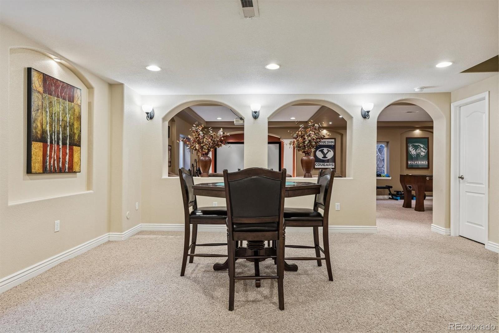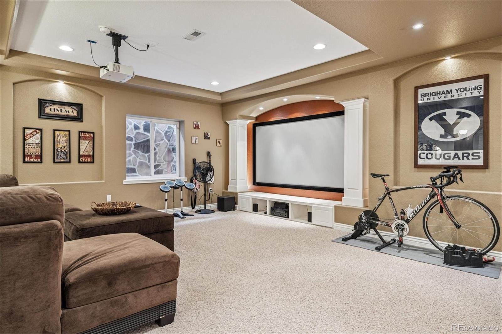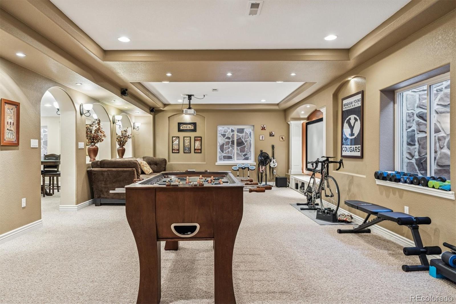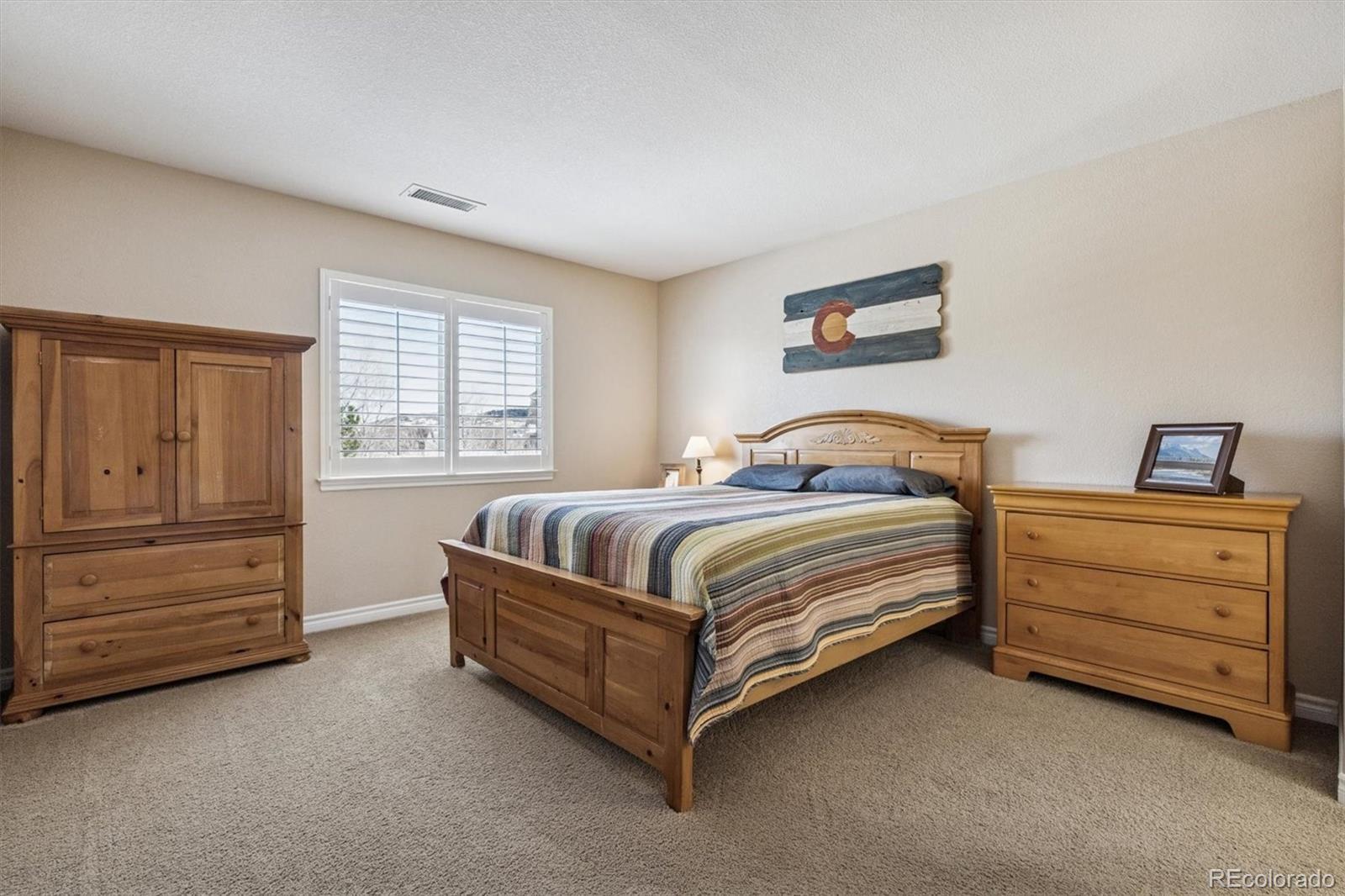 Here's your opportunity to be in one of Highlands Ranch’s most sought-after neighborhoods! This exceptional home offers a combination of a truly functional open concept living and a large lot w/ outstanding outdoor living. The professionally landscaped backyard is an entertainer’s dream, featuring expansive garden beds, an oversized stamped concrete patio, a built-in gas fire pit, landscape lighting, newer fencing, and fresh exterior paint. Enjoy peaceful shaded evenings, great neighbors, and the advantage of being just minutes from everyday conveniences. Inside, the home welcomes you with a bright, open floorplan filled with natural light and abundant windows. The impressive two-story family room creates a dramatic focal point, seamlessly flowing into the spacious kitchen appointed with 42” hickory cabinets and generous workspace. The main level is complete with solid wood flooring, elegant plantation shutters throughout, and a dedicated home office, ideal for today’s work-from-home lifestyle. The 3-car tandem garage is finished and offers exceptional storage options. Upstairs, the private primary suite is a separated wing which includes his-and-her closets and a large primary bathroom retreat. Large secondary bedrooms share a well-designed Jack-and-Jill bathroom with separate sinks and counters, while an upstairs study area provides additional flexible living space.The professionally finished basement expands the home’s functionality with a large entertaining area, theater room, game room, and a guest bedroom with a ¾ bathroom. The salon space is scheduled for removal, offering the opportunity to create a wet bar, or an exercise/craft room. Additional upgrades include a new furnace, air conditioning system, and sump pump. Enjoy close access to the 4 Highlands Ranch Rec Centers and trail system offering over 100 miles of hiking and biking paths just outside your door.