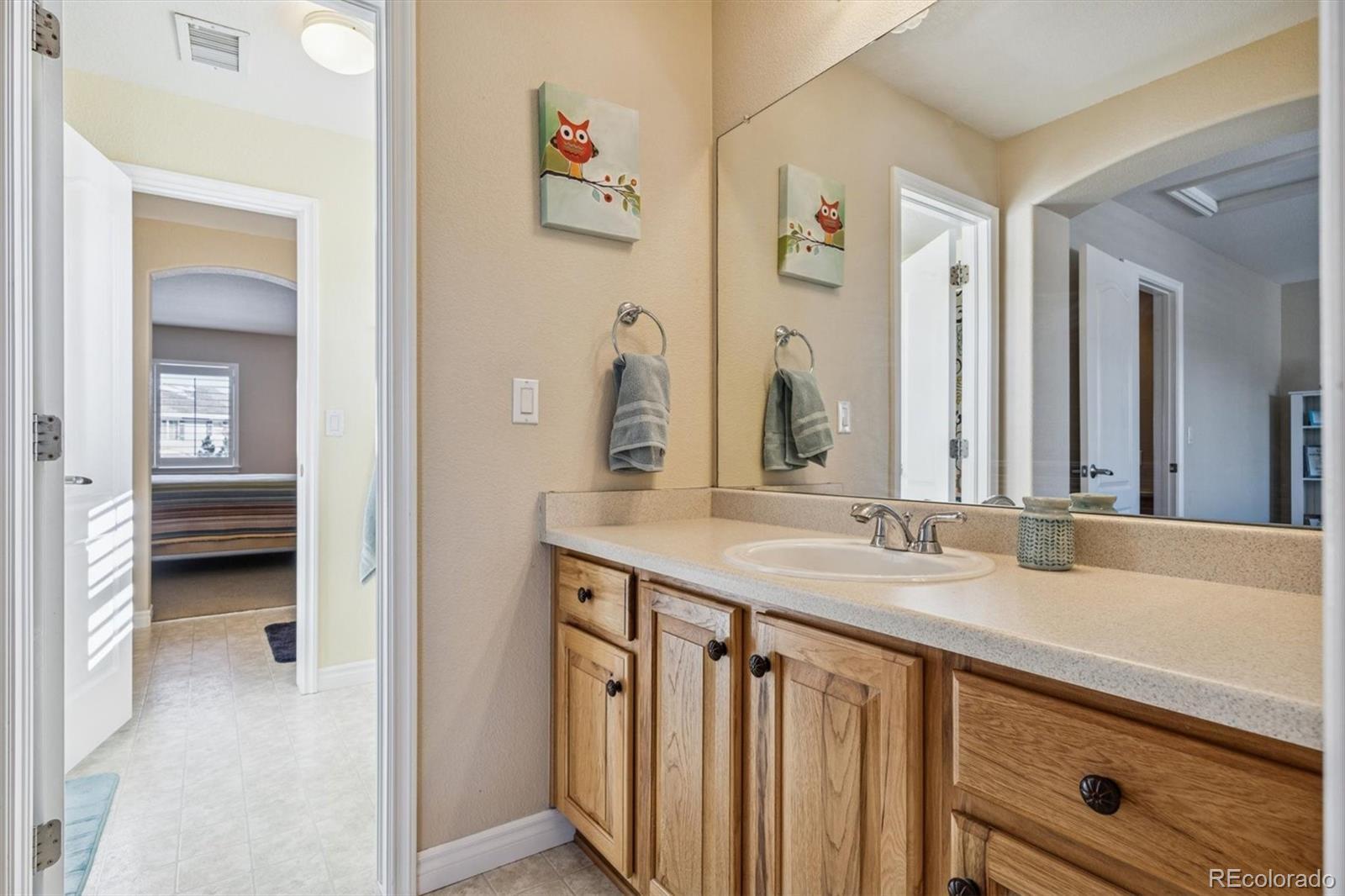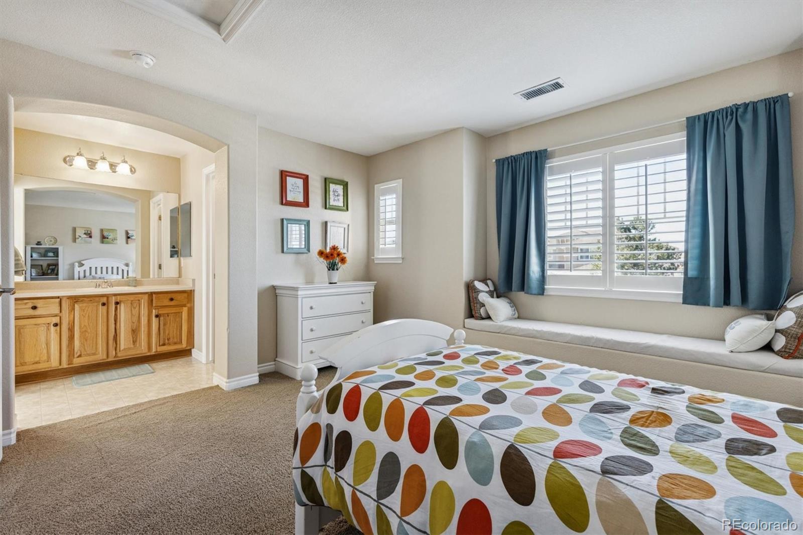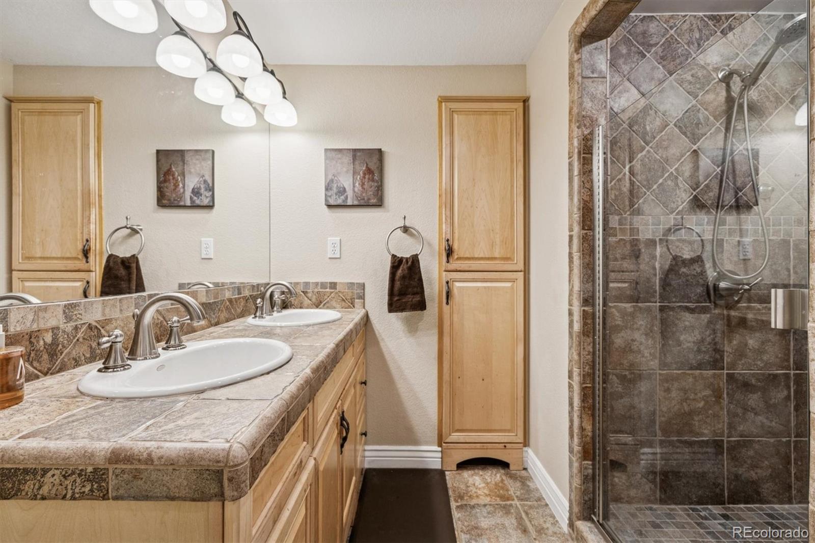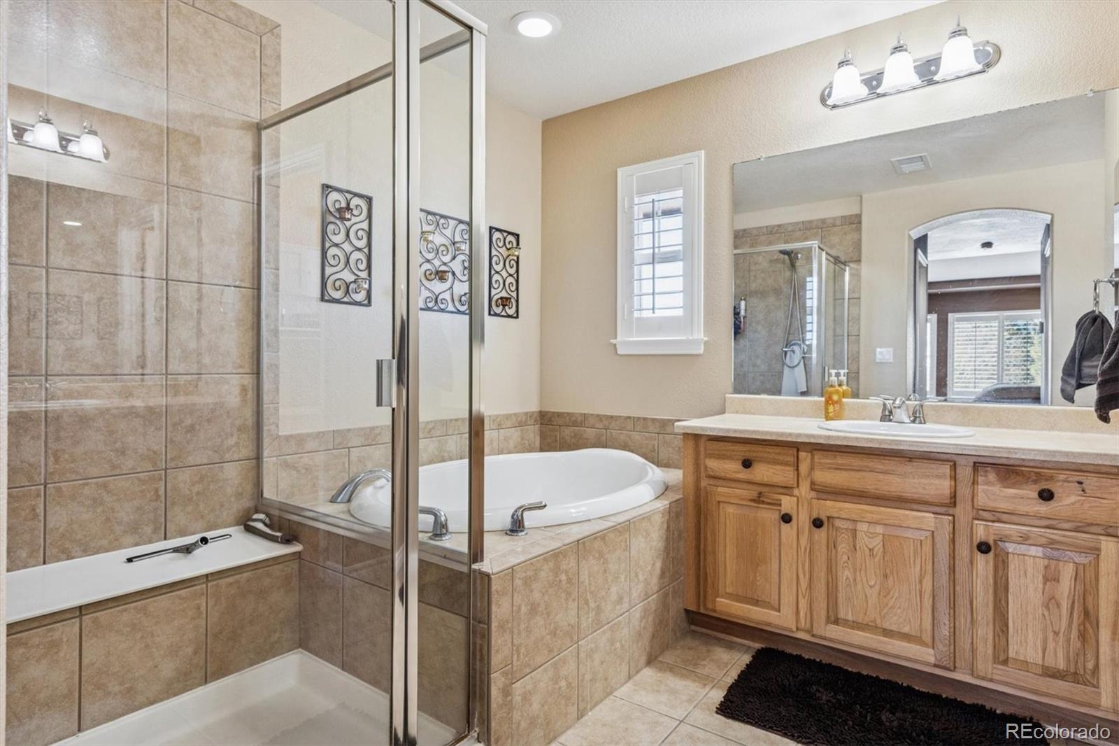 Here's your opportunity to be in one of Highlands Ranch’s most sought-after neighborhoods! This exceptional home offers a combination of a truly functional open concept living and a large lot w/ outstanding outdoor living. The professionally landscaped backyard is an entertainer’s dream, featuring expansive garden beds, an oversized stamped concrete patio, a built-in gas fire pit, landscape lighting, newer fencing, and fresh exterior paint. Enjoy peaceful shaded evenings, great neighbors, and the advantage of being just minutes from everyday conveniences. Inside, the home welcomes you with a bright, open floorplan filled with natural light and abundant windows. The impressive two-story family room creates a dramatic focal point, seamlessly flowing into the spacious kitchen appointed with 42” hickory cabinets and generous workspace. The main level is complete with solid wood flooring, elegant plantation shutters throughout, and a dedicated home office, ideal for today’s work-from-home lifestyle. The 3-car tandem garage is finished and offers exceptional storage options. Upstairs, the private primary suite is a separated wing which includes his-and-her closets and a large primary bathroom retreat. Large secondary bedrooms share a well-designed Jack-and-Jill bathroom with separate sinks and counters, while an upstairs study area provides additional flexible living space.The professionally finished basement expands the home’s functionality with a large entertaining area, theater room, game room, and a guest bedroom with a ¾ bathroom. The salon space is scheduled for removal, offering the opportunity to create a wet bar, or an exercise/craft room. Additional upgrades include a new furnace, air conditioning system, and sump pump. Enjoy close access to the 4 Highlands Ranch Rec Centers and trail system offering over 100 miles of hiking and biking paths just outside your door.