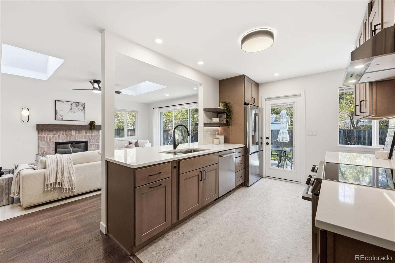*AWESOME ALERT* Freshly renovated top to bottom with vibes to spare - this home is an absolute gem! Thoughtfully reimagined & designed, every detail in this home has been attended to. You'll love it from the moment you walk in: open, warm and sun-filled spaces. The heart of the home is the open kitchen featuring great work flow, ample storage, quartz counters, custom fluted oak shelving & range w/vent hood - all while maintaining connection to friends and family at the eat in-counter. Don't forget the built-in coffee nook with additional storage. Living room, Dining room and Kitchen all have great connectivity and get the loveliest natural light! Living room is anchored by fireplace (terra cotta tiles & oak mantle *swoon*) & a wall of windows overlooking the private backyard. Soft modern built-ins add a casual elegance. Main floor boasts 3 bedrooms on one level, including stylish primary ensuite. The versatile lower level offers a lovely family room w/fireplace & built-ins, egress windows for lovely light, charming entertaining kitchen (perfect for game days or movie nights) and space for game table or the Peloton/trainer. 2 additional large bedrooms, 3/4 bath & laundry room round out the lower level. Hard to find mud-room space for the transition from the attached garage into the home < this is an absolute game changer! The backyard is a private oasis with room to play, garden, eat, entertain on the new patio or relax in a hammock. Huge shed makes storage of outdoor toys a breeze. Rare attached 2 car garage + additional off street parking for 2-3 more cars AND - space to park a trailer or RV. Fresh sod, irrigation & landscaping round out the exterior. Close to trails, shopping & dining. Professional interior pictures coming later in the week, however you can schedule your showings today. This home offers a combination of style and functionality at a price point you wont find anywhere else! This one goes to 11!