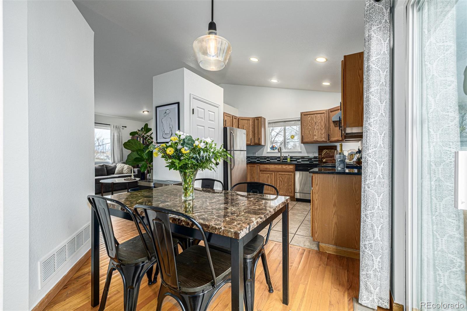 Beautifully turnkey townhome ideally located near light rail, parks, and just a quick 10-minute drive to vibrant downtown Denver. This immaculate home features fresh paint throughout, stunning hardwood floors on the main level, plush new carpet in the bedrooms and a brand new Furnace. The thoughtfully updated kitchen offers stainless steel appliances, granite countertops, and abundant cabinet space—perfect for both everyday living and entertaining. Additional highlights include two stylish bathrooms, updated windows, and a convenient in-unit washer and dryer. Enjoy generous storage space and the added benefit of a detached oversized one-car garage. With a well-maintained community and low HOA dues, this home offers exceptional value. Whether you're searching for a perfect first home or a fantastic investment opportunity, this property is a must-see.