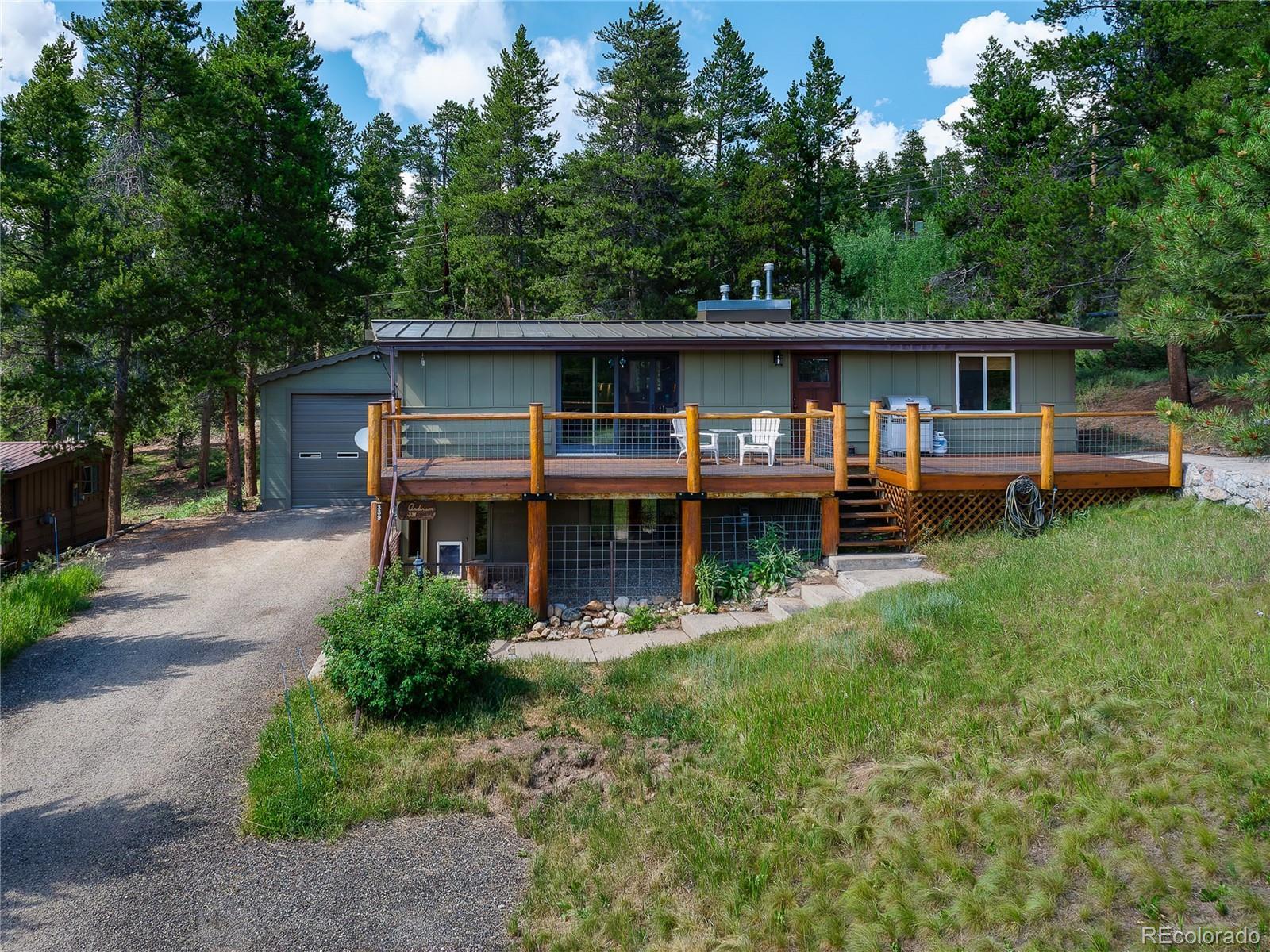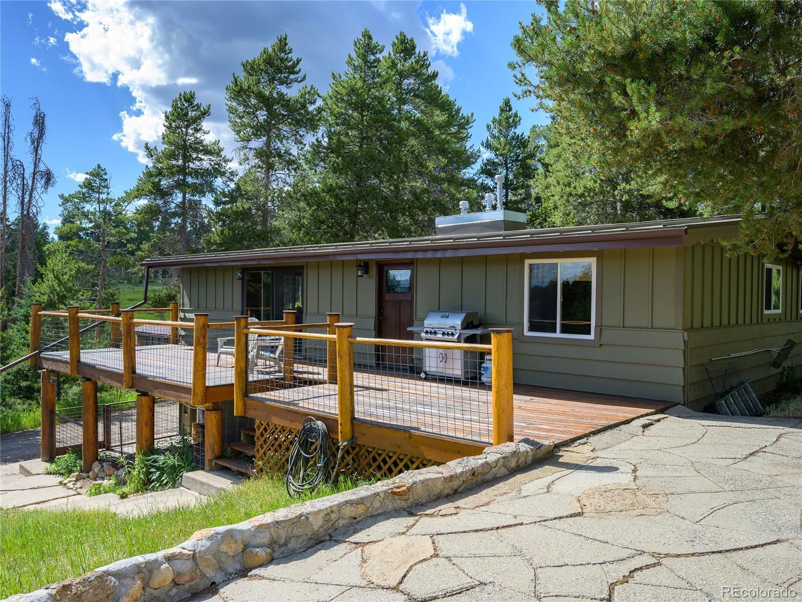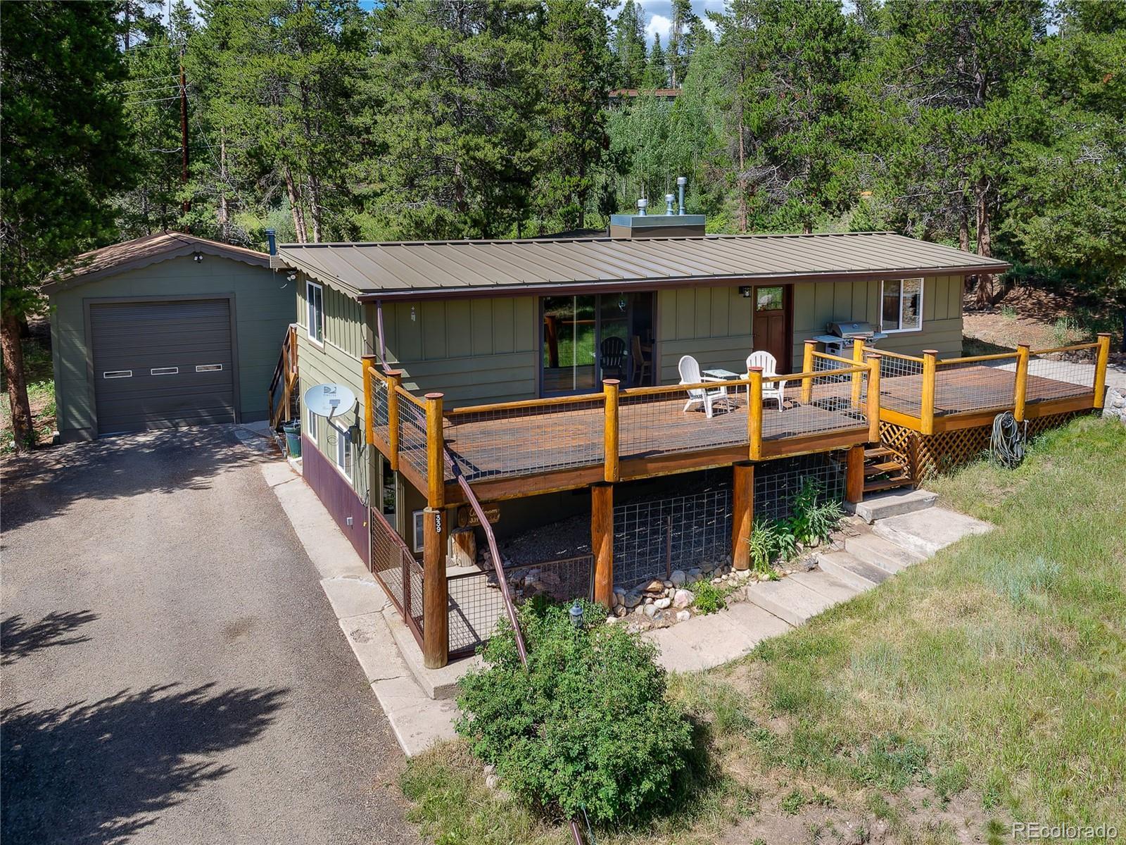 Secluded & peaceful, this 4BR home is tucked away in the pines just a few blocks from the Beacon Landing Marina! With generous amounts of outdoor living space, the house is set back on a large lot and boasts a huge, heated garage, making it the perfect Colorado getaway. The Mid-Century modern design welcomes you in to a cozy yet open floor plan, with two gas log fireplaces, living room on main and a large lower level rec room/flex space complete with a bar. STRs or multi-families will enjoy plenty of space for get togethers and the flexibility to overflow down to the walkout level. An extra tall door on the tandem-style, heated garage will allow for smaller RV/trailer storage or up to 3 cars and a nice shop. The lower level walks out to a great, fenced-in dog run and yard beyond! Come check out this unique property today that would make a great weekender or a full time residence, unburdened by restrictive HOA covenants and dues. Public beach nearby perfect for launching SUPs or touring kayaks/canoes. High quality metal roof and heat tape installed in 2016.