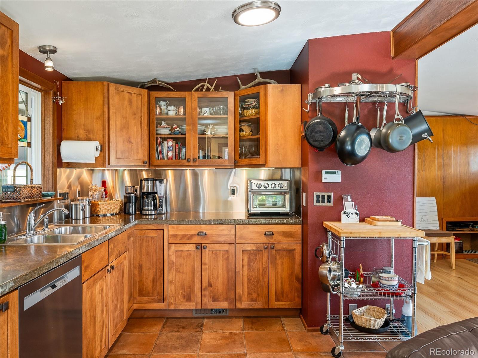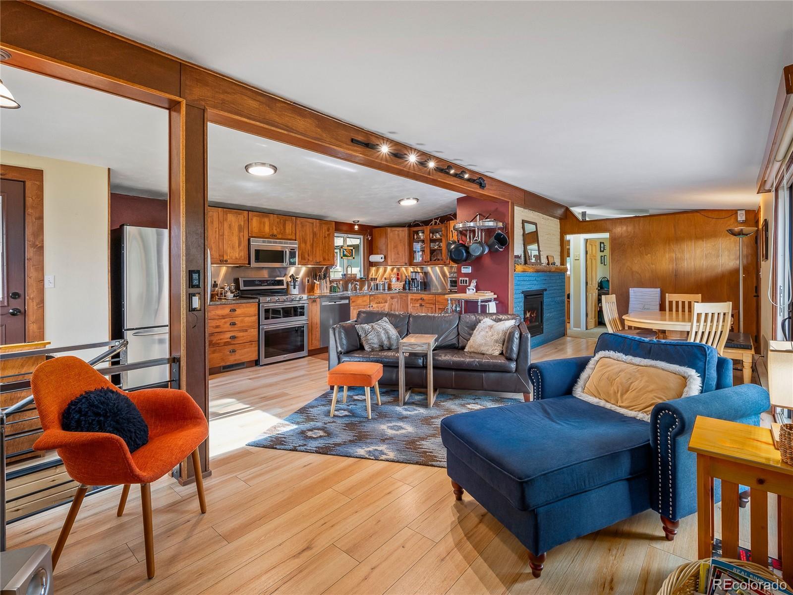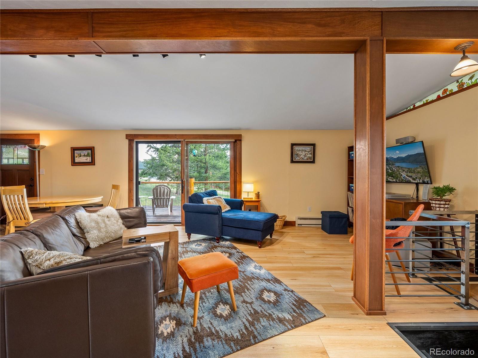 Secluded & peaceful, this 4BR home is tucked away in the pines just a few blocks from the Beacon Landing Marina! With generous amounts of outdoor living space, the house is set back on a large lot and boasts a huge, heated garage, making it the perfect Colorado getaway. The Mid-Century modern design welcomes you in to a cozy yet open floor plan, with two gas log fireplaces, living room on main and a large lower level rec room/flex space complete with a bar. STRs or multi-families will enjoy plenty of space for get togethers and the flexibility to overflow down to the walkout level. An extra tall door on the tandem-style, heated garage will allow for smaller RV/trailer storage or up to 3 cars and a nice shop. The lower level walks out to a great, fenced-in dog run and yard beyond! Come check out this unique property today that would make a great weekender or a full time residence, unburdened by restrictive HOA covenants and dues. Public beach nearby perfect for launching SUPs or touring kayaks/canoes. High quality metal roof and heat tape installed in 2016.
