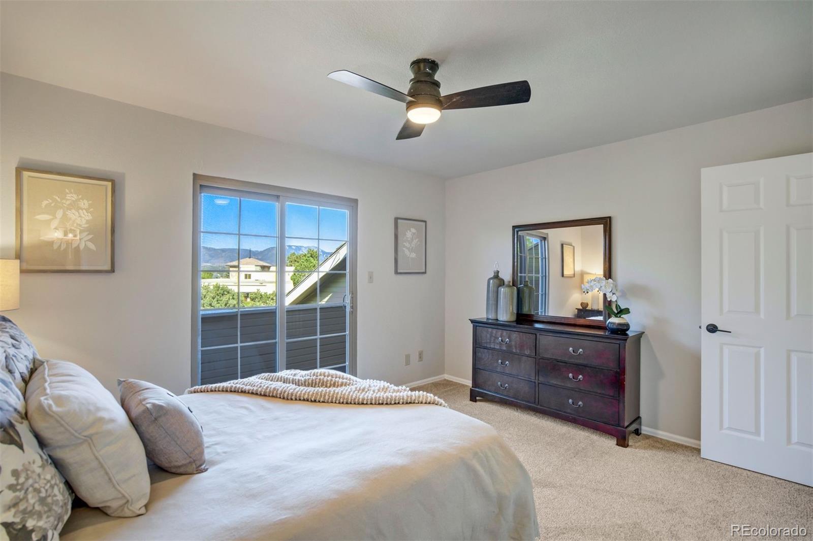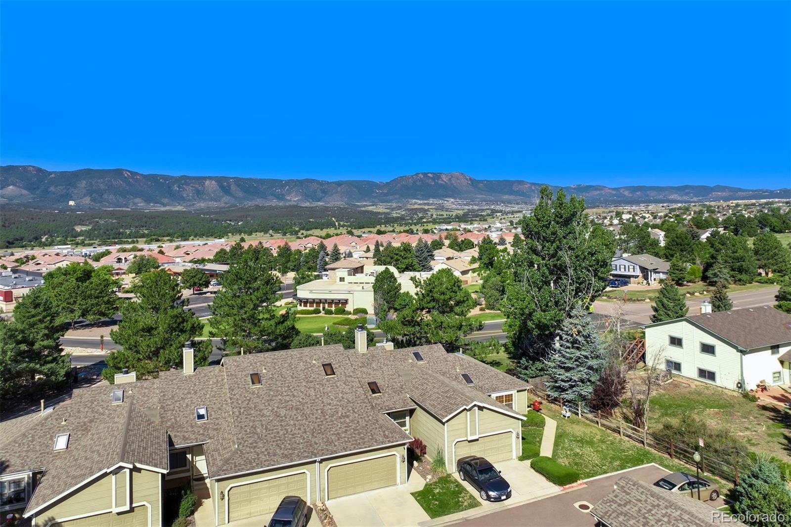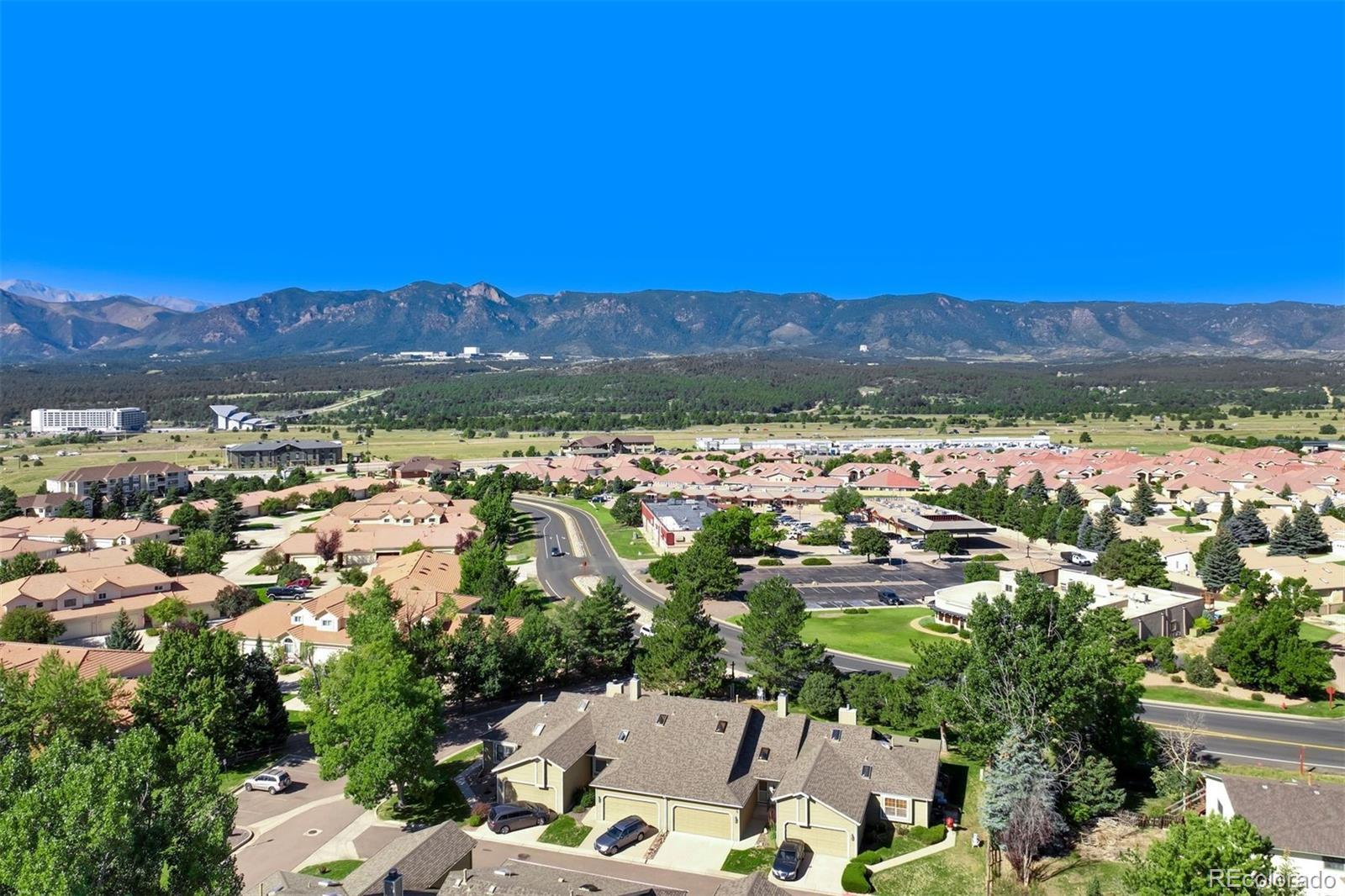 Freshly updated and move-in ready, this lock-and-leave townhome in the heart of Gleneagle offers a rare blend of privacy, beauty, and ease within coveted District 20. With no rear neighbors and a natural enclave of trees behind the home, the setting feels sheltered and serene, while the upper level captures inspiring mountain views framed between the treetops. The main level welcomes with a slate-accented gas fireplace, a kitchen with ample workspace for the chef, stainless steel appliances, and a breakfast bar pass-through into the dining area. Seamless flow extends outdoors with dual access to a fenced patio, offering privacy for morning coffee or pets at play. The layout includes two primary suites—one on the main level (currently styled as an office) and one upstairs with an en-suite bath and walkout to a composite deck where the views unfold. The finished lower level extends the living space with a third bedroom, an L-shaped family room suited for fitness, office, or recreation, and a newly renovated bath with laundry access. Recent updates include fresh interior paint, new carpet, modern lighting, and a refreshed lower-level bath. An attached two-car garage provides everyday convenience. Designed for a maintenance-free and fluid lifestyle, this residence invites you to embrace Colorado living at its best— whether enjoying the Gleneagle trail system, dining nearby, or the ease of connection to I-25, the Air Force Academy, and the vibrant Interquest corridor.