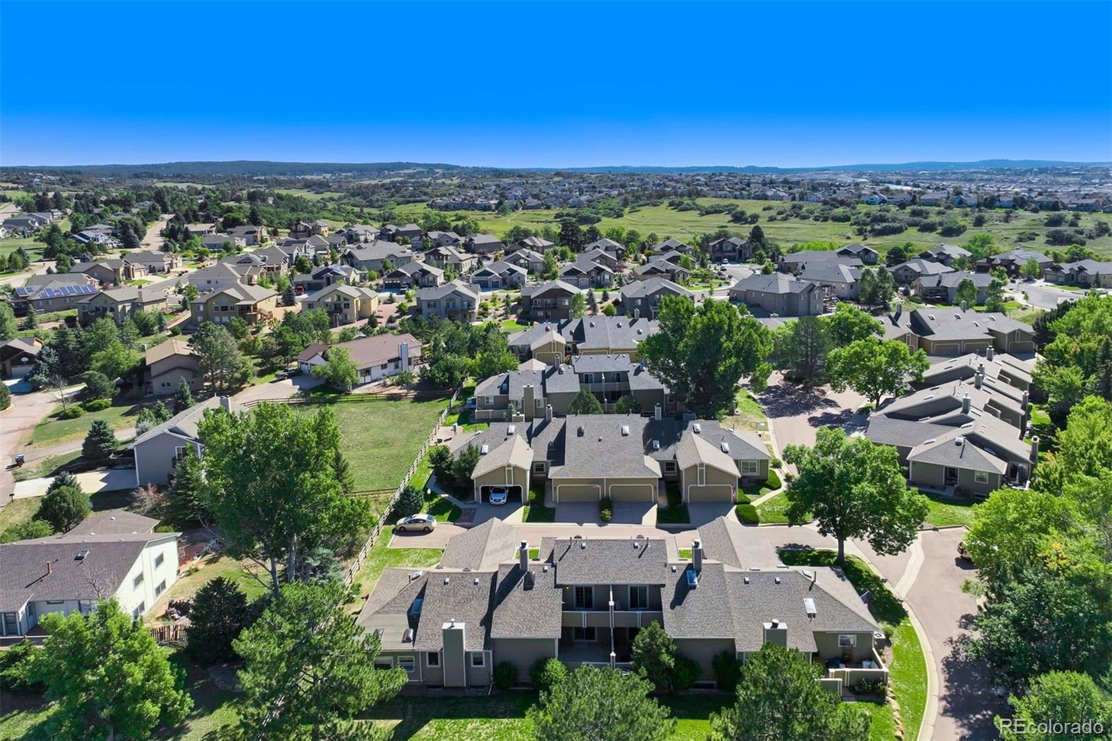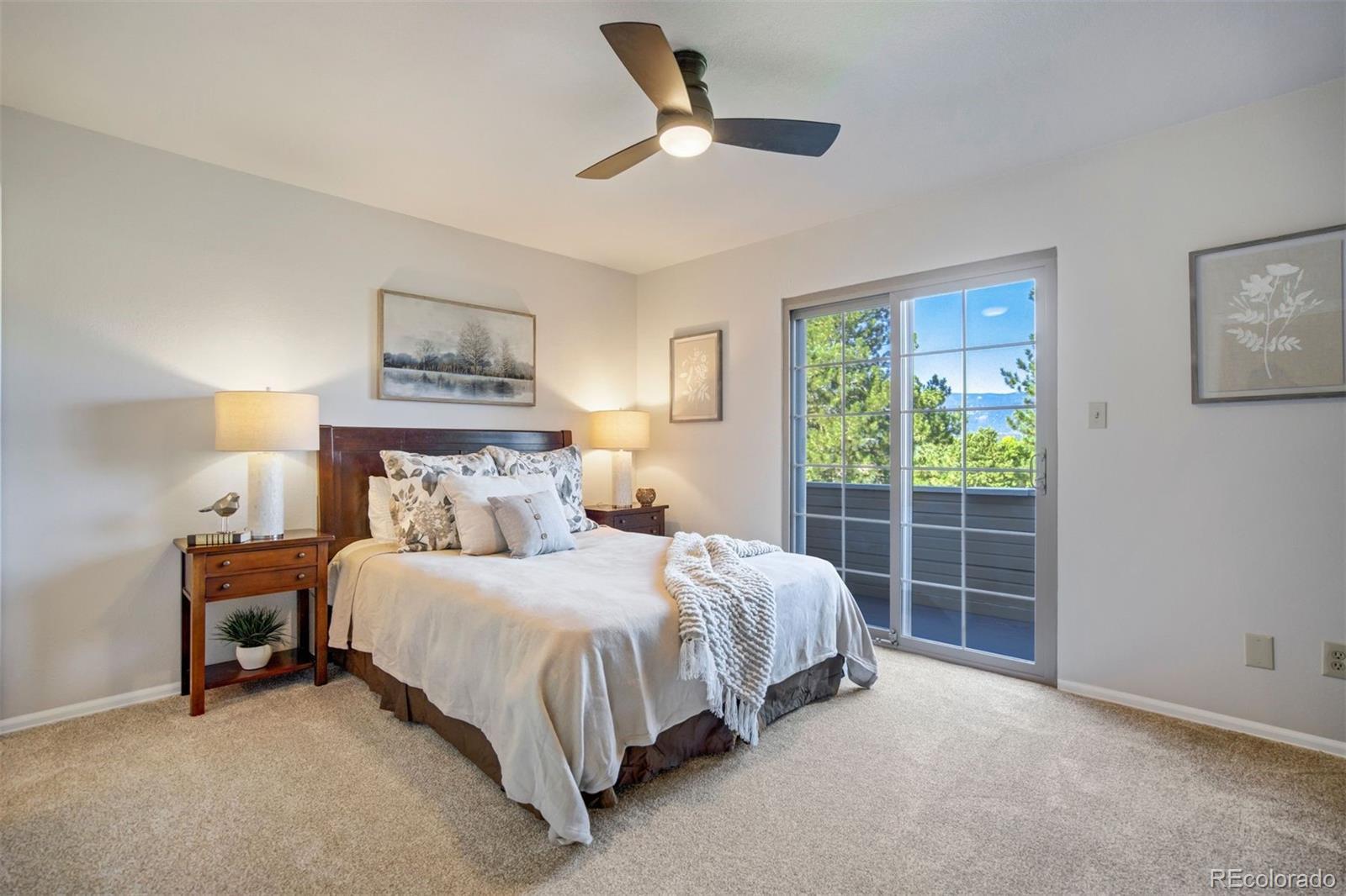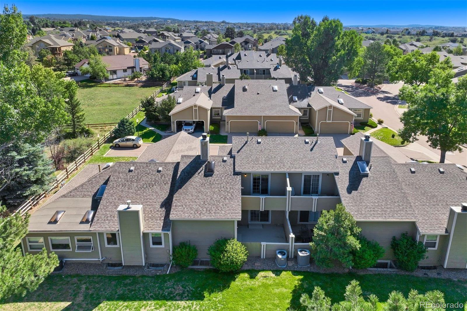 Freshly updated and move-in ready, this lock-and-leave townhome in the heart of Gleneagle offers a rare blend of privacy, beauty, and ease within coveted District 20. With no rear neighbors and a natural enclave of trees behind the home, the setting feels sheltered and serene, while the upper level captures inspiring mountain views framed between the treetops. The main level welcomes with a slate-accented gas fireplace, a kitchen with ample workspace for the chef, stainless steel appliances, and a breakfast bar pass-through into the dining area. Seamless flow extends outdoors with dual access to a fenced patio, offering privacy for morning coffee or pets at play. The layout includes two primary suites—one on the main level (currently styled as an office) and one upstairs with an en-suite bath and walkout to a composite deck where the views unfold. The finished lower level extends the living space with a third bedroom, an L-shaped family room suited for fitness, office, or recreation, and a newly renovated bath with laundry access. Recent updates include fresh interior paint, new carpet, modern lighting, and a refreshed lower-level bath. An attached two-car garage provides everyday convenience. Designed for a maintenance-free and fluid lifestyle, this residence invites you to embrace Colorado living at its best— whether enjoying the Gleneagle trail system, dining nearby, or the ease of connection to I-25, the Air Force Academy, and the vibrant Interquest corridor.