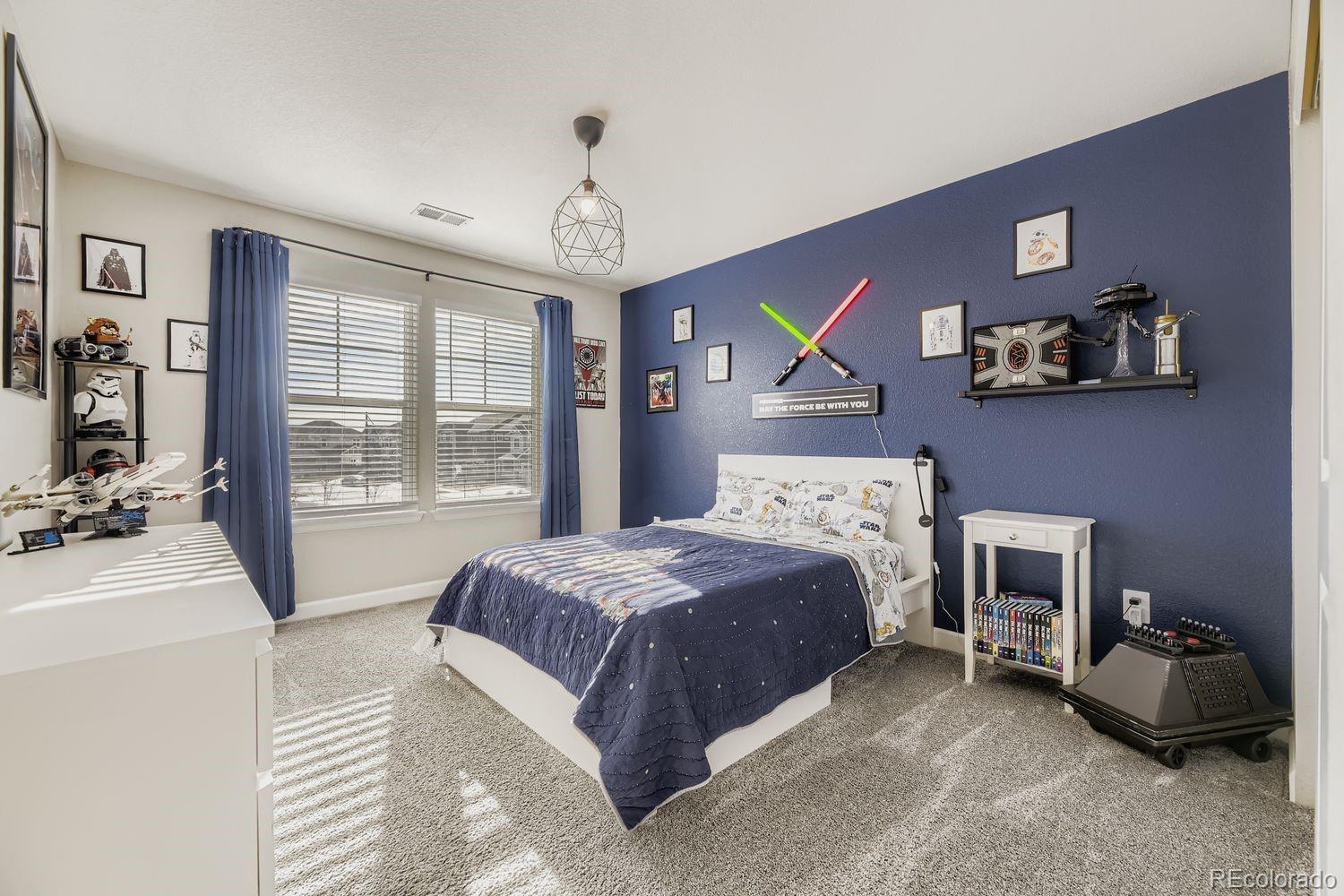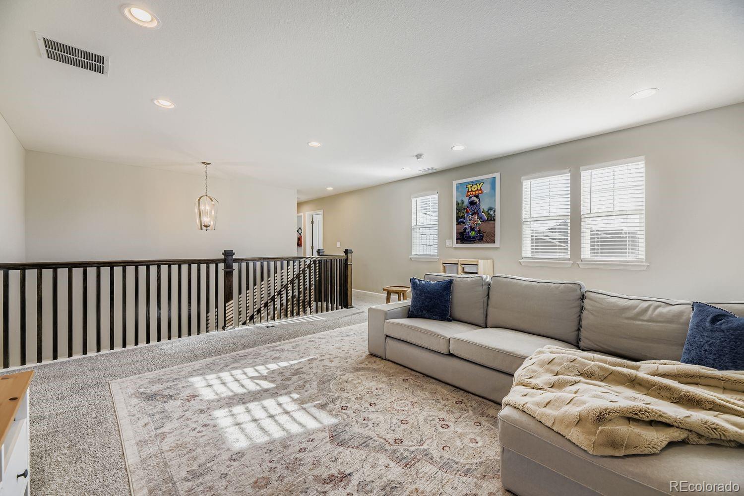 Luxury smart-home living meets exceptional design in this 6-bedroom, 4-bath residence located in The Sanctuary at Colliers Hill. Built in 2020 and thoughtfully upgraded, this home offers nearly 4,900 square feet of refined living space paired with advanced technology and premium finishes throughout. Comfort is elevated with a rare 3-zone HVAC system, featuring WiFi-controlled thermostats for each level and individual dampers at each vent—allowing precise temperature control throughout the home. Smart security features include a Yale x Nest front door lock and integrated monitoring systems. The main living spaces are bright and open, anchored by a chef’s kitchen designed for entertaining, while the finished basement delivers a true showpiece experience. A professionally installed ListenUp home theater system (over $25,000 in equipment included) features a Sony 4K TV, Bowers & Wilkins 700-series speakers, dual subwoofers, Dolby Atmos surround sound, and a Denon receiver. The basement is pre-wired for a projector with electrical and Ethernet already in place. Speakers can be zoned to play different audio or synchronized for entertaining. Sound-dampening drywall, specialty isolation clips, and blown-in insulation create an immersive theater environment, with all AV equipment discreetly housed in a dedicated storage room. Hue accent lighting highlights crown molding and the dry bar, while a Control4 system manages audio and visual components. Outdoor living is equally impressive with low-maintenance artificial turf (installed 2023), low-voltage perimeter lighting, and a gas fire pit with a dedicated line. Recent upgrades include a Class 4 impact-resistant roof (2023), full exterior repaint (2023), and Gemstone exterior lighting on all visible sides with a transferable warranty. Residents enjoy access to Colliers Hill amenities including pools, clubhouse, parks, and trails.
