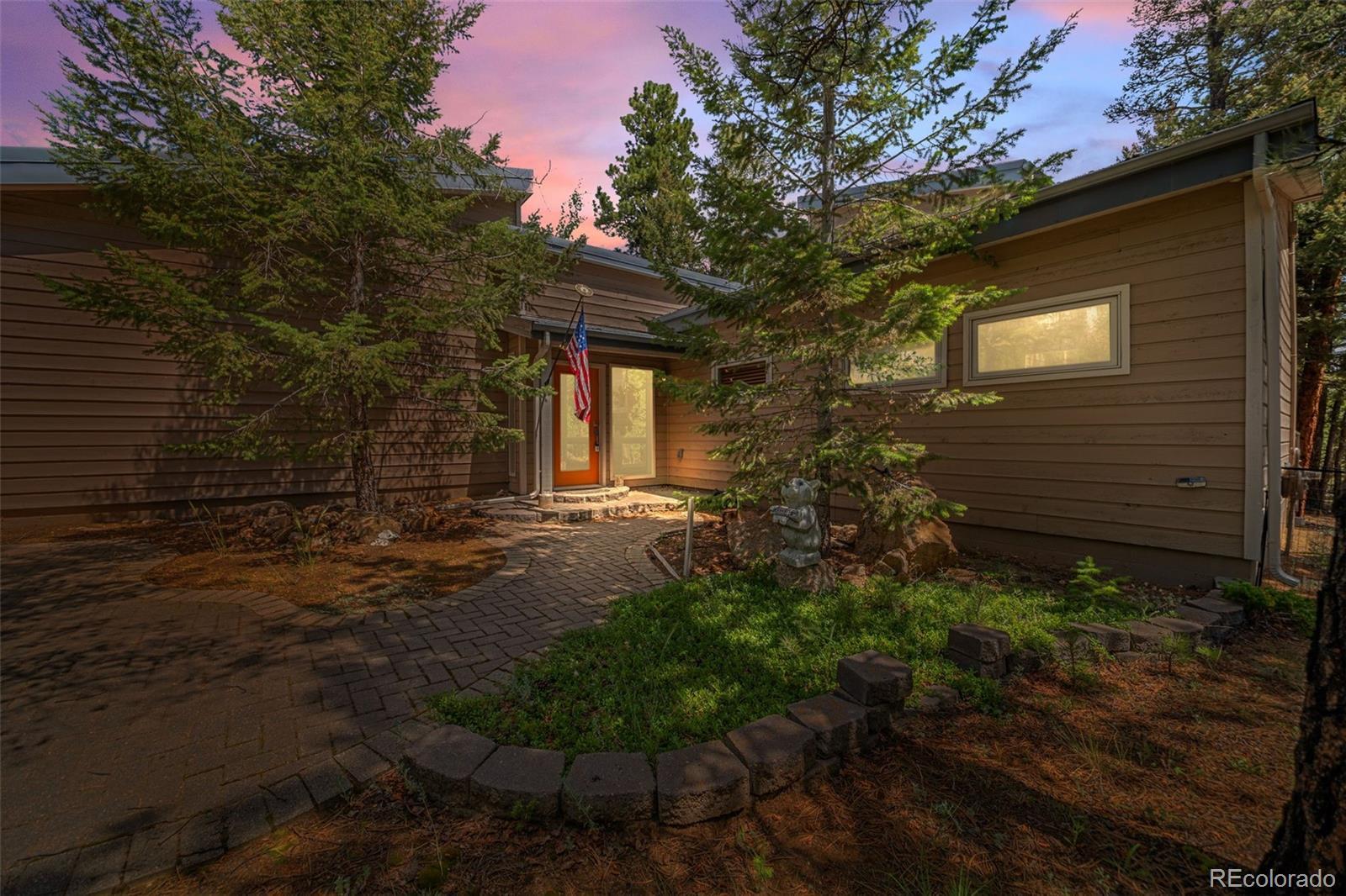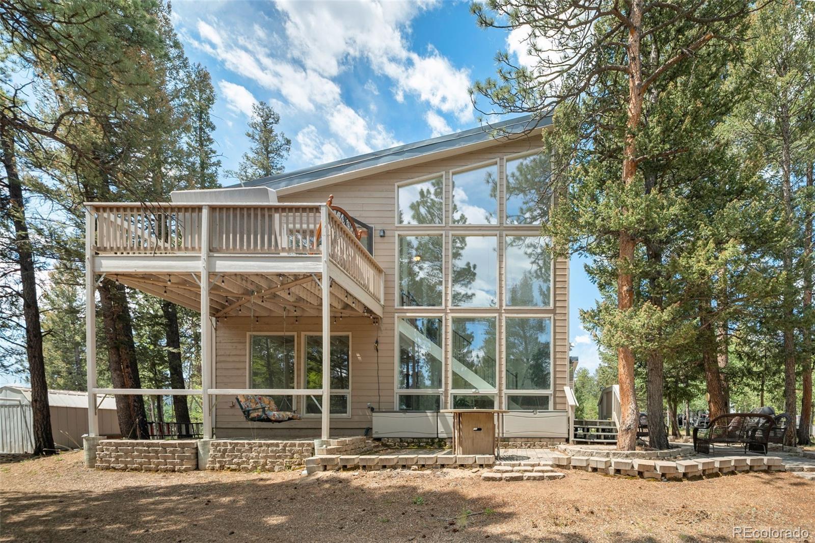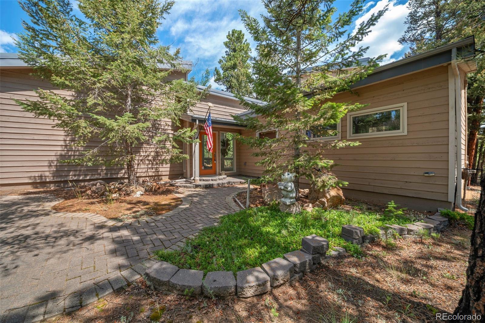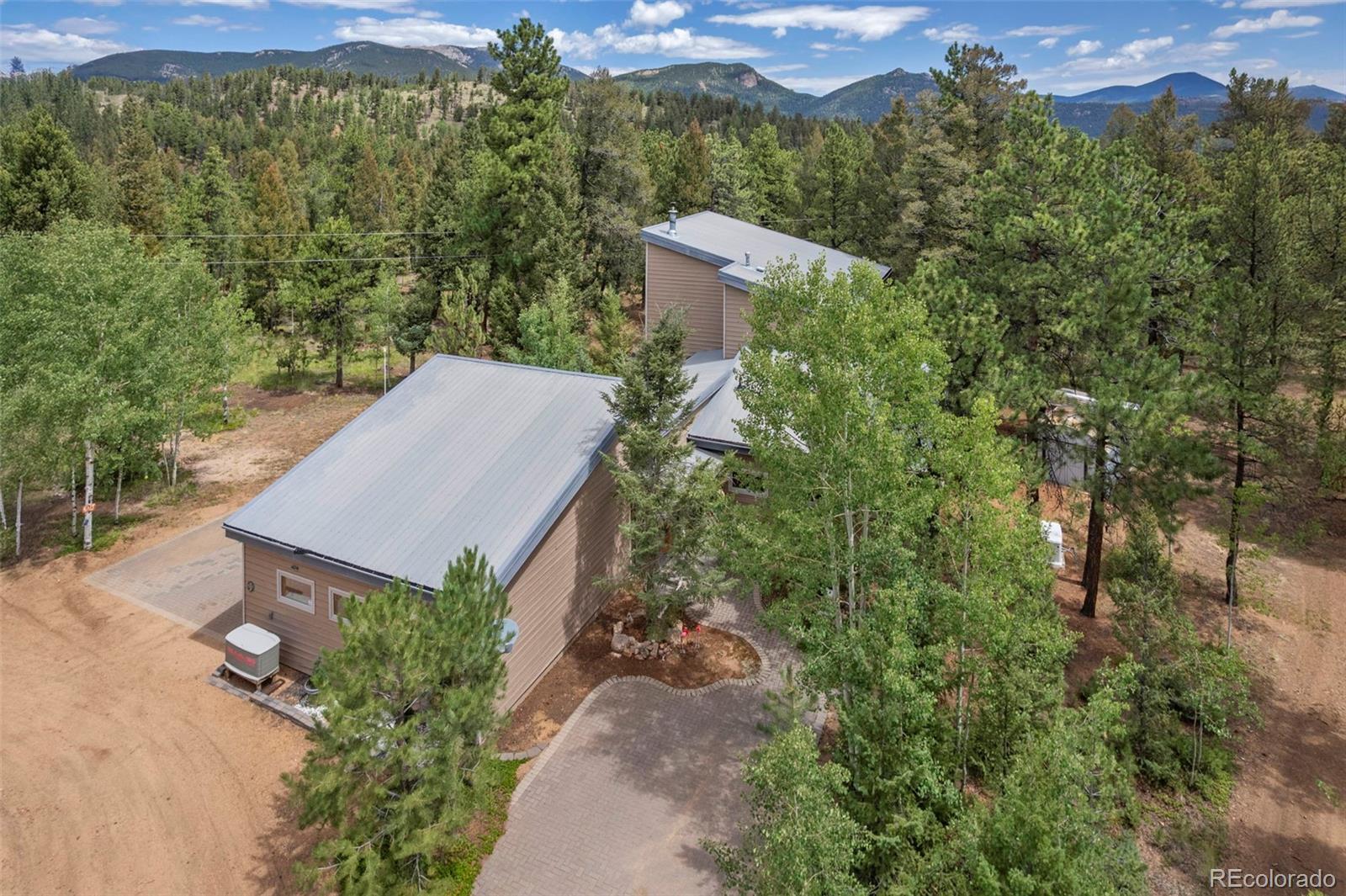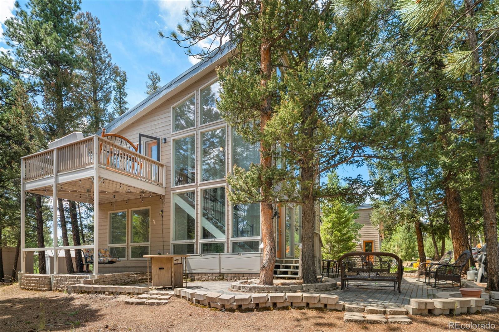 Opportunities like this don’t come up often! This contemporary-style home sits on 4 secluded, private acres offering a peaceful retreat surrounded by nature. Enjoy sweeping views of natural rock formations through two-story windows that flood the open-concept interior with light. The seller has created trails throughout the property, perfect for exploring your own backyard oasis. The lot is flat with a sun-drenched driveway, beautifully accented with pavers and a serene water feature. Step outside to an expansive deck off the upper-level loft—ideal for entertaining or relaxing under the stars. Landscape lighting and a water feature enhance the outdoor ambiance, while local wildlife adds to the mountain charm. Inside, you'll find a fresh and inviting space with a main-level primary suite, new carpet, new interior paint, and a kitchen outfitted with brand new appliances. Upstairs, you'll find a private guest suite with full bath and a loft area that could easily be converted to a third bedroom. With a new furnace, whole-house Generac generator, and pellet stove, you can count on warmth, comfort, and peace of mind year-round! The two-car garage has been thoughtfully divided—one bay for parking, the other transformed into a heated custom workshop with 220 AMP Service. RV electric hookups add extra flexibility. Long-lasting and durable metal roof. Located less than 10 minutes to 285 and within an hour of world-class ski resorts. Move-in ready and full of character, this home offers the ultimate in privacy, beauty, and Colorado mountain living!
