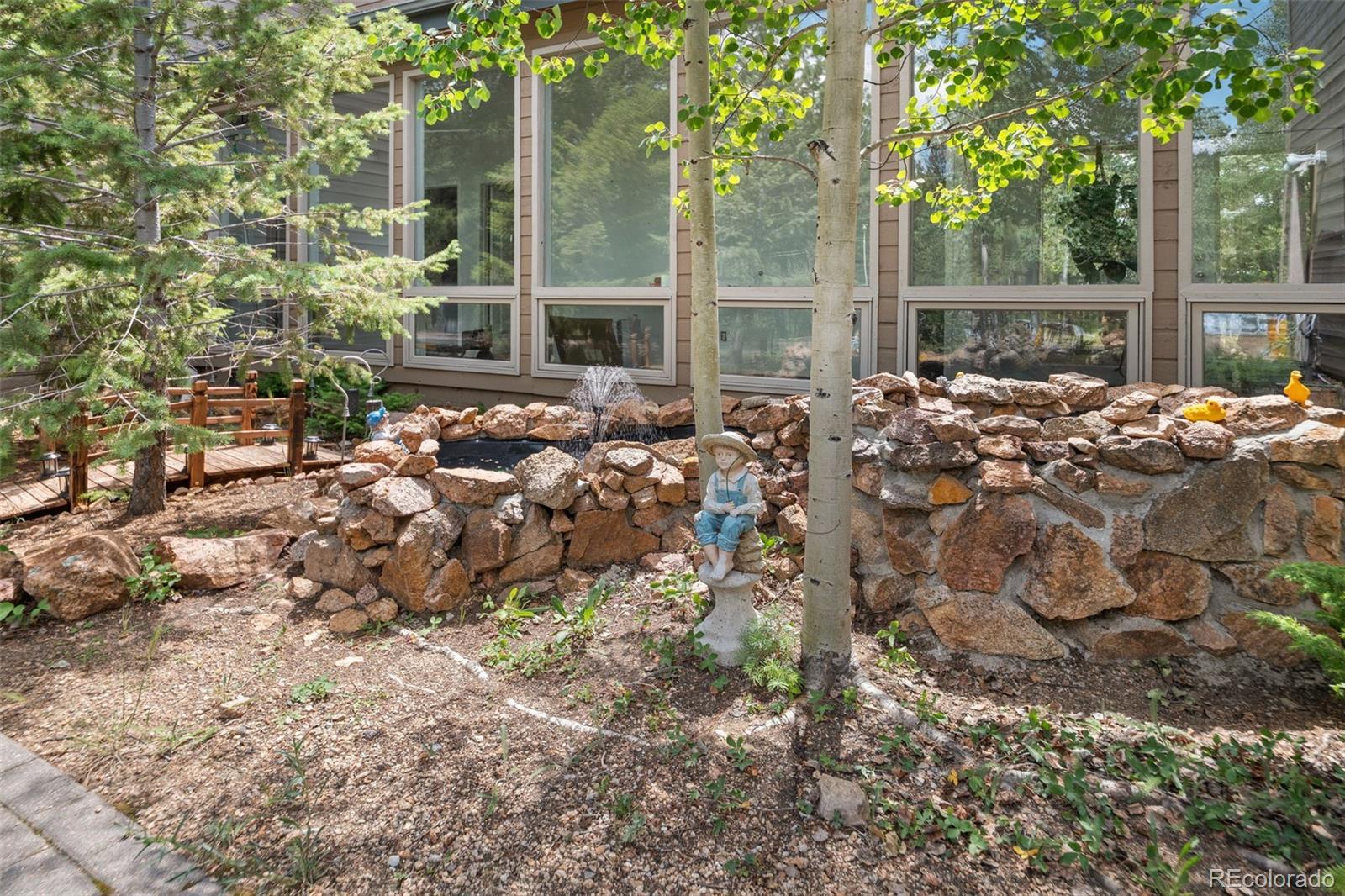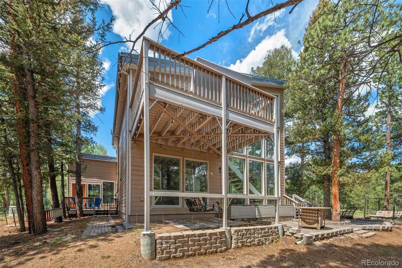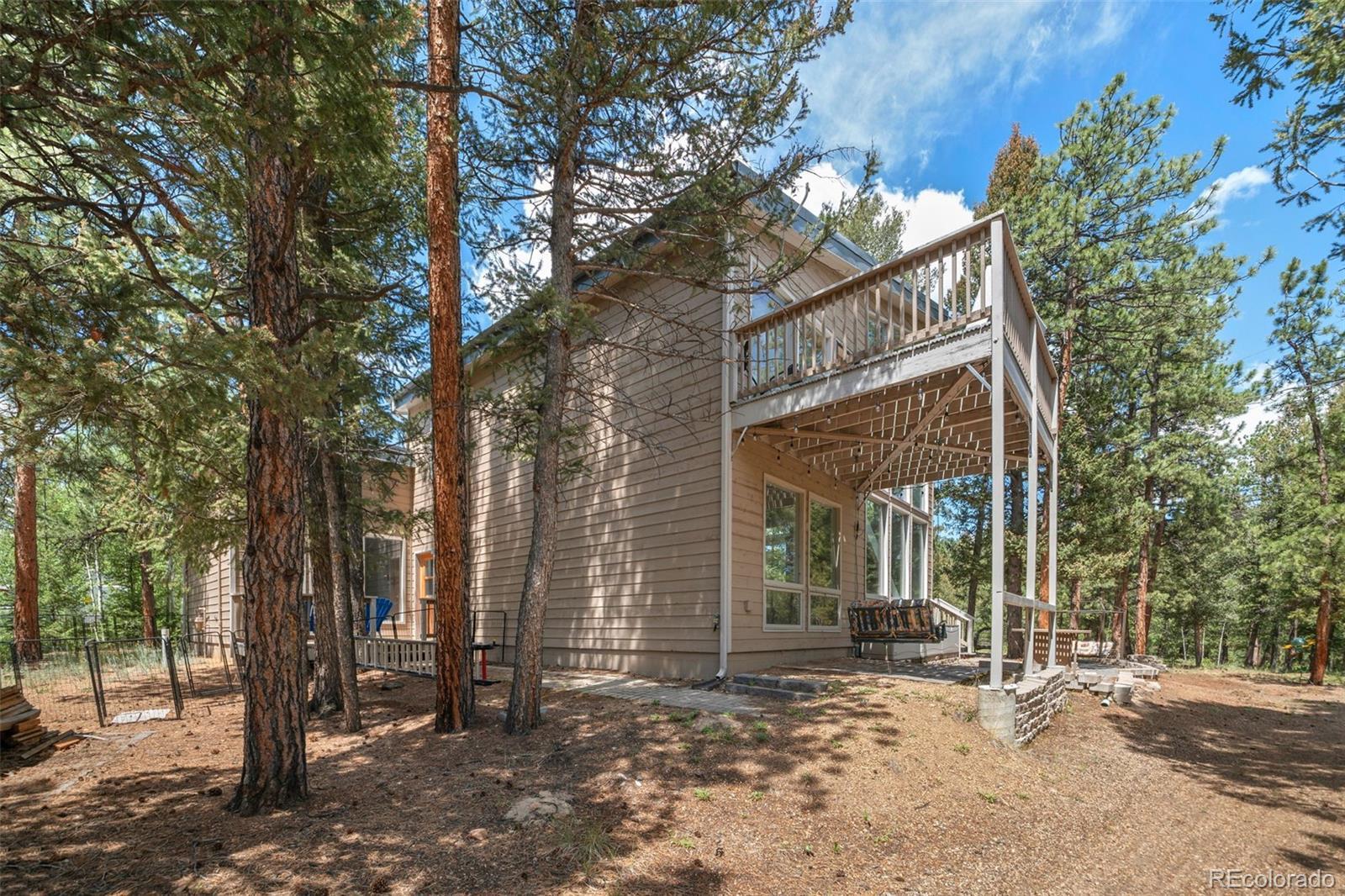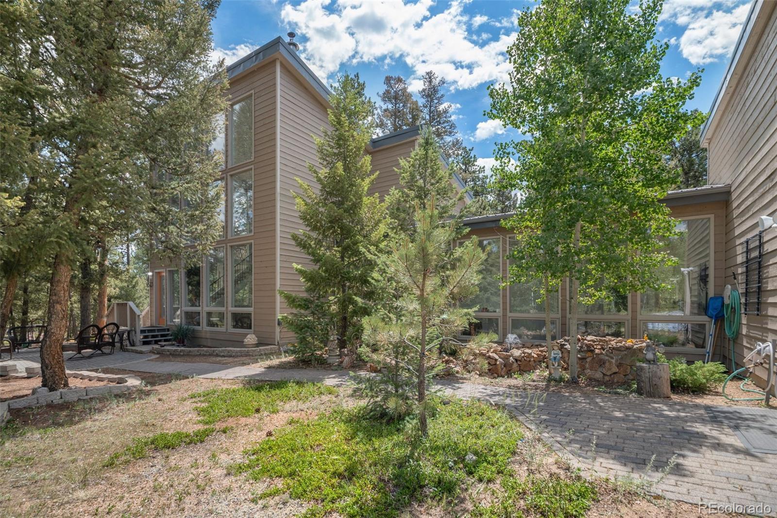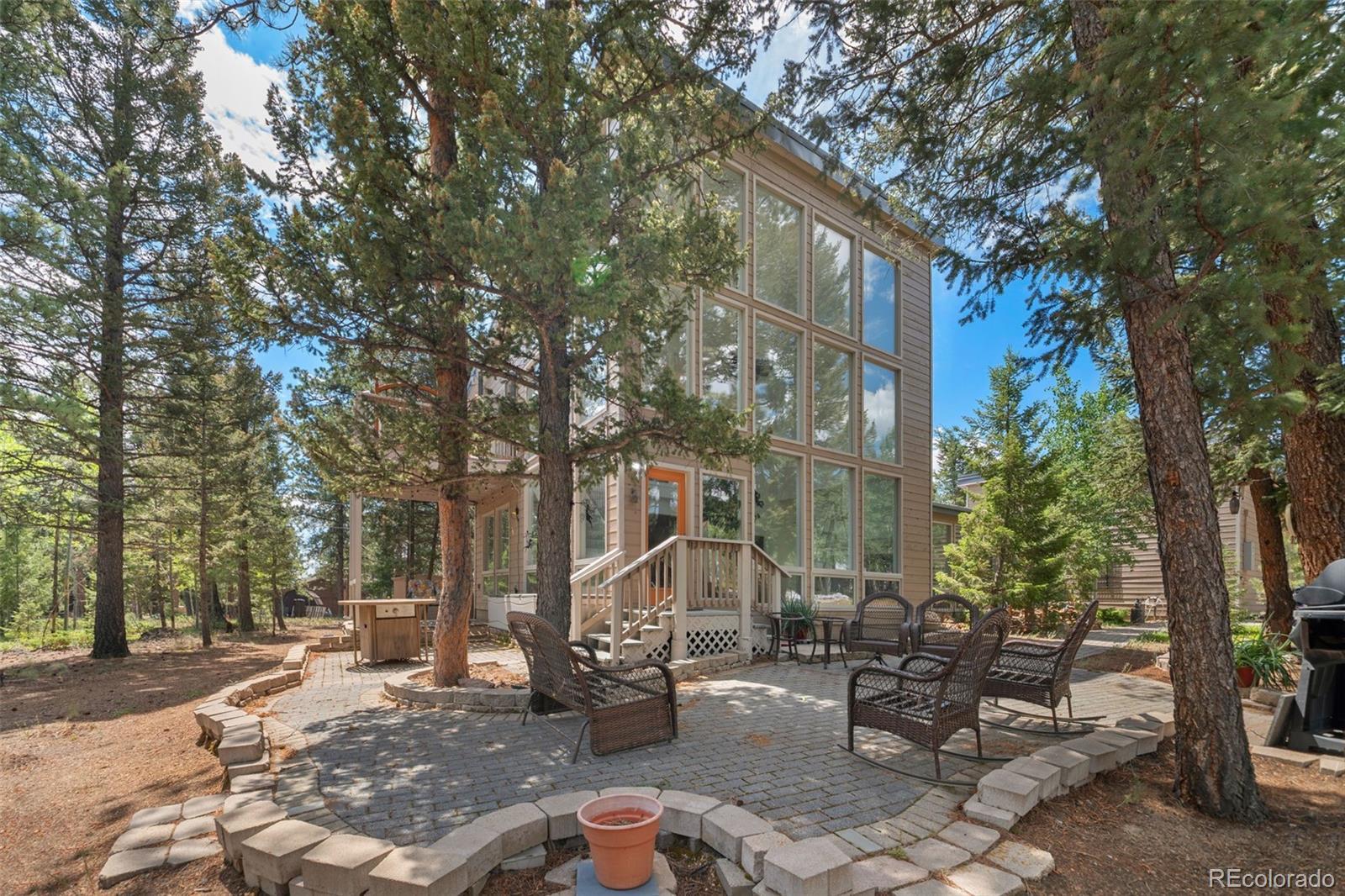 Opportunities like this don’t come up often! This contemporary-style home sits on 4 secluded, private acres offering a peaceful retreat surrounded by nature. Enjoy sweeping views of natural rock formations through two-story windows that flood the open-concept interior with light. The seller has created trails throughout the property, perfect for exploring your own backyard oasis. The lot is flat with a sun-drenched driveway, beautifully accented with pavers and a serene water feature. Step outside to an expansive deck off the upper-level loft—ideal for entertaining or relaxing under the stars. Landscape lighting and a water feature enhance the outdoor ambiance, while local wildlife adds to the mountain charm. Inside, you'll find a fresh and inviting space with a main-level primary suite, new carpet, new interior paint, and a kitchen outfitted with brand new appliances. Upstairs, you'll find a private guest suite with full bath and a loft area that could easily be converted to a third bedroom. With a new furnace, whole-house Generac generator, and pellet stove, you can count on warmth, comfort, and peace of mind year-round! The two-car garage has been thoughtfully divided—one bay for parking, the other transformed into a heated custom workshop with 220 AMP Service. RV electric hookups add extra flexibility. Long-lasting and durable metal roof. Located less than 10 minutes to 285 and within an hour of world-class ski resorts. Move-in ready and full of character, this home offers the ultimate in privacy, beauty, and Colorado mountain living!