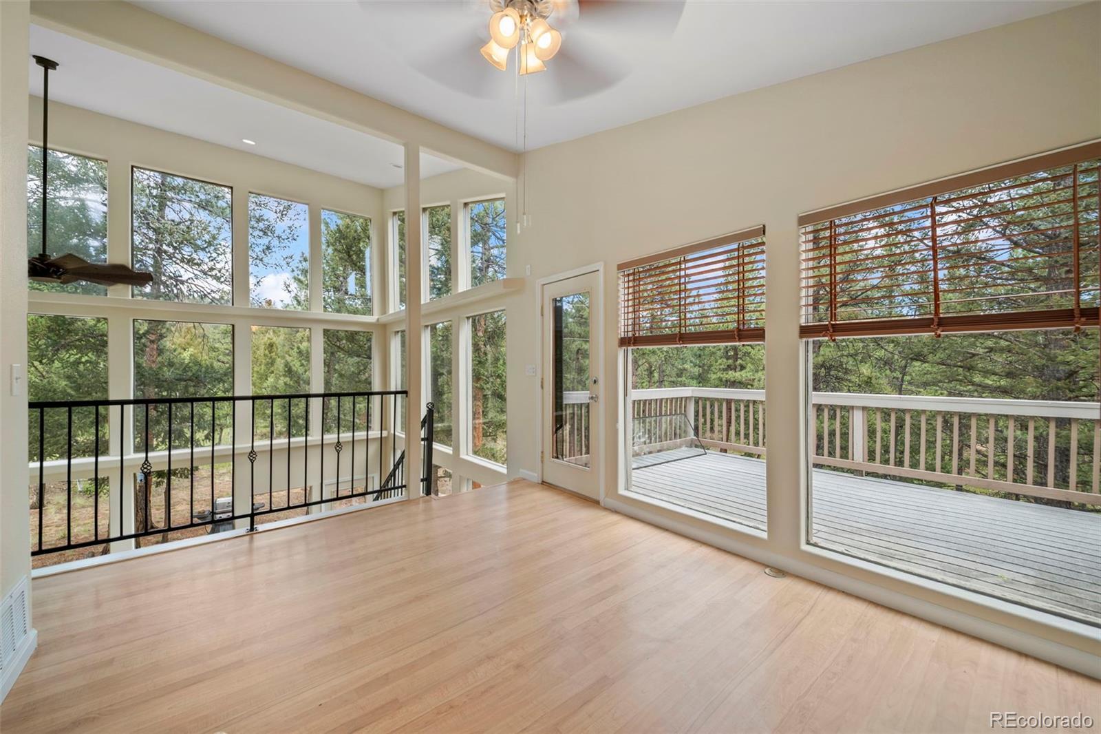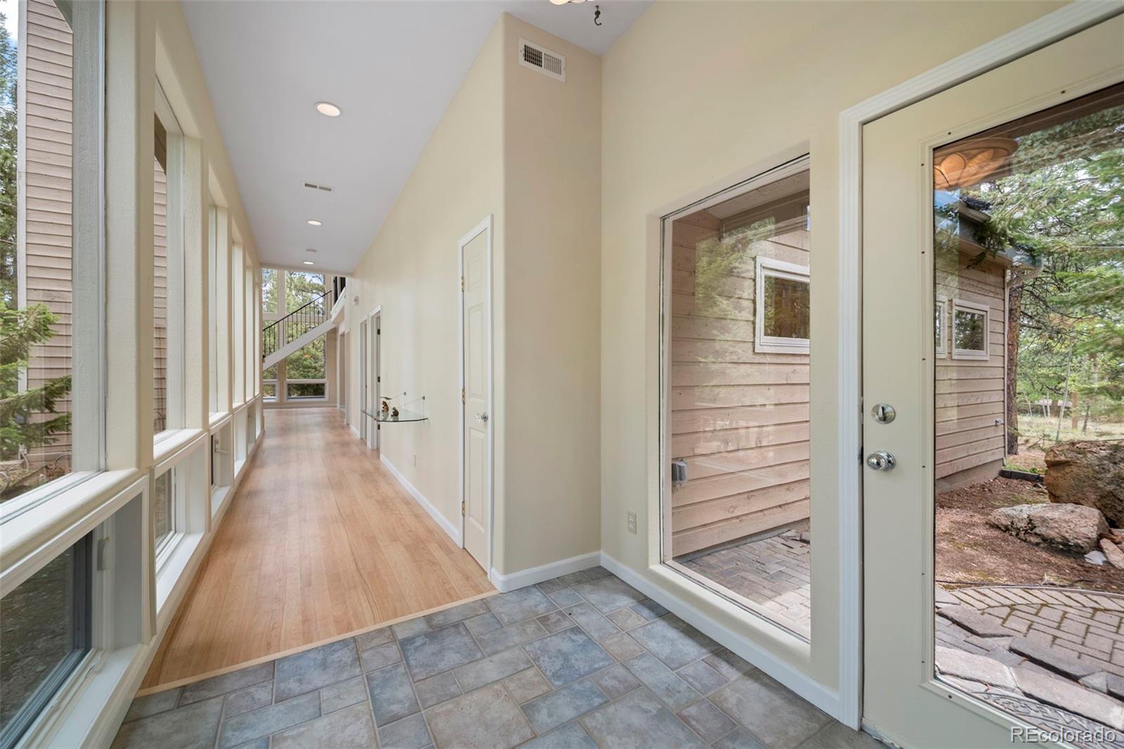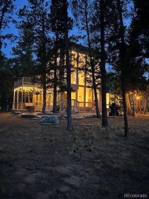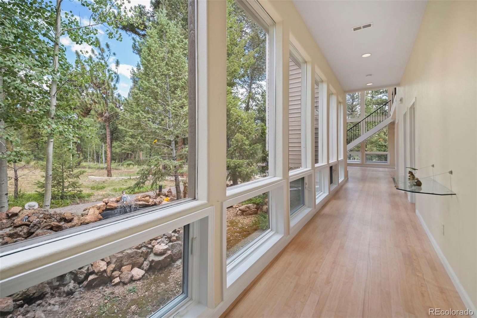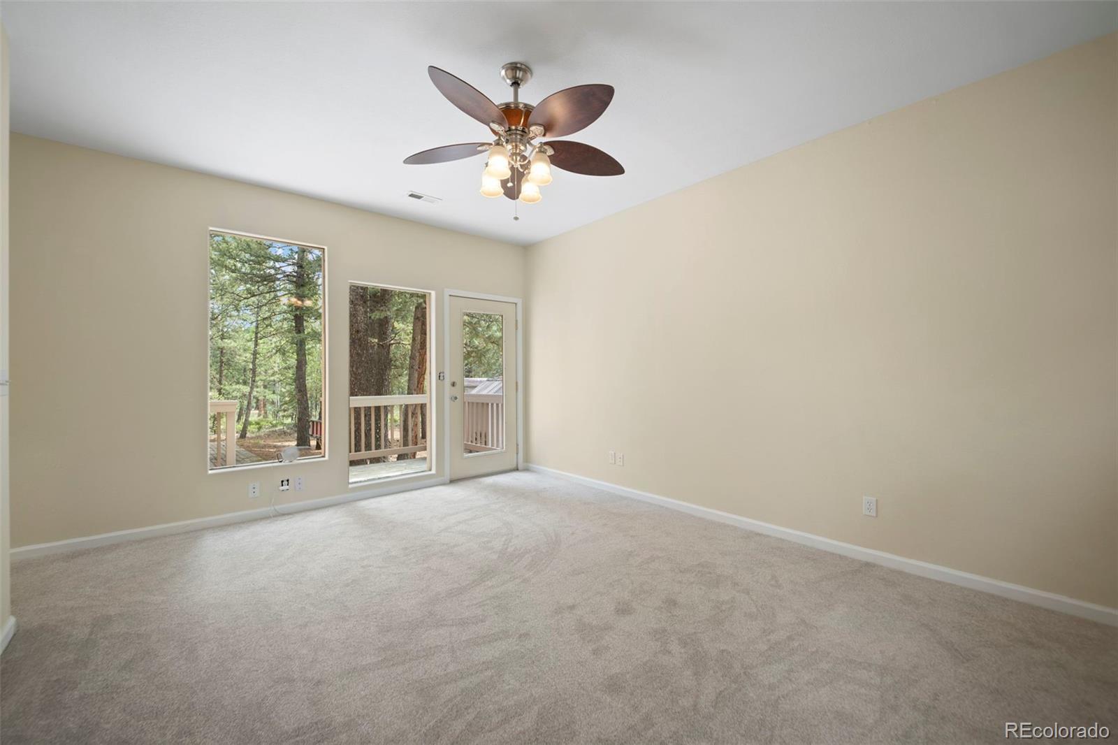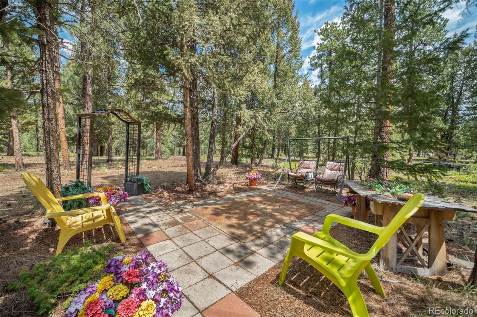 Opportunities like this don’t come up often! This contemporary-style home sits on 4 secluded, private acres offering a peaceful retreat surrounded by nature. Enjoy sweeping views of natural rock formations through two-story windows that flood the open-concept interior with light. The seller has created trails throughout the property, perfect for exploring your own backyard oasis. The lot is flat with a sun-drenched driveway, beautifully accented with pavers and a serene water feature. Step outside to an expansive deck off the upper-level loft—ideal for entertaining or relaxing under the stars. Landscape lighting and a water feature enhance the outdoor ambiance, while local wildlife adds to the mountain charm. Inside, you'll find a fresh and inviting space with a main-level primary suite, new carpet, new interior paint, and a kitchen outfitted with brand new appliances. Upstairs, you'll find a private guest suite with full bath and a loft area that could easily be converted to a third bedroom. With a new furnace, whole-house Generac generator, and pellet stove, you can count on warmth, comfort, and peace of mind year-round! The two-car garage has been thoughtfully divided—one bay for parking, the other transformed into a heated custom workshop with 220 AMP Service. RV electric hookups add extra flexibility. Long-lasting and durable metal roof. Located less than 10 minutes to 285 and within an hour of world-class ski resorts. Move-in ready and full of character, this home offers the ultimate in privacy, beauty, and Colorado mountain living!