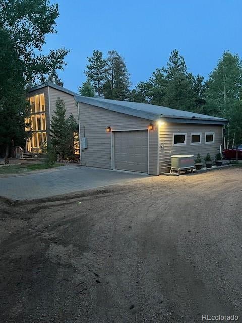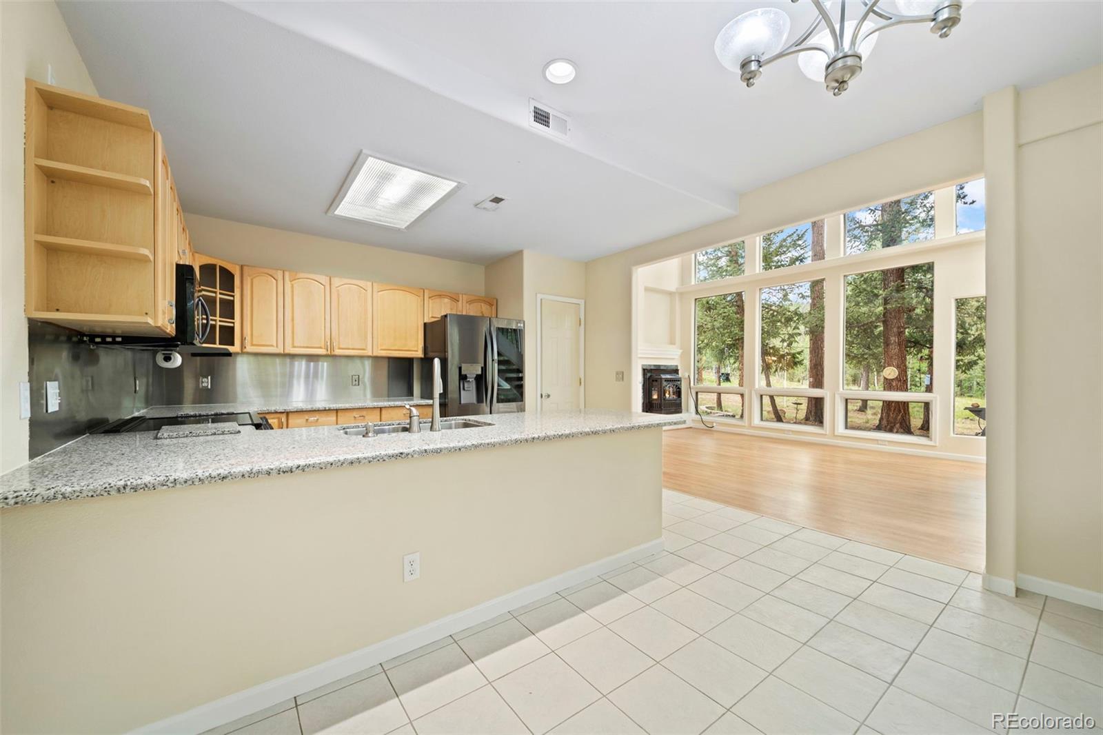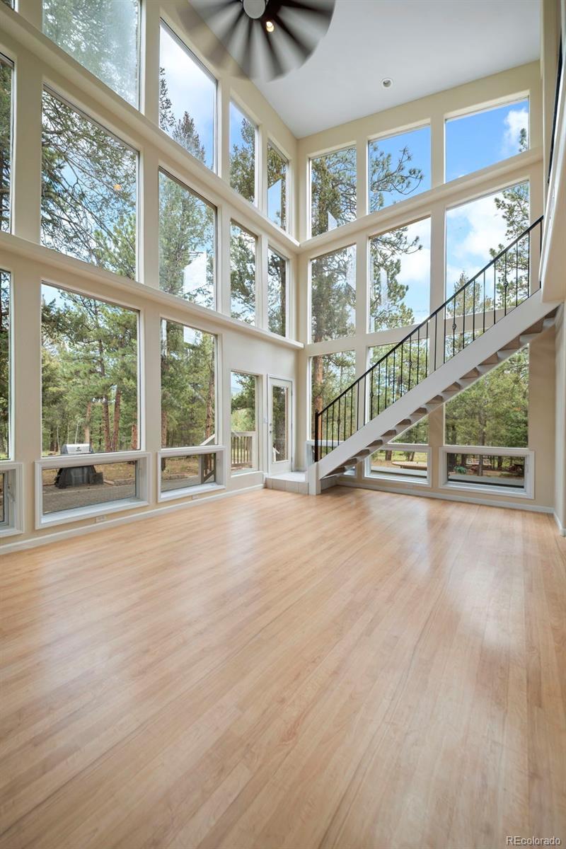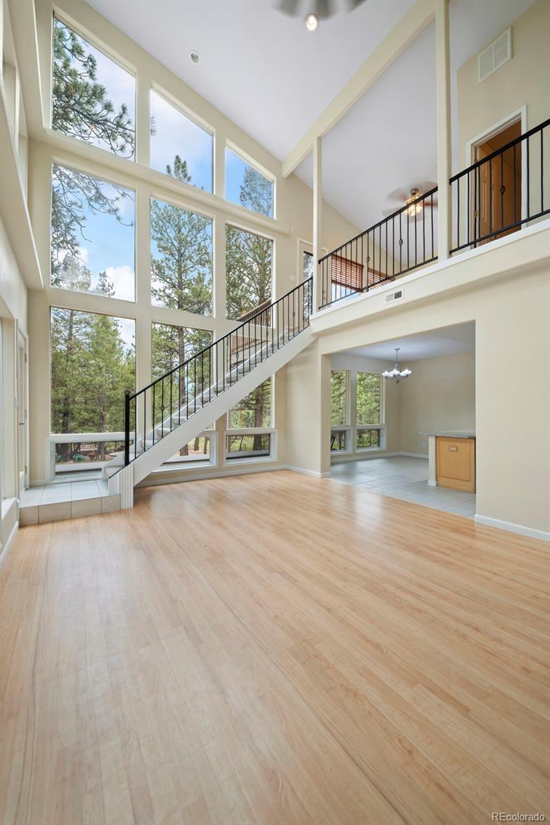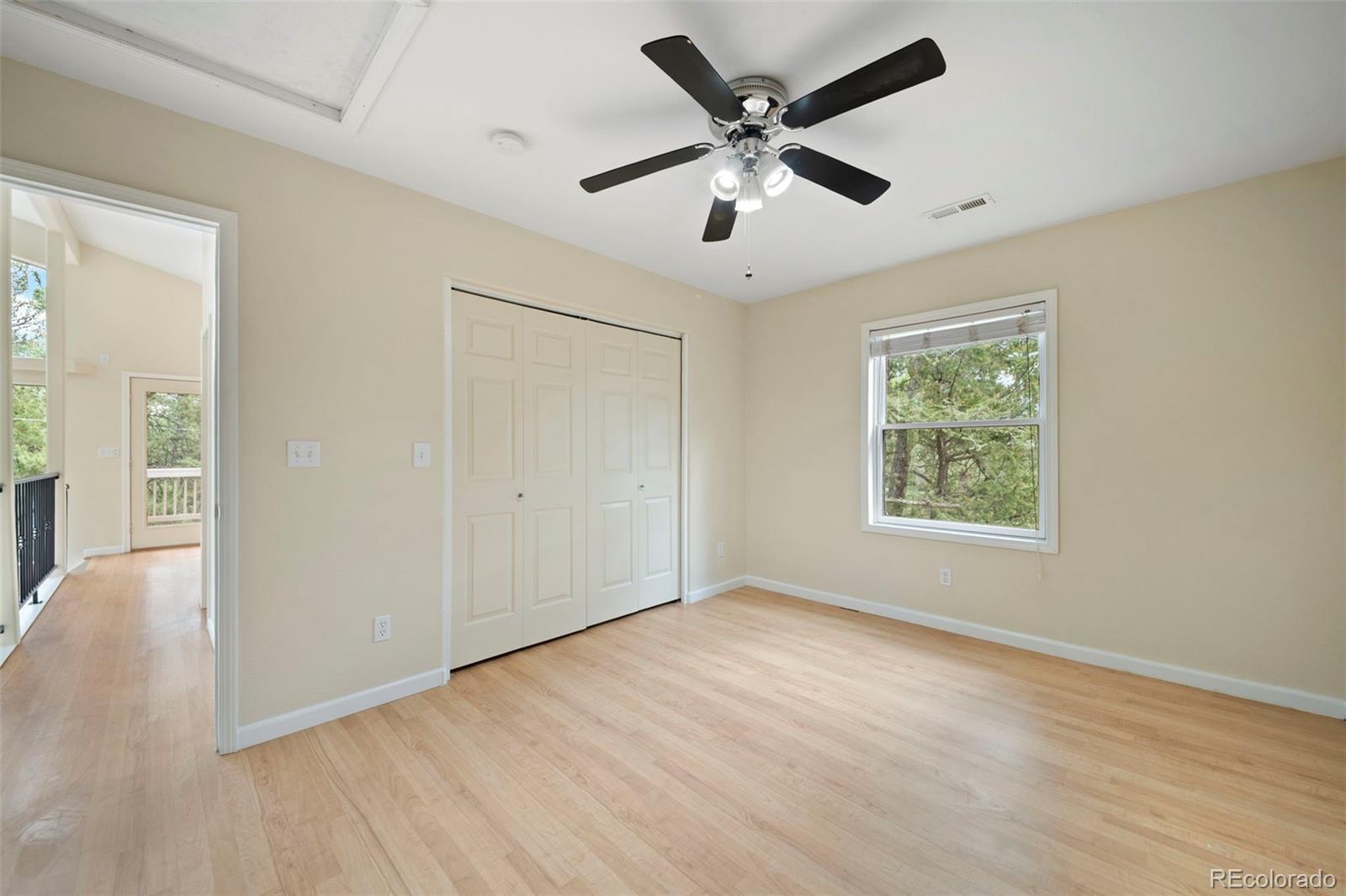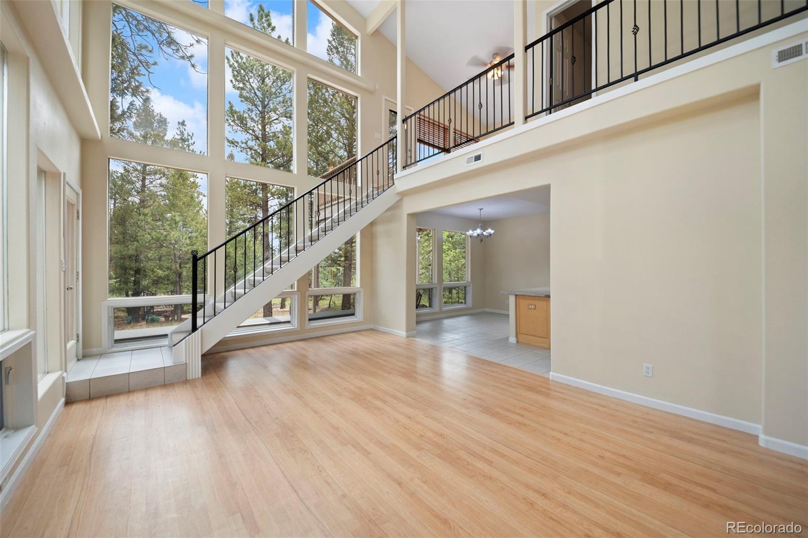 Opportunities like this don’t come up often! This contemporary-style home sits on 4 secluded, private acres offering a peaceful retreat surrounded by nature. Enjoy sweeping views of natural rock formations through two-story windows that flood the open-concept interior with light. The seller has created trails throughout the property, perfect for exploring your own backyard oasis. The lot is flat with a sun-drenched driveway, beautifully accented with pavers and a serene water feature. Step outside to an expansive deck off the upper-level loft—ideal for entertaining or relaxing under the stars. Landscape lighting and a water feature enhance the outdoor ambiance, while local wildlife adds to the mountain charm. Inside, you'll find a fresh and inviting space with a main-level primary suite, new carpet, new interior paint, and a kitchen outfitted with brand new appliances. Upstairs, you'll find a private guest suite with full bath and a loft area that could easily be converted to a third bedroom. With a new furnace, whole-house Generac generator, and pellet stove, you can count on warmth, comfort, and peace of mind year-round! The two-car garage has been thoughtfully divided—one bay for parking, the other transformed into a heated custom workshop with 220 AMP Service. RV electric hookups add extra flexibility. Long-lasting and durable metal roof. Located less than 10 minutes to 285 and within an hour of world-class ski resorts. Move-in ready and full of character, this home offers the ultimate in privacy, beauty, and Colorado mountain living!