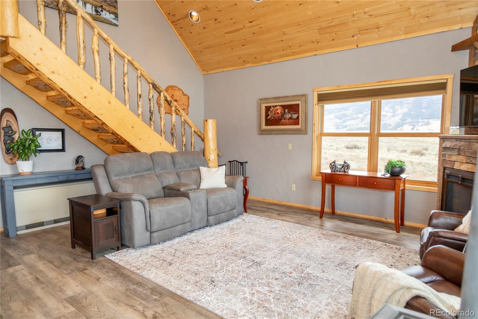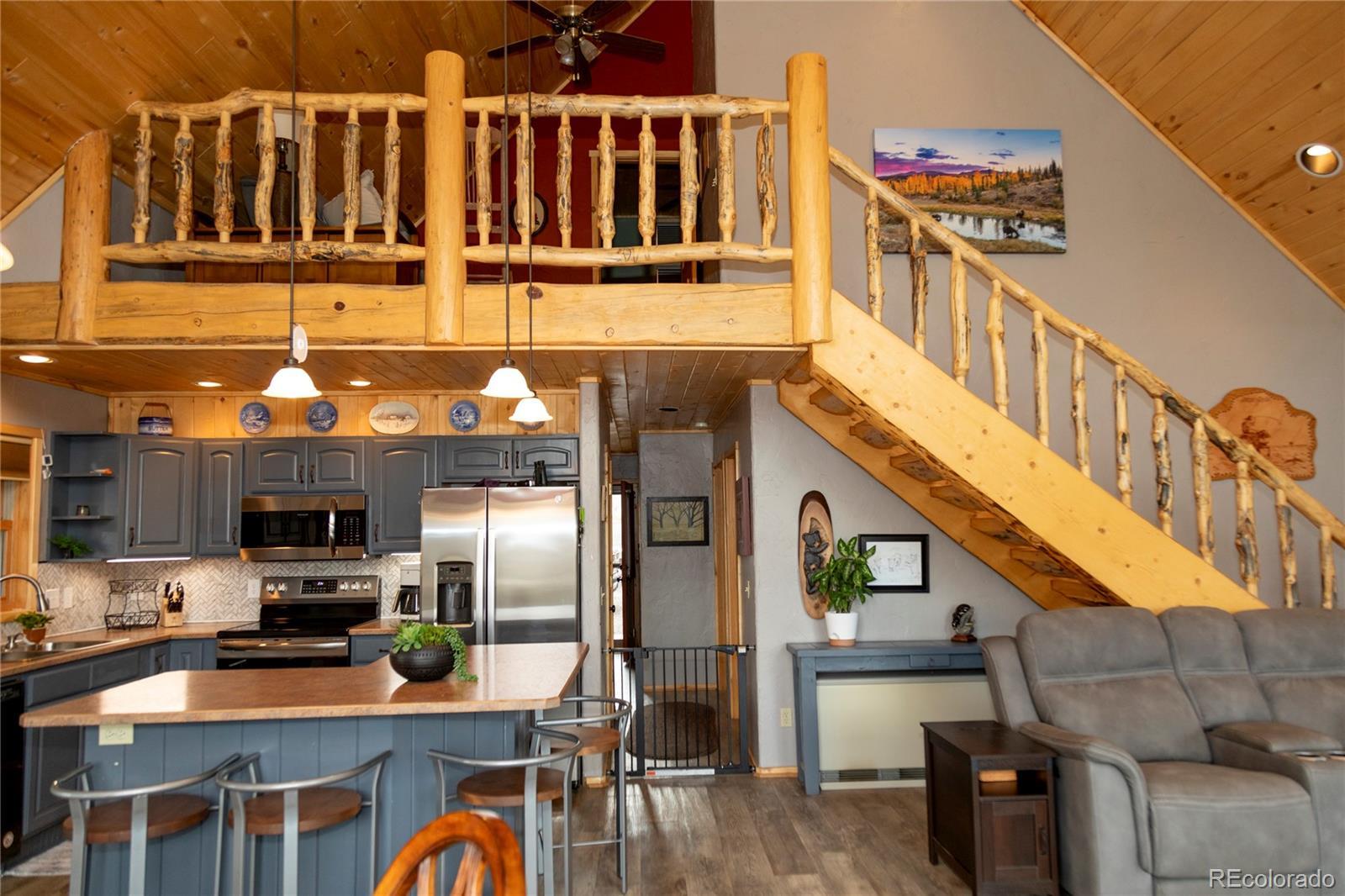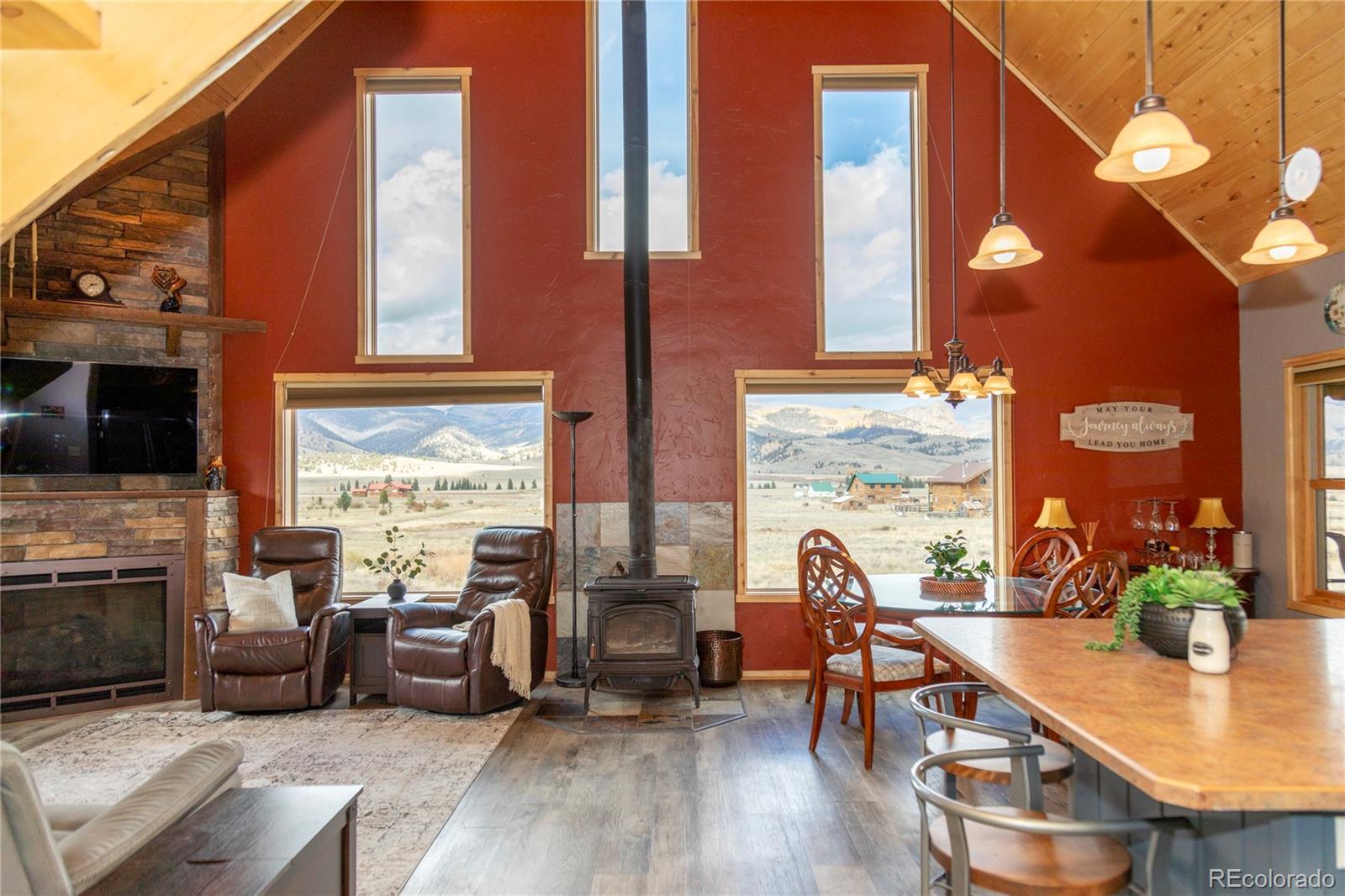 This beautifully maintained 1,390 sq. ft. cabin features 2 bedrooms and 2 bathrooms with an open living area highlighted by cathedral ceilings, tongue-and-groove woodwork, and large windows that fill the home with natural light. A cozy corner propane fireplace adds warmth and charm, while the home’s turnkey condition means you can start enjoying mountain living right away. Step outside to a covered porch, outdoor kitchen, and fenced yard with real grass—a rare find in the mountains. The property also includes a garage/workshop, large carport perfect for gatherings, and an RV pad with full hookups for guests. Bordering National Forest, this cabin offers direct access to endless outdoor recreation and peaceful privacy, all within minutes of Creede’s shops and restaurants. Every detail has been thoughtfully planned, this property is ready for you to move in and enjoy.