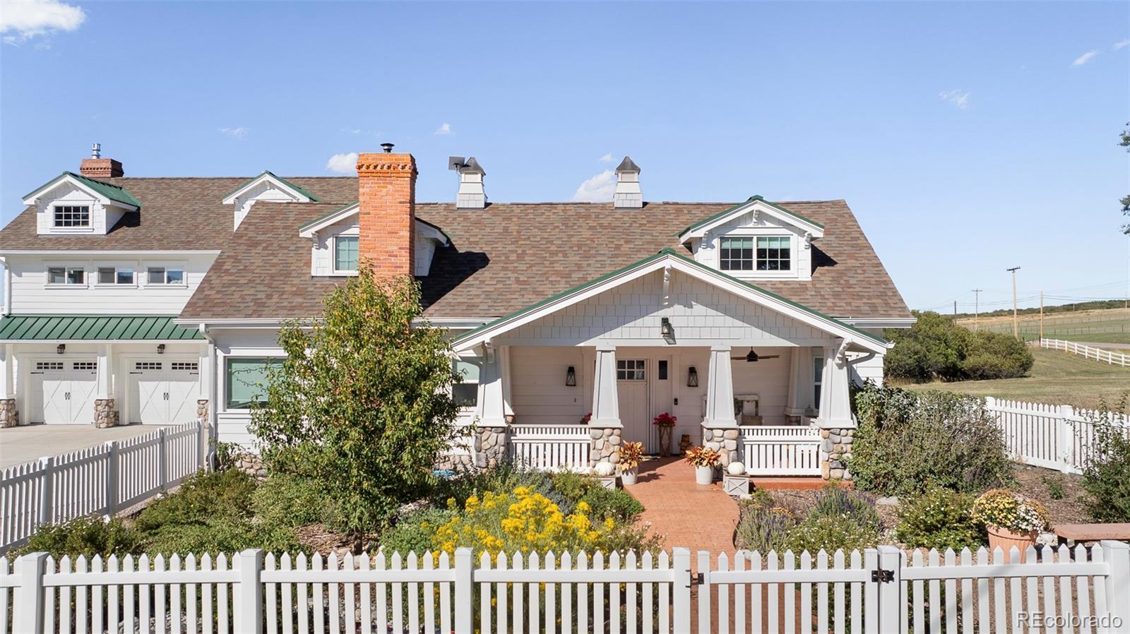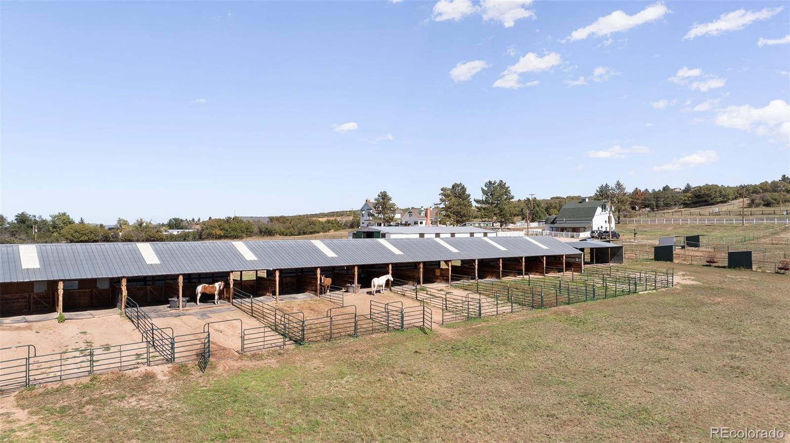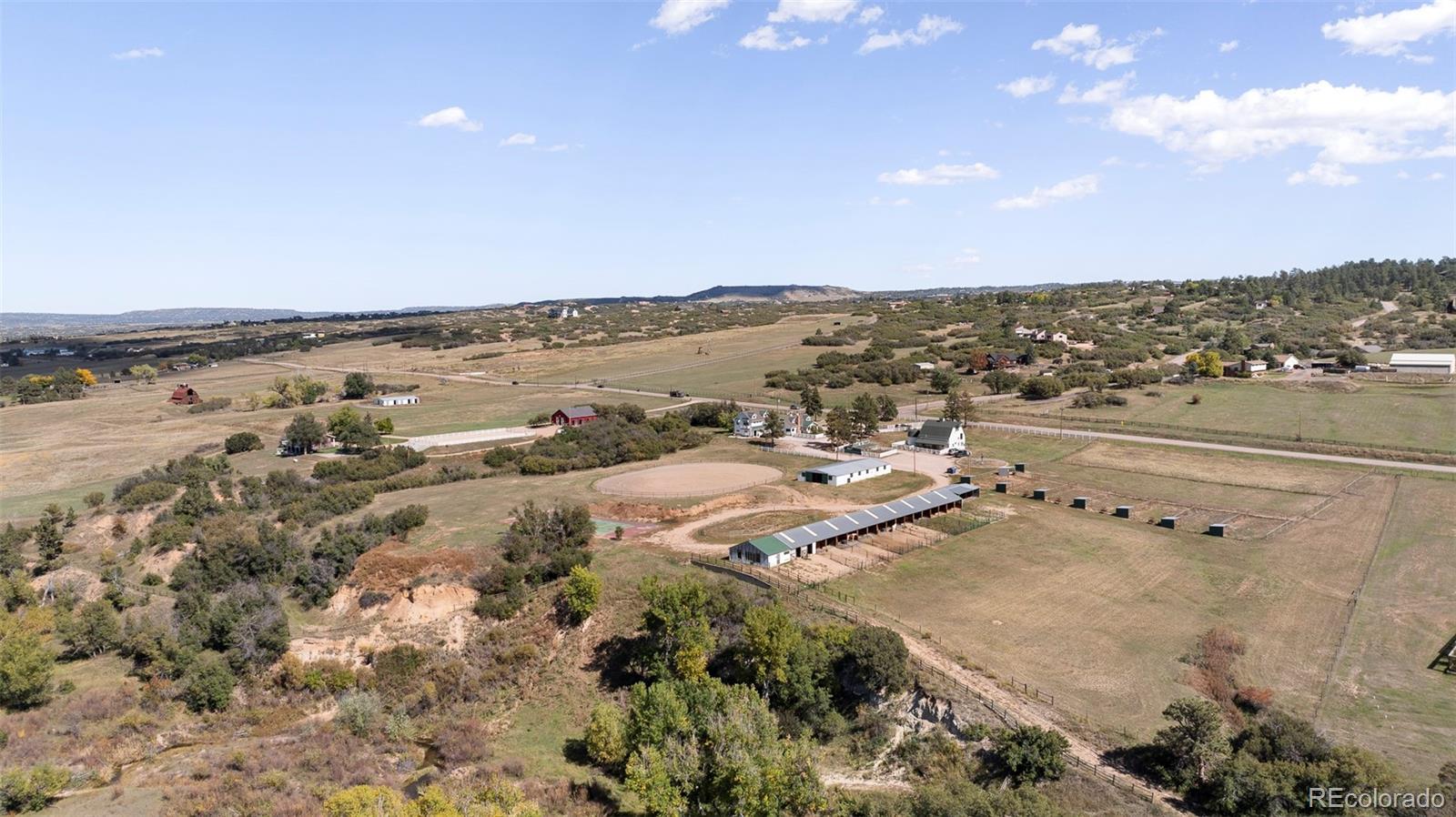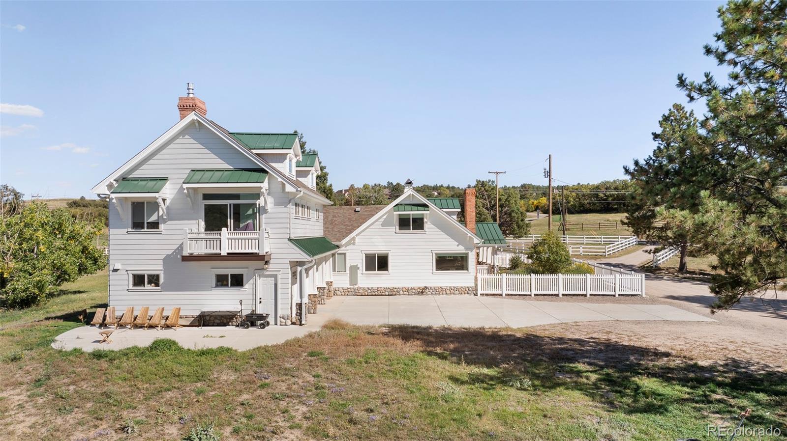 A rare opportunity emerges on one of Sedalia’s most captivating ranch properties. This meticulously renovated 1925 farmhouse with an impressive new addition sits on 36.2 acres of prime Colorado landscape, where West Plum Creek meanders through sweeping meadows framed by mountain views. Every aspect of this home has been thoughtfully curated — from top-of-the-line appliances and custom finishes to in-floor heating, on-demand hot water and a heated three-car garage. Expansive patios on each side of the home invite seamless indoor-outdoor living, complete with gas lines ready for a built-in grill or fireplace. Beyond the main residence, a beautifully restored 1865 barn houses two stylish apartments with rental income potential, while an 18-stall barn with tack rooms, office and an additional 10-stall barn provide premier equestrian amenities. Fenced pastures, mature landscaping and the tranquil location create an exceptional retreat just moments from Castle Rocks’s shopping and dining.