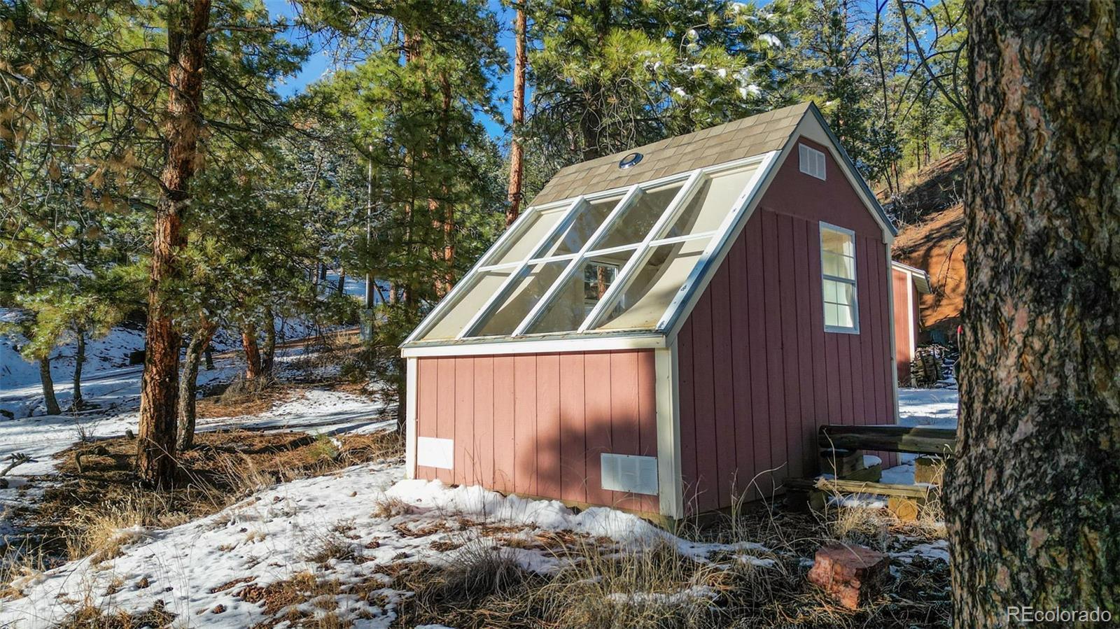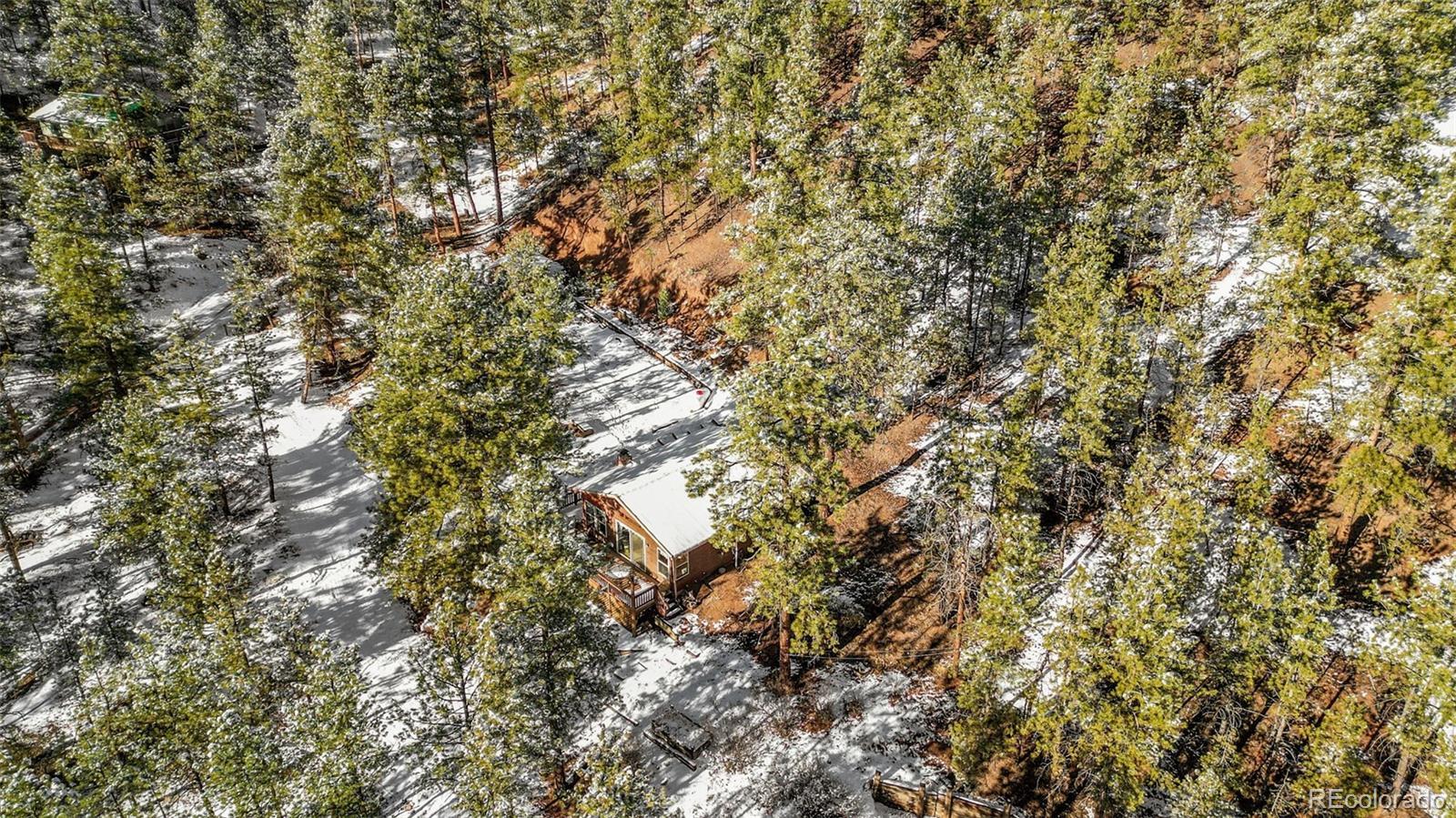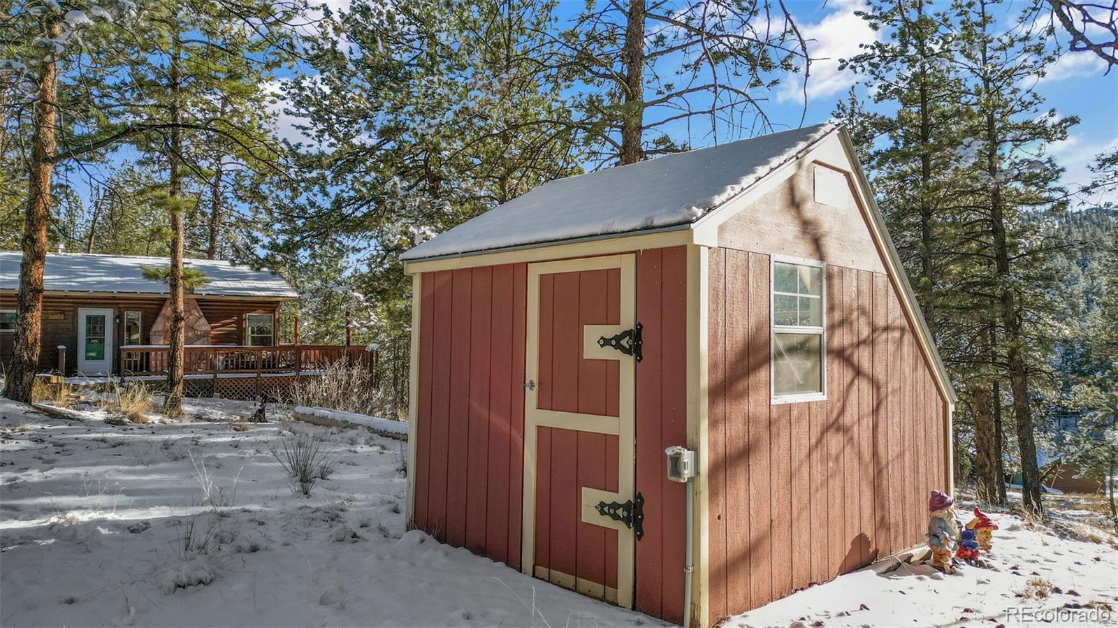 Well-maintained cabin in the gated community of Rainbow Falls Park North, surrounded by National Forest. Year-round water, electricity, high-speed internet, phone service, and snow-plowed access at a mild 6,400 ft elevation. Interior features 1 bedroom, 1 full bath, an additional multi-use room (laundry/sleeping/storage), wood stove, forced-air propane heat, on-demand electric water heater, new hardwood oak floors, and a refinished steel bathtub (2023). The 3.3-acre wooded lot offers ponderosa pines and plenty of level parking and privacy. Wrap-wround spacious, sunlit composite deck. The subdivision includes private stocked fishing ponds with boat ramp, park and trail system, abundant wildlife, and a quiet mix of part-time and full-time neighbors. Other extras include new metal roof with super-insulated attic, underground electric and telephone lines, greenhouse with electrical service, and a tool shed with electrical service. New septic tank scheduled for installation in 2026. Don't miss your opportunity to live the Colorado mountain lifestyle in this exclusive and highly sought after community.