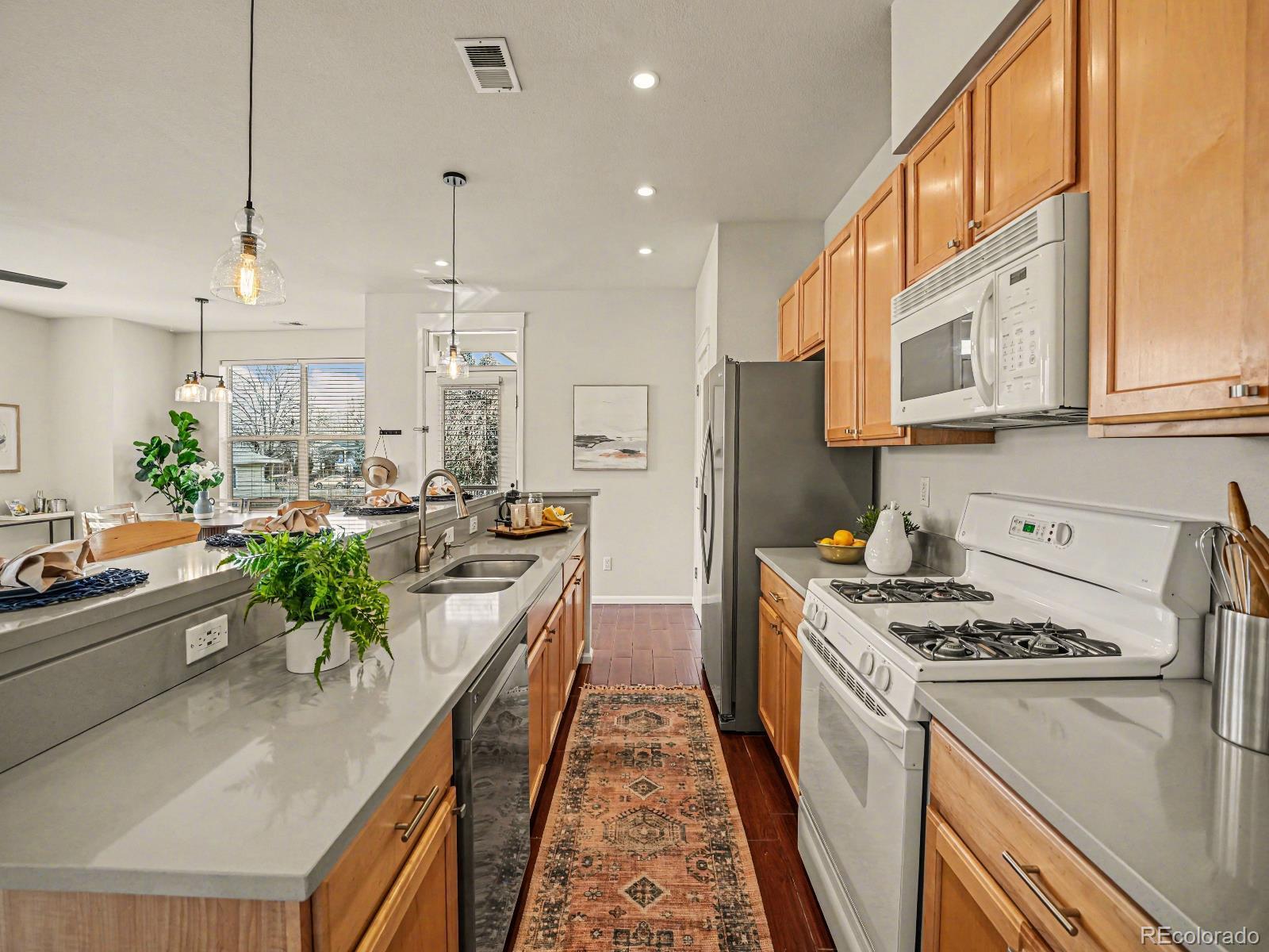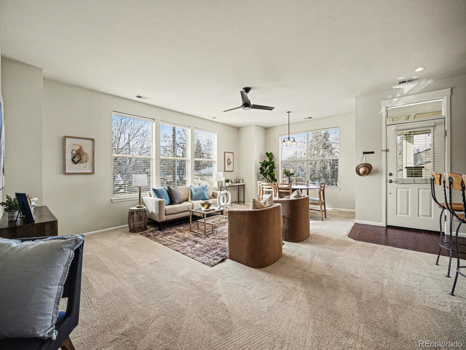 Beautifully maintained 2-bedroom, 2-bath residence in an unbeatable location, just blocks from Sloan's Lake! This inviting home features an open floor plan with 9-foot ceilings and a thoughtfully updated Kitchen complete with quartz countertops, gas range, spacious walk-in pantry, and newer refrigerator, dishwasher, and disposal.The Primary Suite offers vaulted ceilings, an updated en-suite Full Bathroom, and a walk-in closet with custom shelving.The multiple south, east and west facing windows provide abundant natural light, where sunrise and sunset views will be enjoyed year-round and the mature trees offer shade, beauty and privacy. The expansive deck is perfect for entertaining, outdoor dining or simply relaxing. Other features of the home include fresh paint, updated Bathrooms, newer Washer and Dryer, newer Hot Water Heater, newer bath fans, oversized Garage with newer smart opener and generous amounts of storage including new Gladiator Shelf and pulleys for bike storage. Additionally, you'll appreciate the convenience of the newer NEST thermostat, multiple built-in charging outlets, linen closet, newer ceiling fans and dining room light. You are just blocks from Sloan's Lake, Edgewater Marketplace, Downtown Edgewater and West Colfax restaurants, breweries, Alamo Drafthouse, shopping and more! Plus walkable to Ace Hardware, Target and King Soopers! Conveniently located just a few blocks from the Sheridan Lightrail Station, Edgewater Post Office and Library/Rec Center. Quick and convenient access to 6th Ave, I-70 and just minutes to downtown or mountains! This home is eligible for special financing with the Community Reinvestment Act Loan (CRA). 3% down and lender paid mortgage insurance plus up to $3000 in closing costs covered by lender. Contact Listing Agent for details.