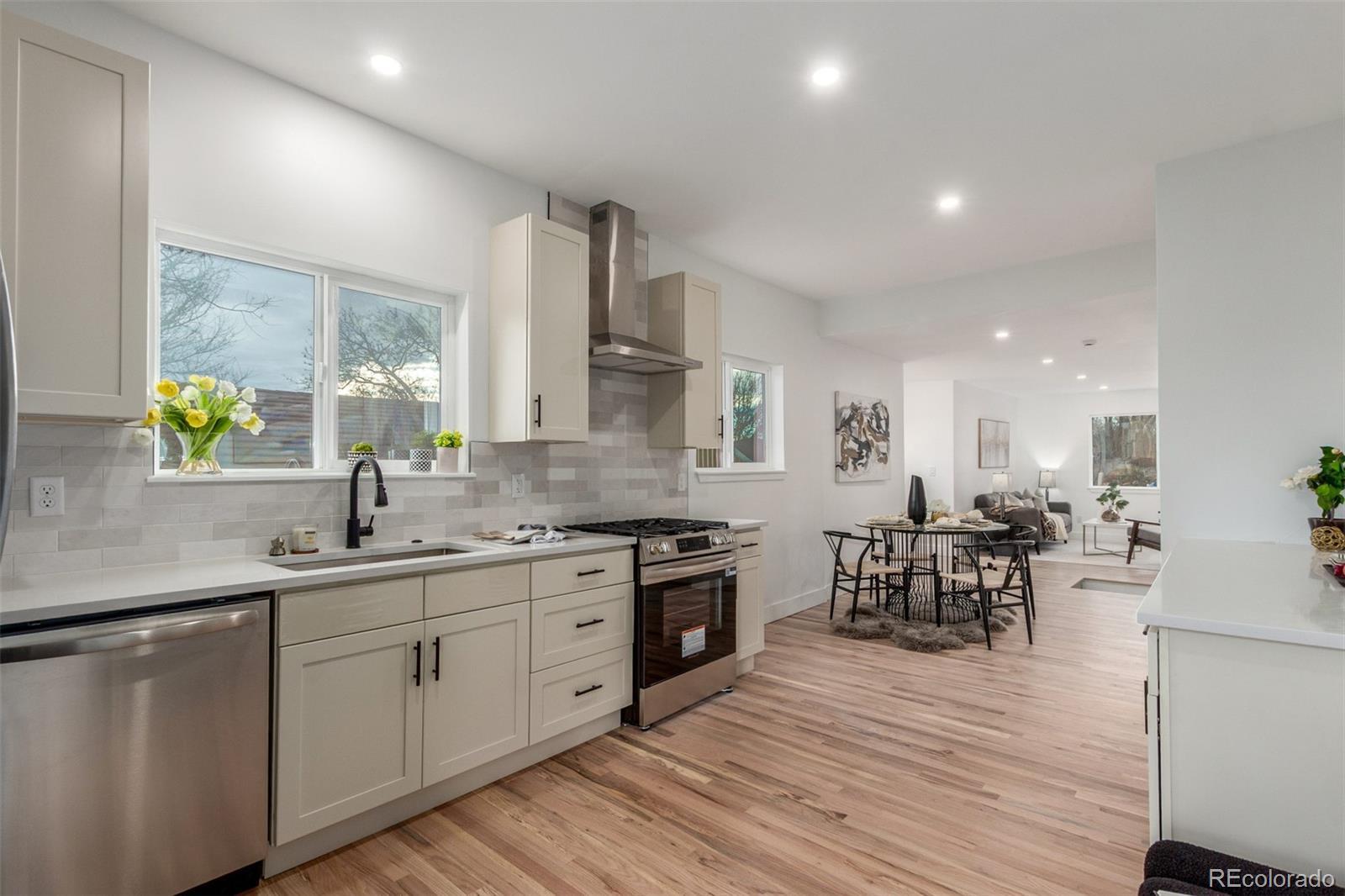Modern Elegance Meets Classic Charm! Step into this beautifully renovated 3-bedroom, 3-bath home, thoughtfully designed for both style and comfort. The open-concept main level features new hardwood floors, a bright living and dining area, and a stunning designer kitchen with soft off white cabinetry, and quartz countertops. The main level includes three inviting bedrooms and two beautifully finished bathrooms, including a spa-inspired primary suite with an oversized shower and premium finishes. Downstairs, the fully finished basement offers a spacious bonus non-conforming room, perfect for a home office, gym, or guest space, along with a full bathroom. This Denver neighborhood offers unbeatable convenience. You’re just minutes from 6th Ave, I-25, and Federal Blvd, making commutes into downtown effortless and putting the Rocky Mountains within quick reach for weekend adventures. It’s the perfect home base for both city living and mountain escapes. Enjoy modern living in a home that truly has it all. Schedule your private showing today!