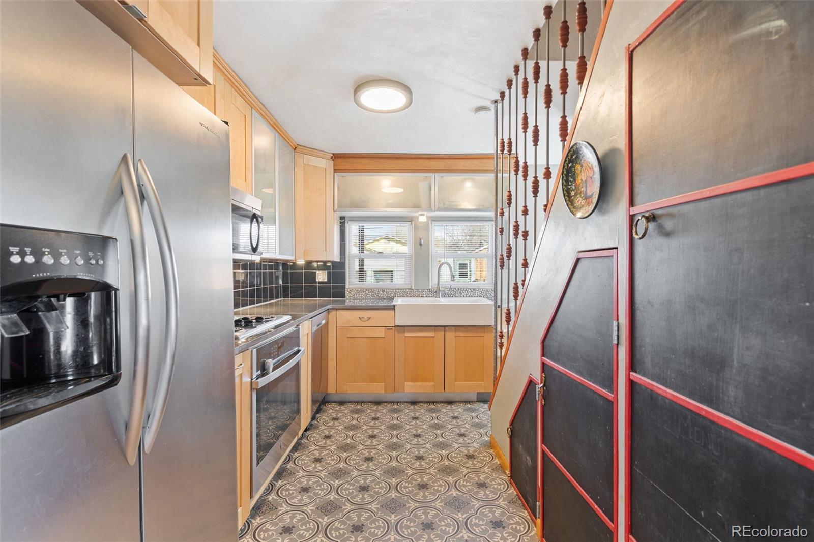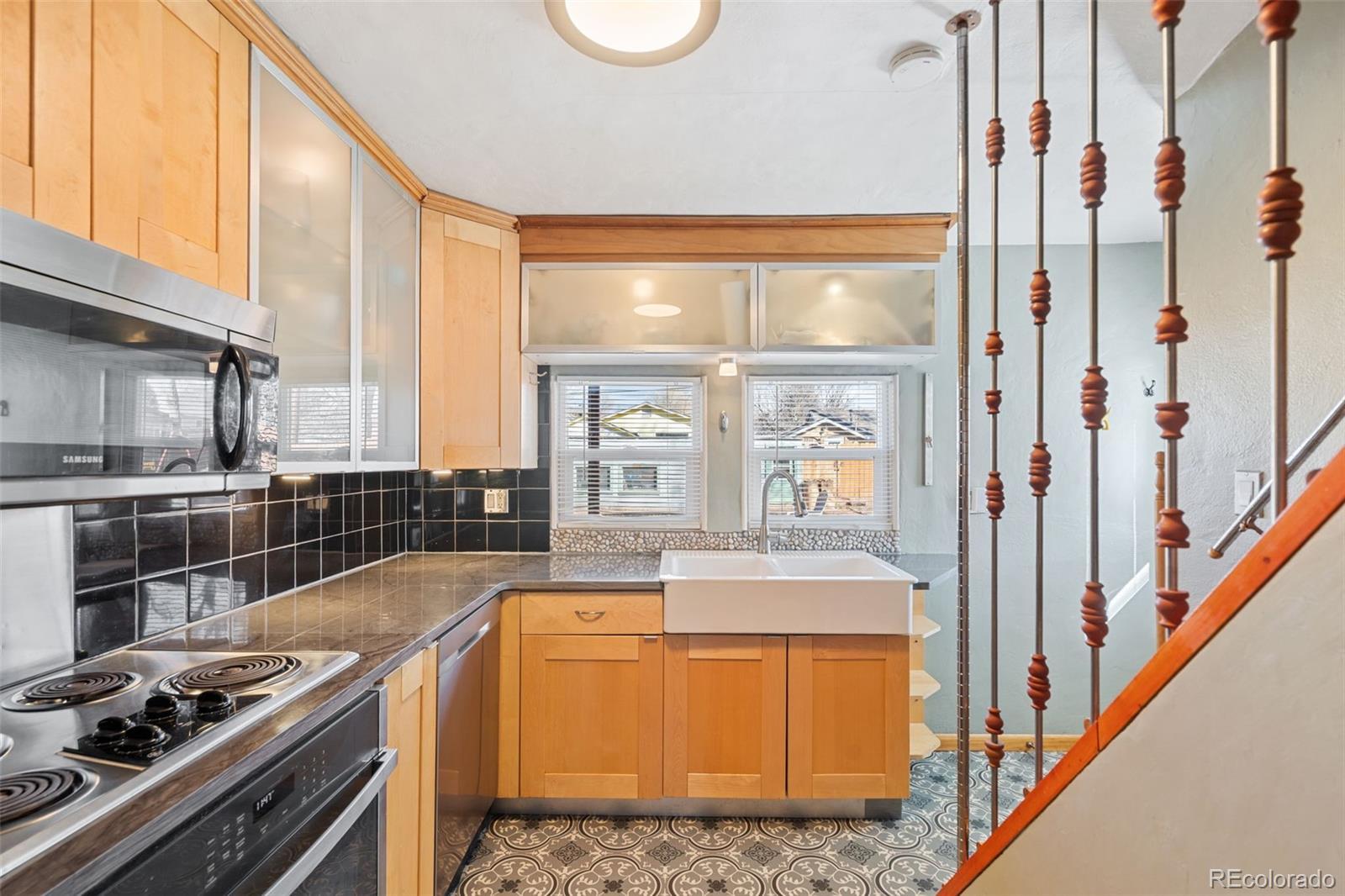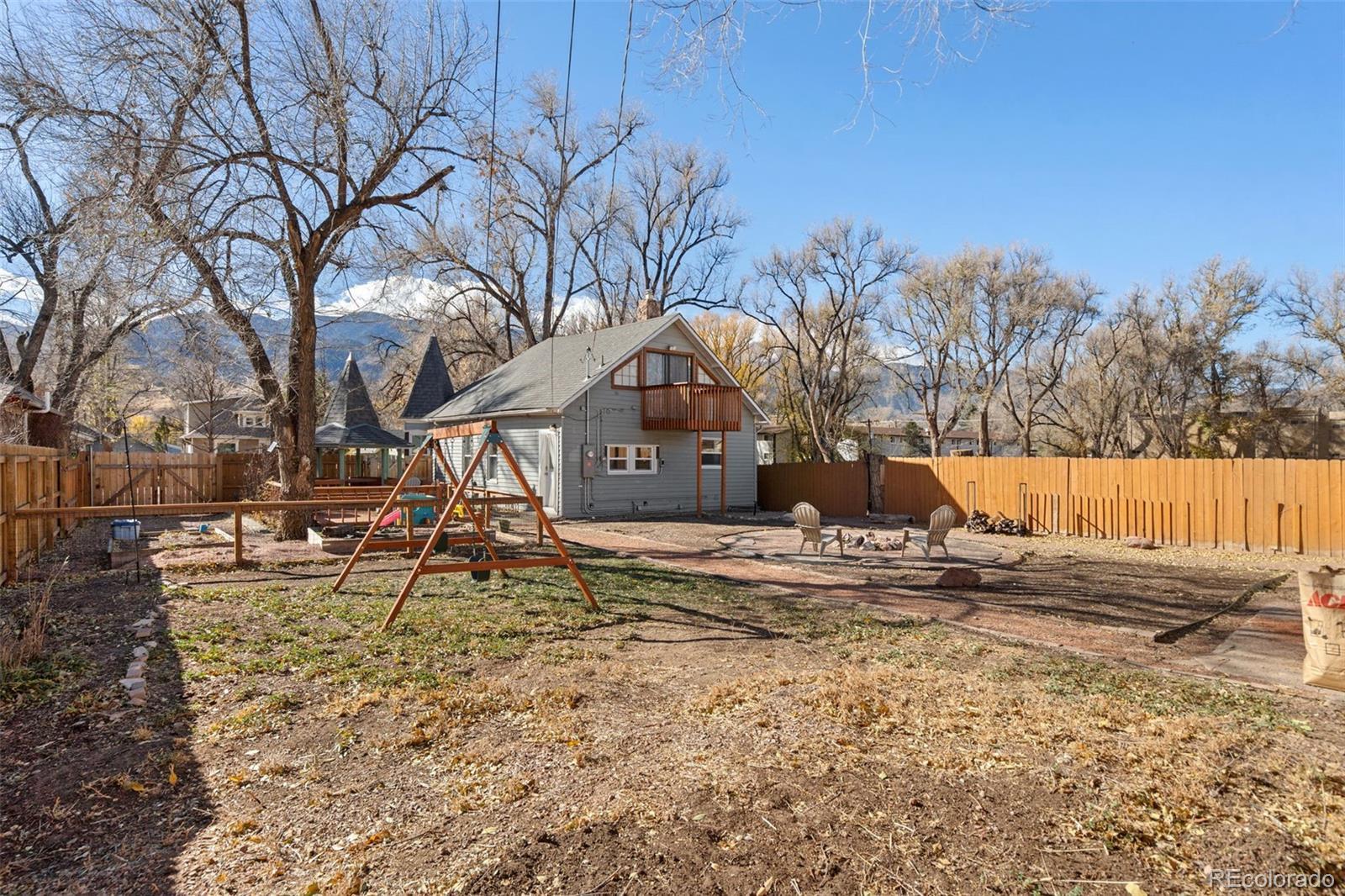 Welcome to this timeless 2-bedroom, 1-bath charmer, lovingly cared for over the years and perfectly nestled in Old Colorado City—just steps from some of the best hiking in Colorado Springs! Offering a spacious open layout with a delightful blend of vintage character and modern updates, this home features an updated kitchen, vintage arched entryways, original door knobs, classic built-ins, a converted attic bedroom with a walk-out balcony, and an oversized double-lot, fully fenced backyard. The incredible backyard includes a spacious deck with a pretty gazebo complete with electricity, a cozy fire pit, raised garden boxes ready for spring planting, room for RV parking, and a storage shed. Enjoy two large living areas—one with an adorable corner bay window that’s perfect for your holiday tree or for curling up with a good book in the sunshine. The updated full bath includes a stackable washer and dryer for added convenience. Home chefs will love the kitchen with warm wood cabinetry, a modern farmhouse-style sink, under-cabinet lighting, updated stainless steel appliances, new oven, new microwave, and new granite countertops, plus a hidden under-the-stairs pantry finished with fun chalkboard paint. Head upstairs to a spacious bedroom with a bonus area ideal for a home office, plus a walk-out to a private balcony overlooking the beautiful backyard. Recent improvements include new carpet, a recently updated furnace, recently updated A/C (with a new supply line to the upstairs bedroom), updated galvanized and sewer piping, an updated dishwasher, refreshed front landscaping, and the newly installed kitchen upgrades. This updated charmer in the heart of Old Colorado City is truly a must-see—ready for you to move right in and call it home!