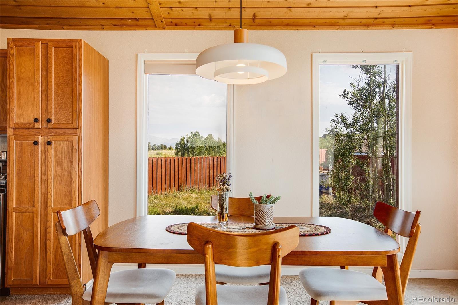 UNBELIEVABLE PRICE for this RANCH STYLE HOME on OVER 5 Acres of rolling meadow offering the ideal combination of town conveniences near by, easy year round access and a peaceful private setting that must be seen in person to appreciate! VIEWS FROM EVERY ROOM!!! Located just minutes south of Fairplay and Hwy 285, the 4 bedroom 3 full bath home sits back from the road allowing for privacy and AMAZING mountain VIEWS! The natural beauty of the surrounding area flows in through the large windows throughout the home, making each space feel welcoming, light-filled, and connected to the outdoors. The open style kitchen/dining/living area is complimented by tongue and groove vaulted ceilings with skylights, an efficient pellet stove and is connected by a wrap around deck with two separate entrances to the home. The kitchen is equipped with stainless steel appliances, ample counter space, and abundant cabinetry for storage. The home was expanded to include a generous primary suite and is currently set up as a comfortable media room, offering flexible use of space. Here you will also find a full bath, large walk in closet, and private deck already wired for your future hot tub! Lots of storage space in the detached shed and under the home which was recently insulated and a vapor barrier installed. Septic Transfer of Title in hand and ready to go! This is the perfect full time residence, mountain getaway or investment property all at a GREAT PRICE! This really is a MUST SEE to appreciate the location, style of home and VIEWS!!!