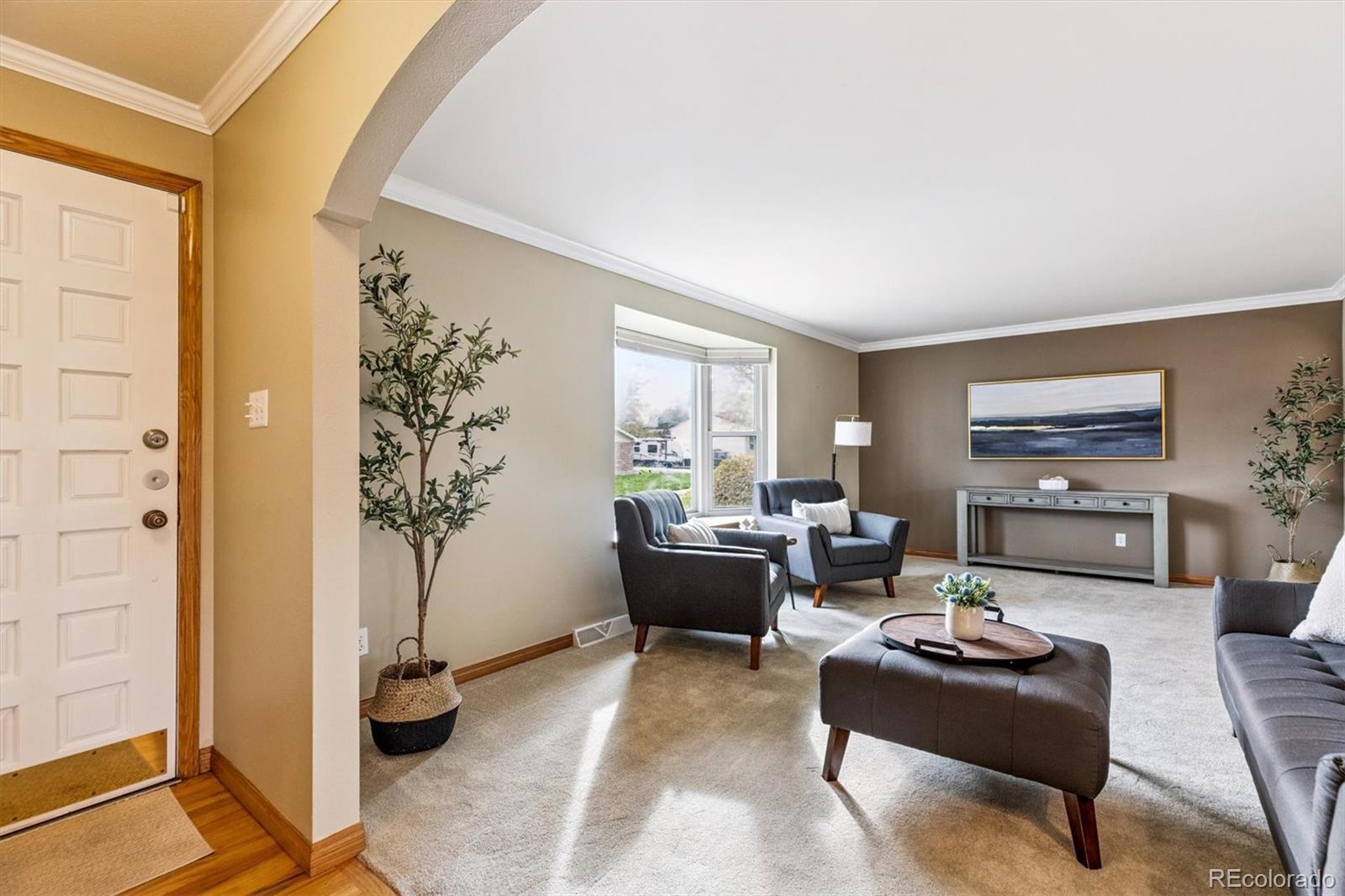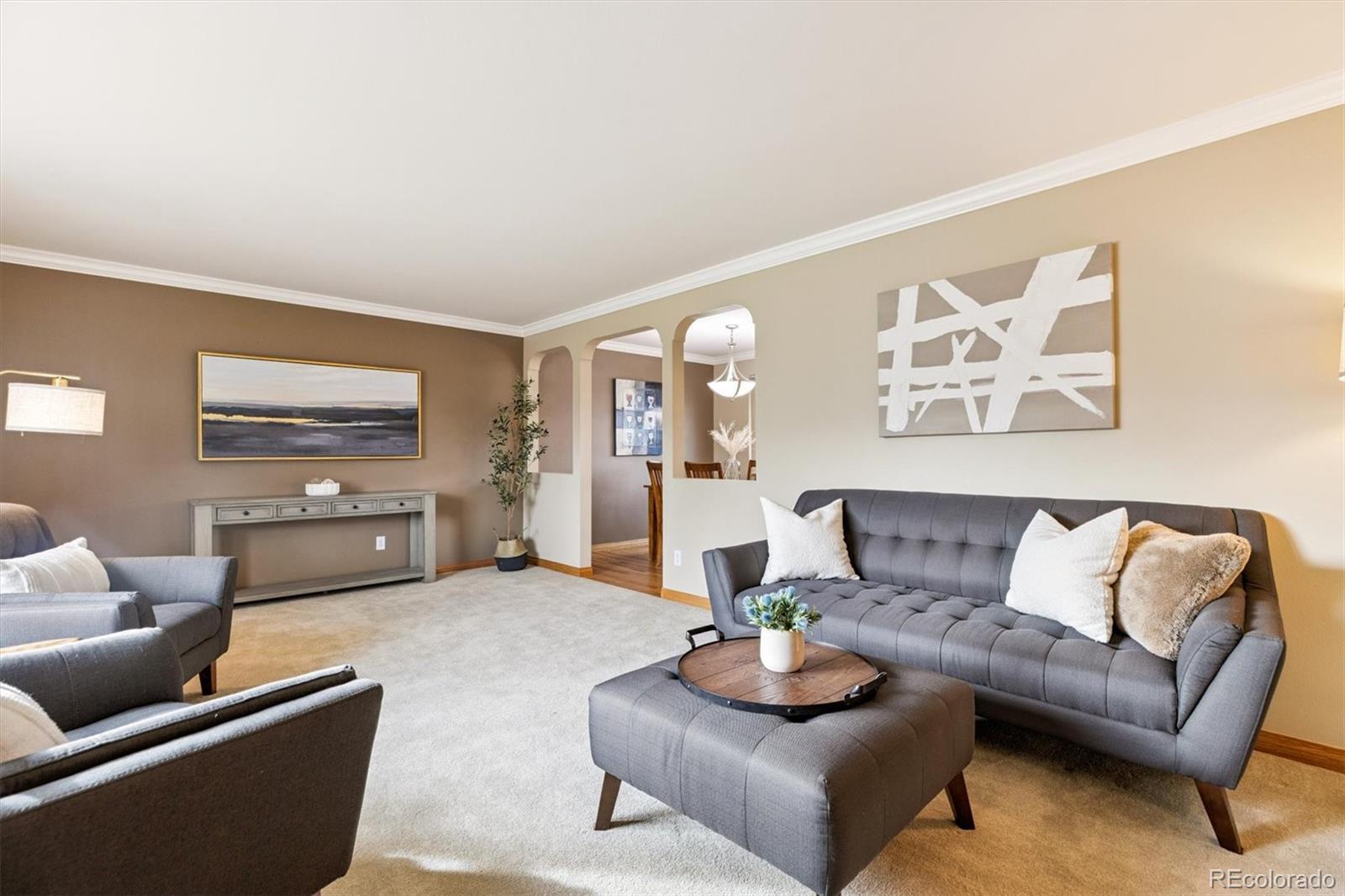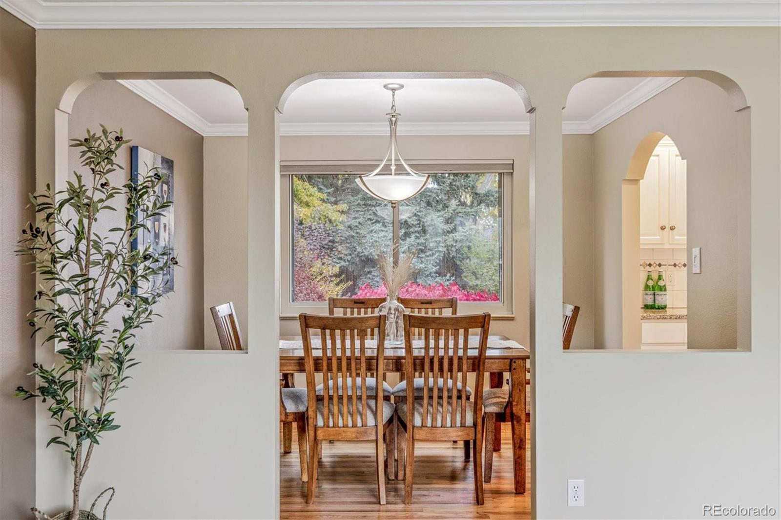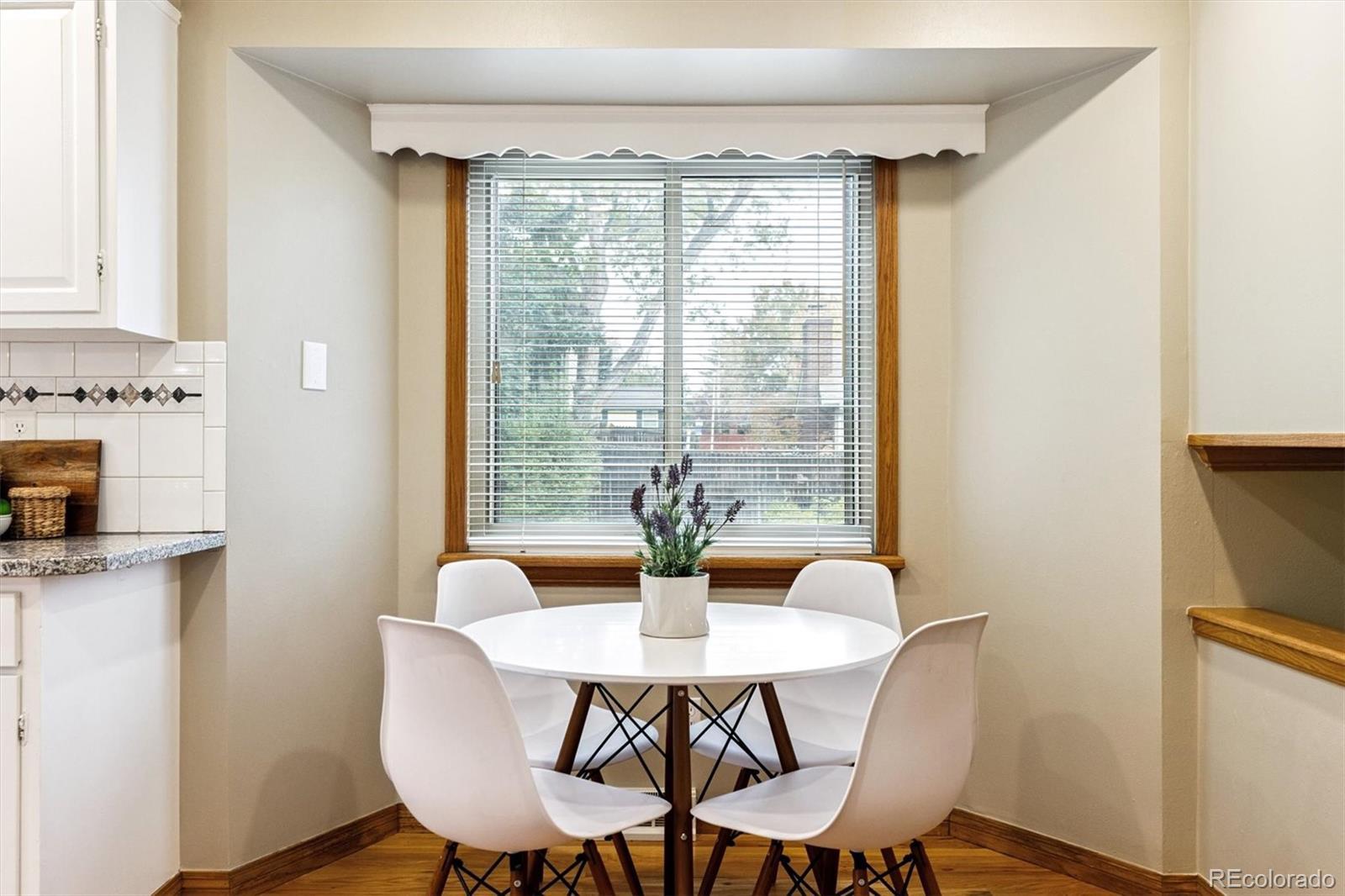 Welcome home! This 4 bedroom, 3 bathroom home is situated on a quiet street at the end of a cul-de-sac with arguably one of the most peaceful and serene back yards in the neighborhood. Upon stepping into the front door you'll instantly feel at home. The main floor welcomes you offering a generous living room with a bay window, a dedicated dining room with a pass through into the kitchen which features a dining nook, hardwood floors, an inwall oven and separate electric cooktop. The upper level of the home boasts 2 spacious freshly painted secondary bedrooms with ceilings fans, a full bathroom including a tub and a large dedicated primary retreat with an ensuite bath and walk in shower. The lower level is the cozy gathering place of this home as it exudes warmth with an original brick wall, a lovely updated gas log fireplace, wet bar with a sink, microwave & mini fridge - its the perfect space to cuddle up and root on your favorite team, watch a movie, read a book, or enjoy a cup of hot cocoa as you watch the fire dance. In the basement you'll find another large bedroom, dedicated laundry room and a flex space that can be used as a home office, craft room, gym or den. Just out the sliding glass door off the lower level you'll enjoy those stunning sunsets that only Colorado can deliver! Enjoy BBQ's under your new covered patio and lots of room to run and play. This beautiful home has been meticulously maintained and lovingly cared for - you'll find comfort and peace of mind buying a home with a new roof, new radon mitigation system, newer exterior paint (2023) and attention to detail. Numerous interior and exterior maintenance items that have been addressed such as new window well covers, fireplace servicing, new basement carpeting, newer interior paint, updated vinyl windows & more! Take a quick walk to Pinecrest Village Park or head on over to Bear Creek Trail to get your daily dose of Vitamin D! Close to shopping, dining, golf, Mullen and easy access to 285.