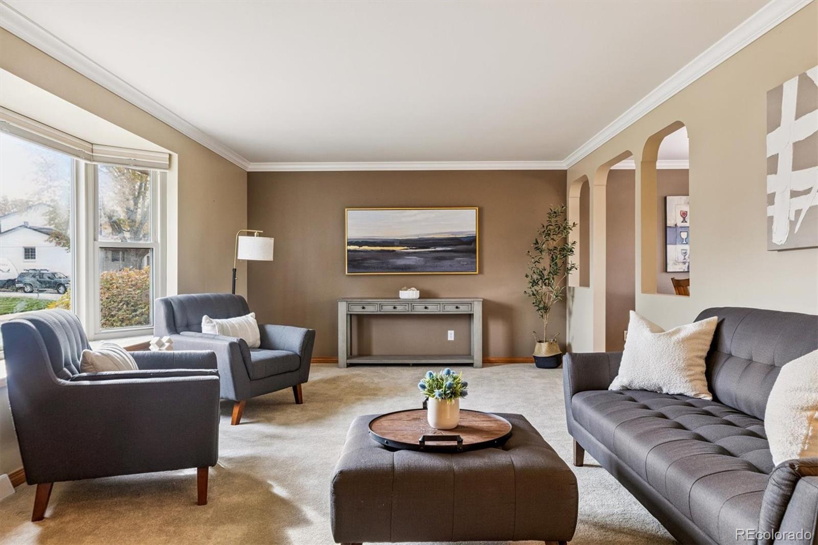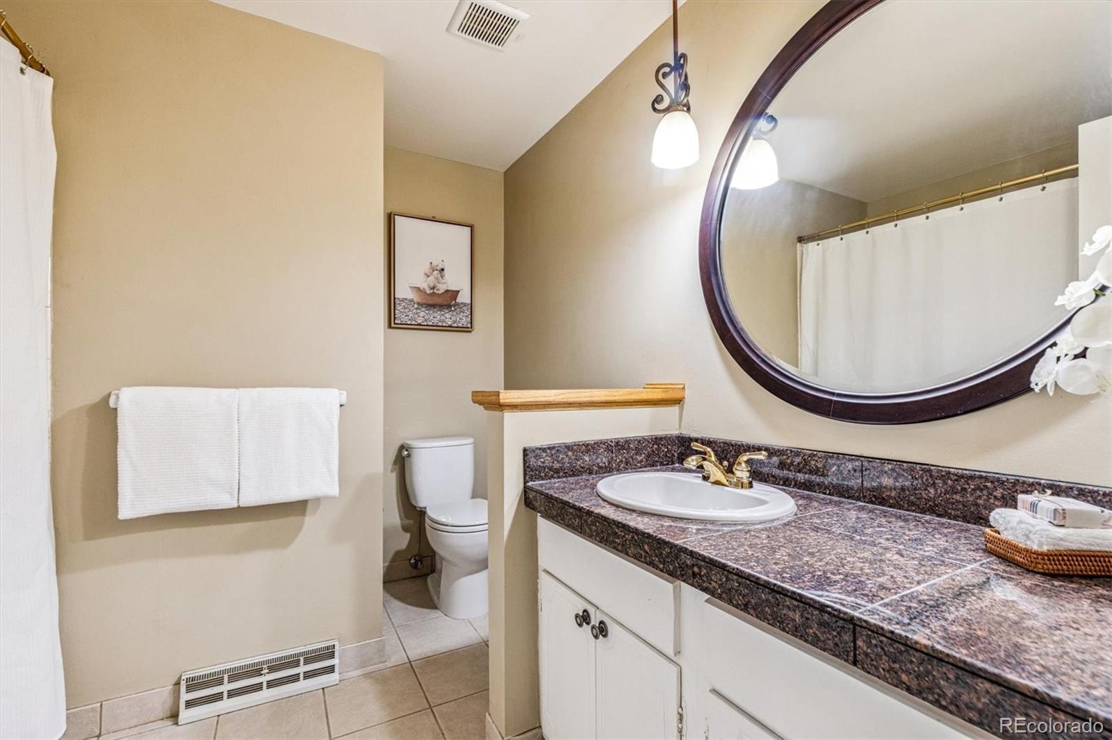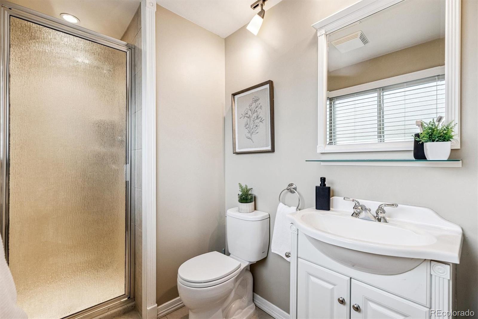 Welcome home! This 4 bedroom, 3 bathroom home is situated on a quiet street at the end of a cul-de-sac with arguably one of the most peaceful and serene back yards in the neighborhood. Upon stepping into the front door you'll instantly feel at home. The main floor welcomes you offering a generous living room with a bay window, a dedicated dining room with a pass through into the kitchen which features a dining nook, hardwood floors, an inwall oven and separate electric cooktop. The upper level of the home boasts 2 spacious freshly painted secondary bedrooms with ceilings fans, a full bathroom including a tub and a large dedicated primary retreat with an ensuite bath and walk in shower. The lower level is the cozy gathering place of this home as it exudes warmth with an original brick wall, a lovely updated gas log fireplace, wet bar with a sink, microwave & mini fridge - its the perfect space to cuddle up and root on your favorite team, watch a movie, read a book, or enjoy a cup of hot cocoa as you watch the fire dance. In the basement you'll find another large bedroom, dedicated laundry room and a flex space that can be used as a home office, craft room, gym or den. Just out the sliding glass door off the lower level you'll enjoy those stunning sunsets that only Colorado can deliver! Enjoy BBQ's under your new covered patio and lots of room to run and play. This beautiful home has been meticulously maintained and lovingly cared for - you'll find comfort and peace of mind buying a home with a new roof, new radon mitigation system, newer exterior paint (2023) and attention to detail. Numerous interior and exterior maintenance items that have been addressed such as new window well covers, fireplace servicing, new basement carpeting, newer interior paint, updated vinyl windows & more! Take a quick walk to Pinecrest Village Park or head on over to Bear Creek Trail to get your daily dose of Vitamin D! Close to shopping, dining, golf, Mullen and easy access to 285.