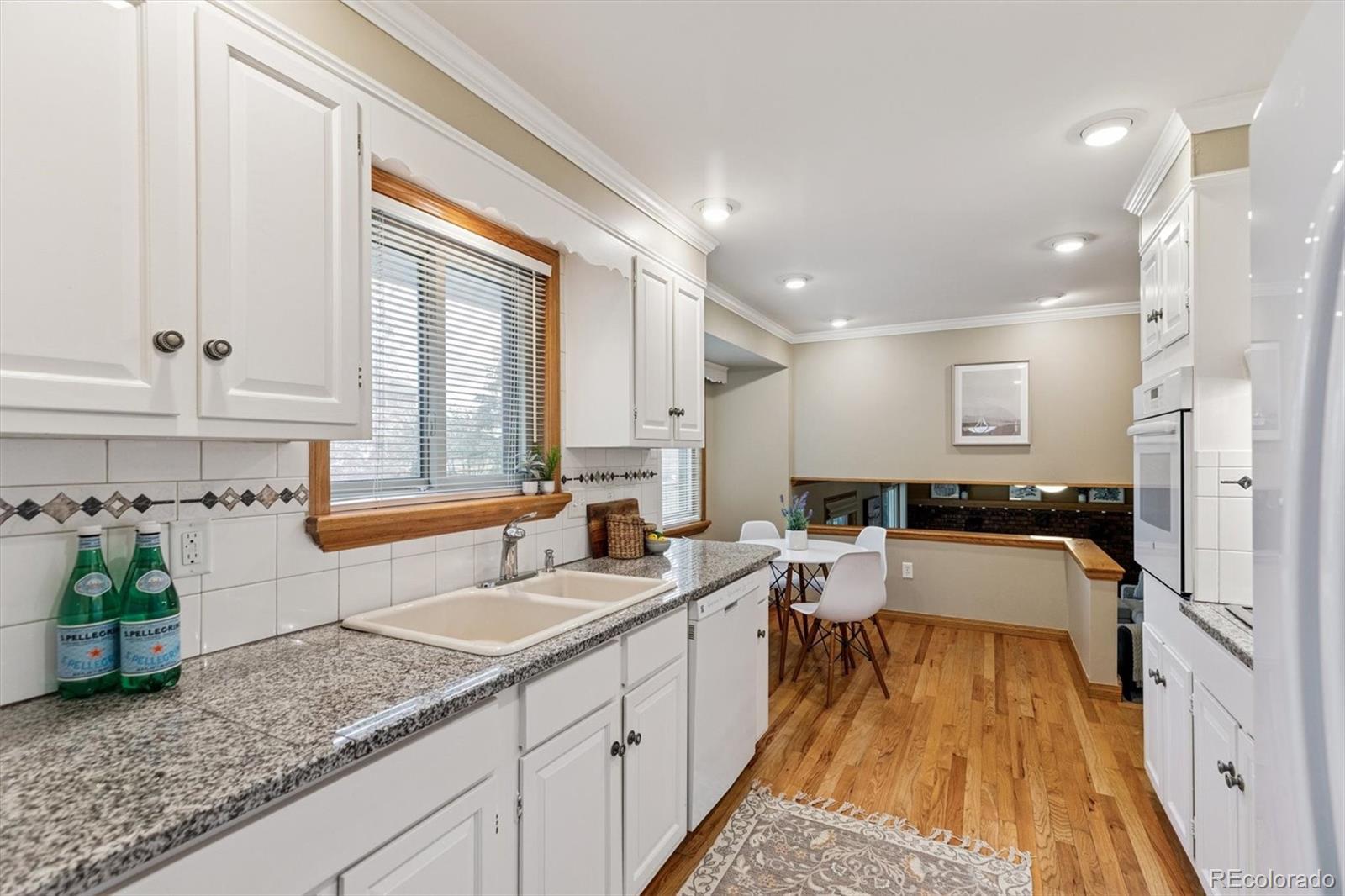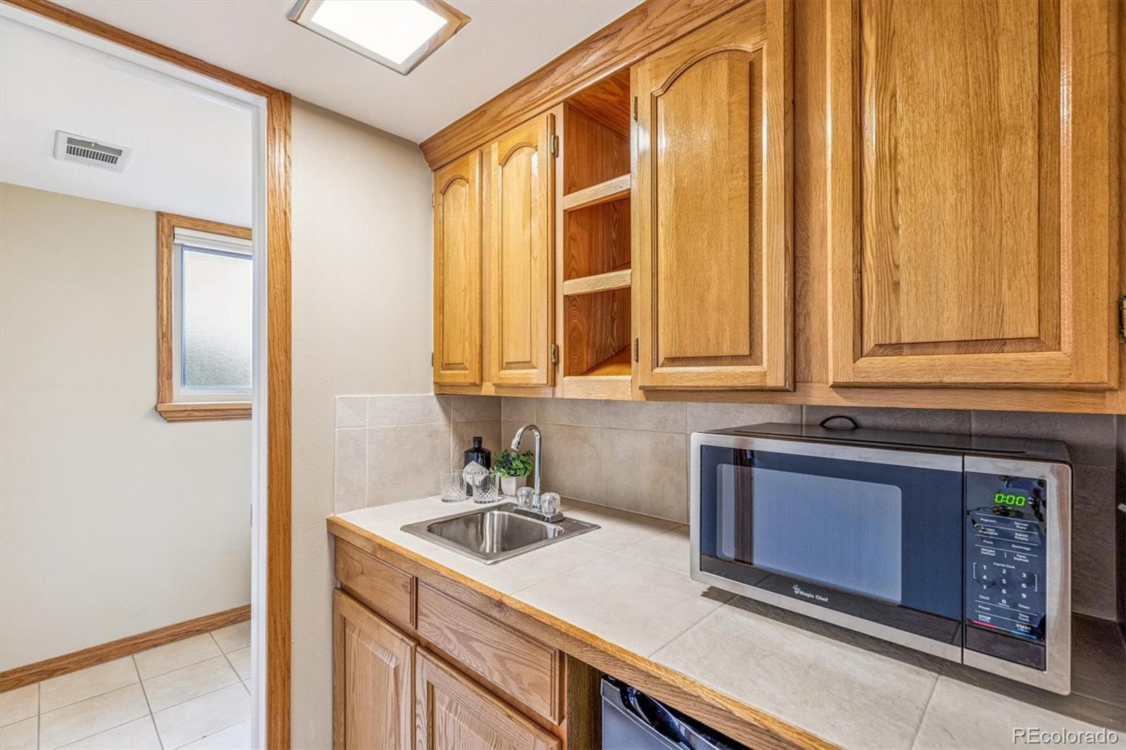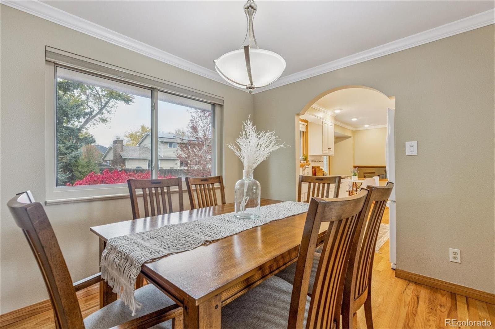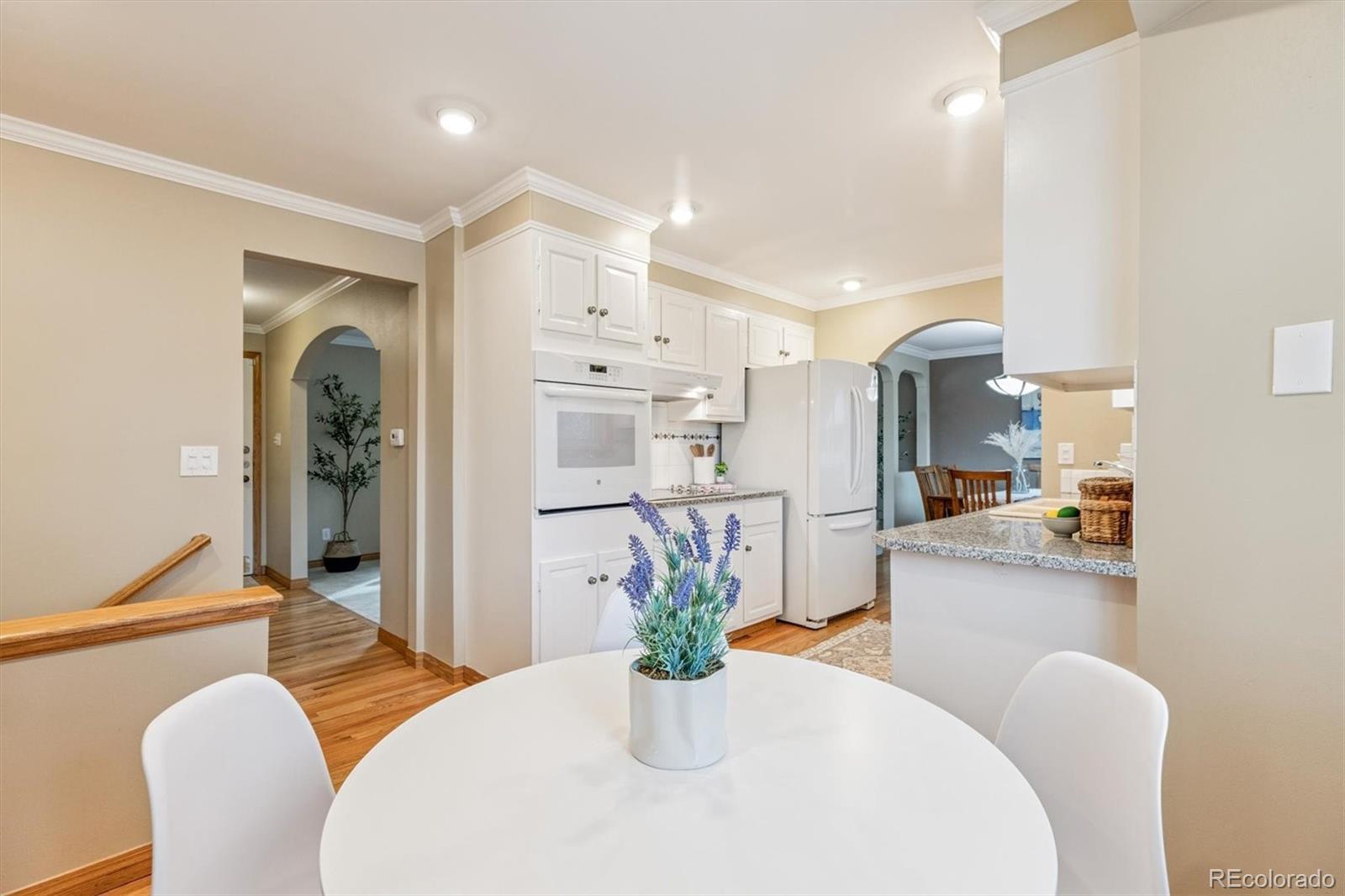 Welcome home! This 4 bedroom, 3 bathroom home is situated on a quiet street at the end of a cul-de-sac with arguably one of the most peaceful and serene back yards in the neighborhood. Upon stepping into the front door you'll instantly feel at home. The main floor welcomes you offering a generous living room with a bay window, a dedicated dining room with a pass through into the kitchen which features a dining nook, hardwood floors, an inwall oven and separate electric cooktop. The upper level of the home boasts 2 spacious freshly painted secondary bedrooms with ceilings fans, a full bathroom including a tub and a large dedicated primary retreat with an ensuite bath and walk in shower. The lower level is the cozy gathering place of this home as it exudes warmth with an original brick wall, a lovely updated gas log fireplace, wet bar with a sink, microwave & mini fridge - its the perfect space to cuddle up and root on your favorite team, watch a movie, read a book, or enjoy a cup of hot cocoa as you watch the fire dance. In the basement you'll find another large bedroom, dedicated laundry room and a flex space that can be used as a home office, craft room, gym or den. Just out the sliding glass door off the lower level you'll enjoy those stunning sunsets that only Colorado can deliver! Enjoy BBQ's under your new covered patio and lots of room to run and play. This beautiful home has been meticulously maintained and lovingly cared for - you'll find comfort and peace of mind buying a home with a new roof, new radon mitigation system, newer exterior paint (2023) and attention to detail. Numerous interior and exterior maintenance items that have been addressed such as new window well covers, fireplace servicing, new basement carpeting, newer interior paint, updated vinyl windows & more! Take a quick walk to Pinecrest Village Park or head on over to Bear Creek Trail to get your daily dose of Vitamin D! Close to shopping, dining, golf, Mullen and easy access to 285.