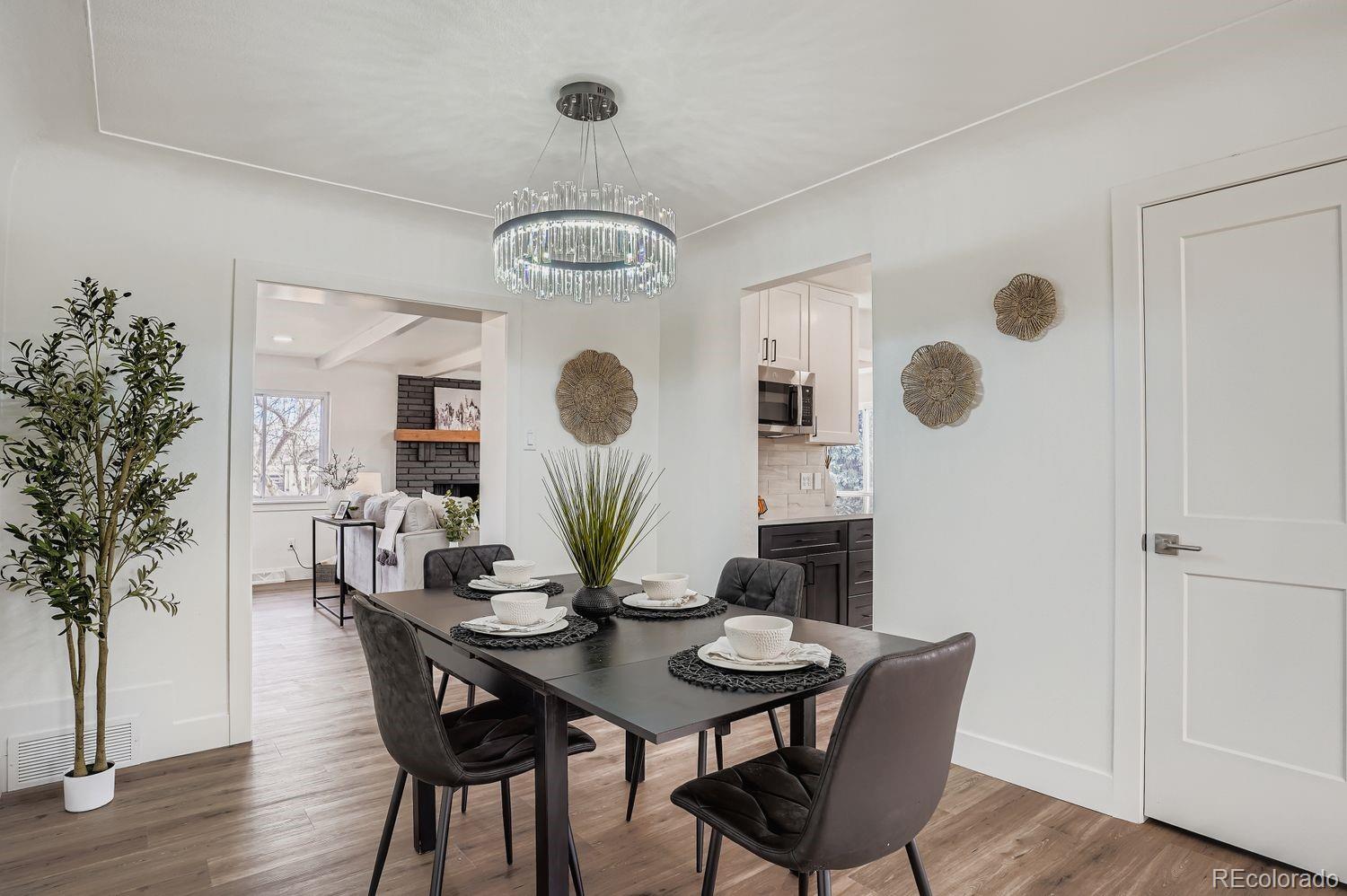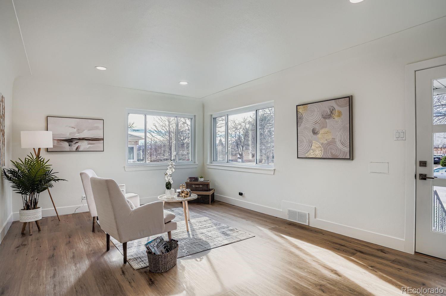 Newly remodeled from top to bottom, this exceptional five-bedroom residence offers the perfect blend of luxury, versatility, and everyday functionality. Designed to fully function as a duplex, the home presents a rare opportunity for multi-generational living, rental potential, or flexible use. Step inside to a bright and airy living room that flows seamlessly into the formal dining area, creating an inviting space for both daily living and entertaining. The beautifully appointed kitchen leaves no detail untouched, featuring quartz countertops, stainless steel appliances, and abundant cabinetry, all open to the expansive family room where a classic wood-burning brick fireplace serves as a warm and timeless focal point. The primary suite is a true retreat, complete with two walk-in closets and a luxurious, spa-inspired bathroom. The garden- level basement expands the living space with a generous flex area, a fully equipped kitchenette (excluding an oven/stove), three additional bedrooms, two bathrooms, and a large laundry room with convenient exterior access. Ideally located within walking distance to Sloan’s Lake and just minutes from downtown Denver, this remarkable home offers the best of city living with comfort, style, and endless possibilities.