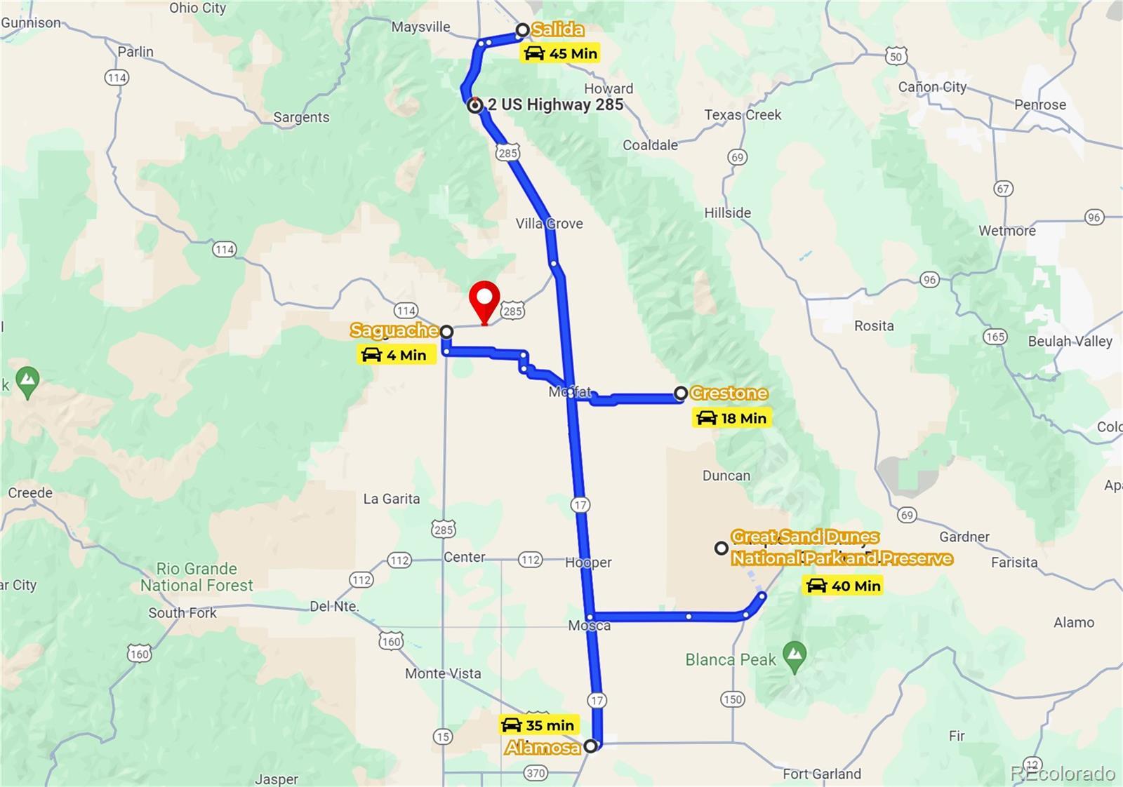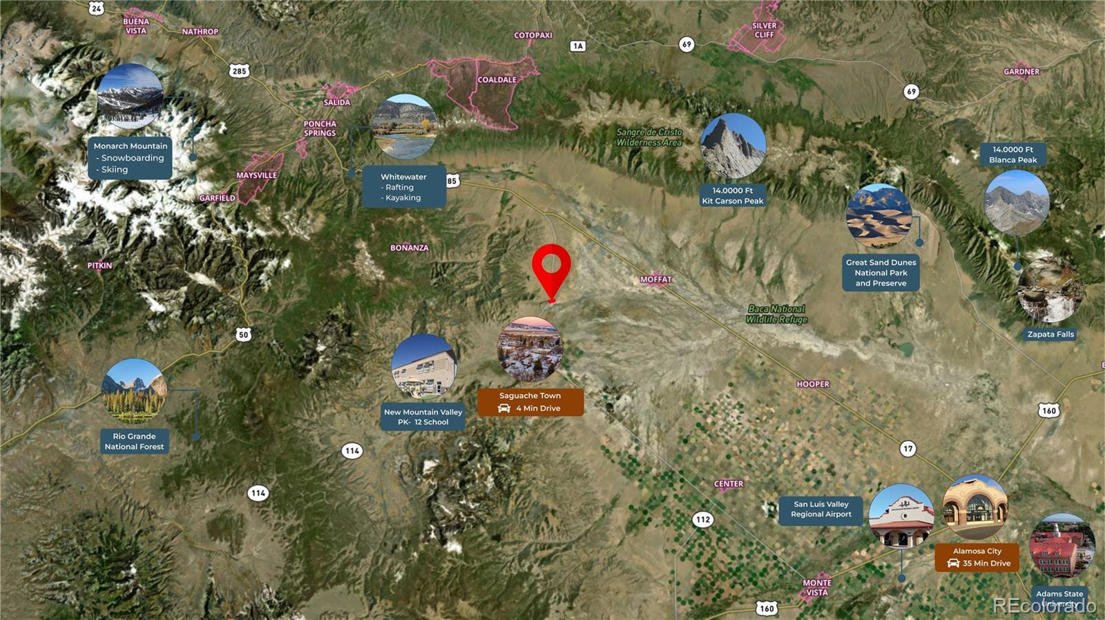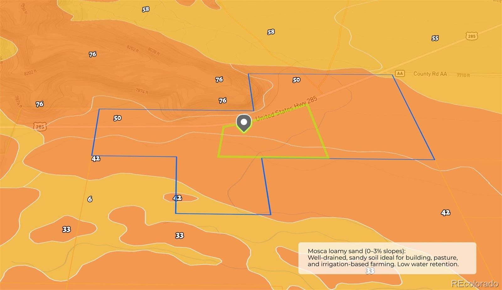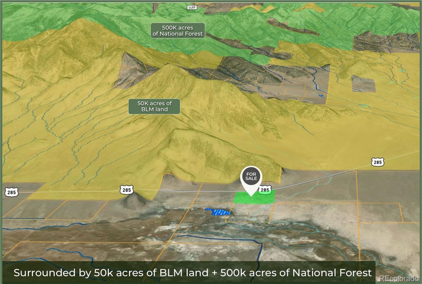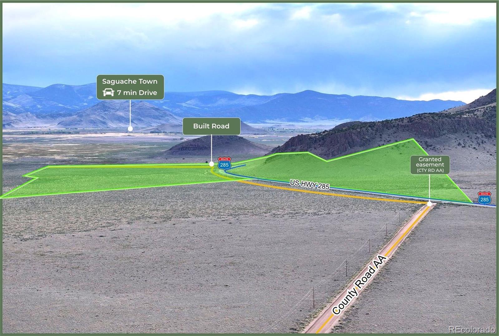 Opportunity to acquire over 119 acres across three contiguous tracts along Highway 285, just 4 minutes outside Saguache, Colorado. The property spans both sides of the highway and borders 50,000+ acres of BLM and National Forest land to the north and east, offering protected open space, long-term privacy, and direct access to public land. • Tract 3: 35.01 acres south of Highway 285, accessed via a legal easement and approved driveway through County Road AA • Tract 6: 35.01 acres north of Highway 285, featuring a distinct hilltop with valley and mountain views, accessed directly from Highway 285 • Tract 7: 48.97 acres north of Highway 285, east of Tract 6, also accessible directly from Highway 285 and bordering BLM land Located in GMU 681, a recognized elk migration corridor, the property is well suited as a basecamp for outdoor recreation, hunting, and exploration. The land also offers potential for short-term rental or AirBnB use, particularly for hunters and outdoor enthusiasts. The property includes a private path leading north into public land, a recorded easement via County Road AA, and a completed survey. A water permit allowing one acre of irrigation is included. No HOA. No covenants. No building codes. Under Colorado’s State Well Exemption for unincorporated areas, a qualifying well may supply up to three households and support one acre of flood irrigation, allowing flexibility for residential use, small-scale agriculture, or multi-home planning, subject to state and county regulations. Conveniently located 4 minutes to Saguache, 30 minutes to Salida, 50 minutes to Great Sand Dunes National Park, and 1 hour to Monarch Ski Area. Comparable 40-acre parcels along Highway 285 near Salida and Buena Vista have recently sold in the $300,000–$500,000 range. Properties offering highway access, elevation, and adjacency to public land are limited within the San Luis Valley.