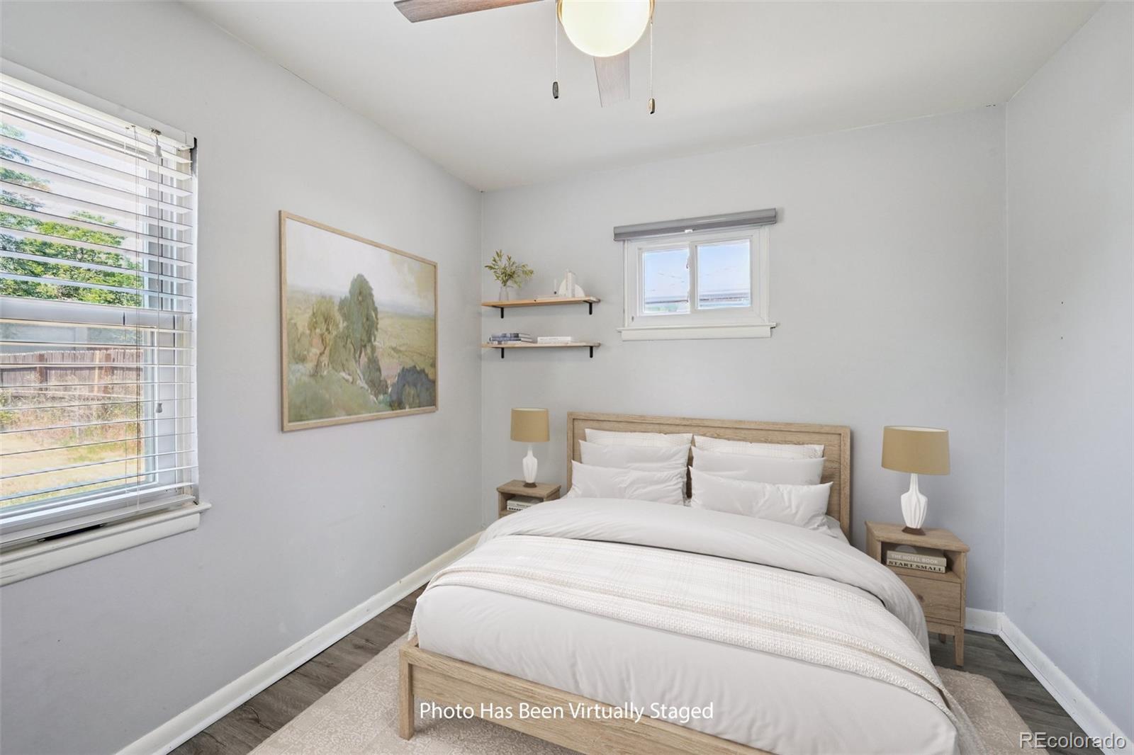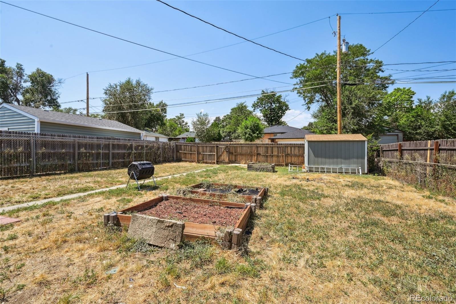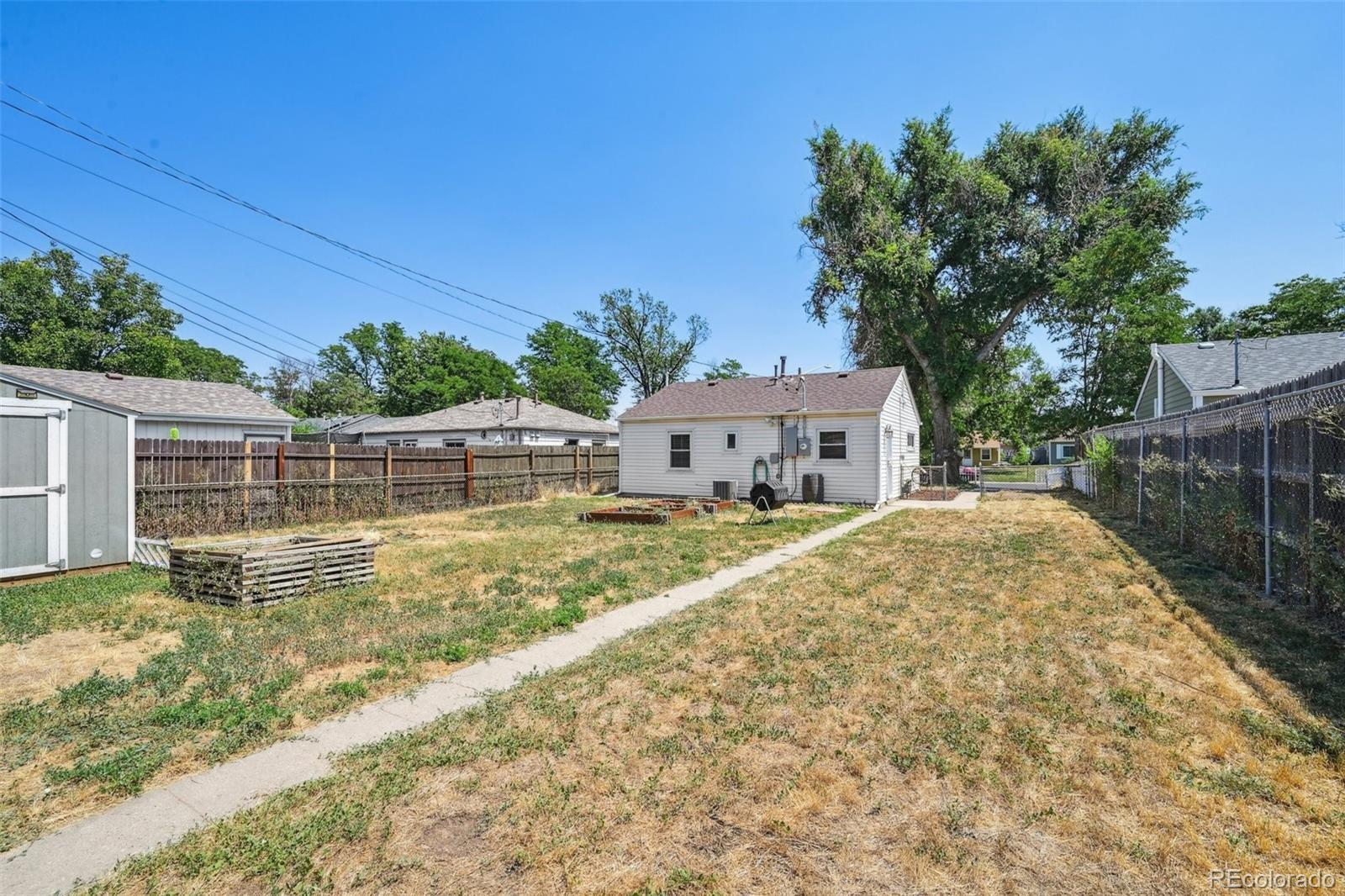 NEW PRICE! Welcome to this super charming, modernly remodeled 2-bedroom/1-bathroom home offering all main-level living with no stairs! Though compact, the thoughtfully designed floor plan makes every square inch useable, with creative storage solutions throughout. The interior features luxury vinyl plank flooring in the main spaces, brand-new bedroom flooring, and a freshly updated bathroom with new vanity, flooring, storage cabinet, and shower surround. The kitchen boasts solid wood cabinets, 42-inch uppers, a modern backsplash, and stainless steel appliances—a perfect blend of style and function. Additional features and upgrades include a radon mitigation system, new main electric panel (2023), EV car charger, washer & dryer hook-ups and large backyard storage shed. The huge fully fenced yard is a blank slate ready for your vision, with alley access and off-street parking via the front driveway pad. A brand-new park is being built just 1.5 blocks away, and you’ll love the easy access to Lowry and Central Park for shopping, dining, and amenities. This home is move-in ready and brimming with charm!