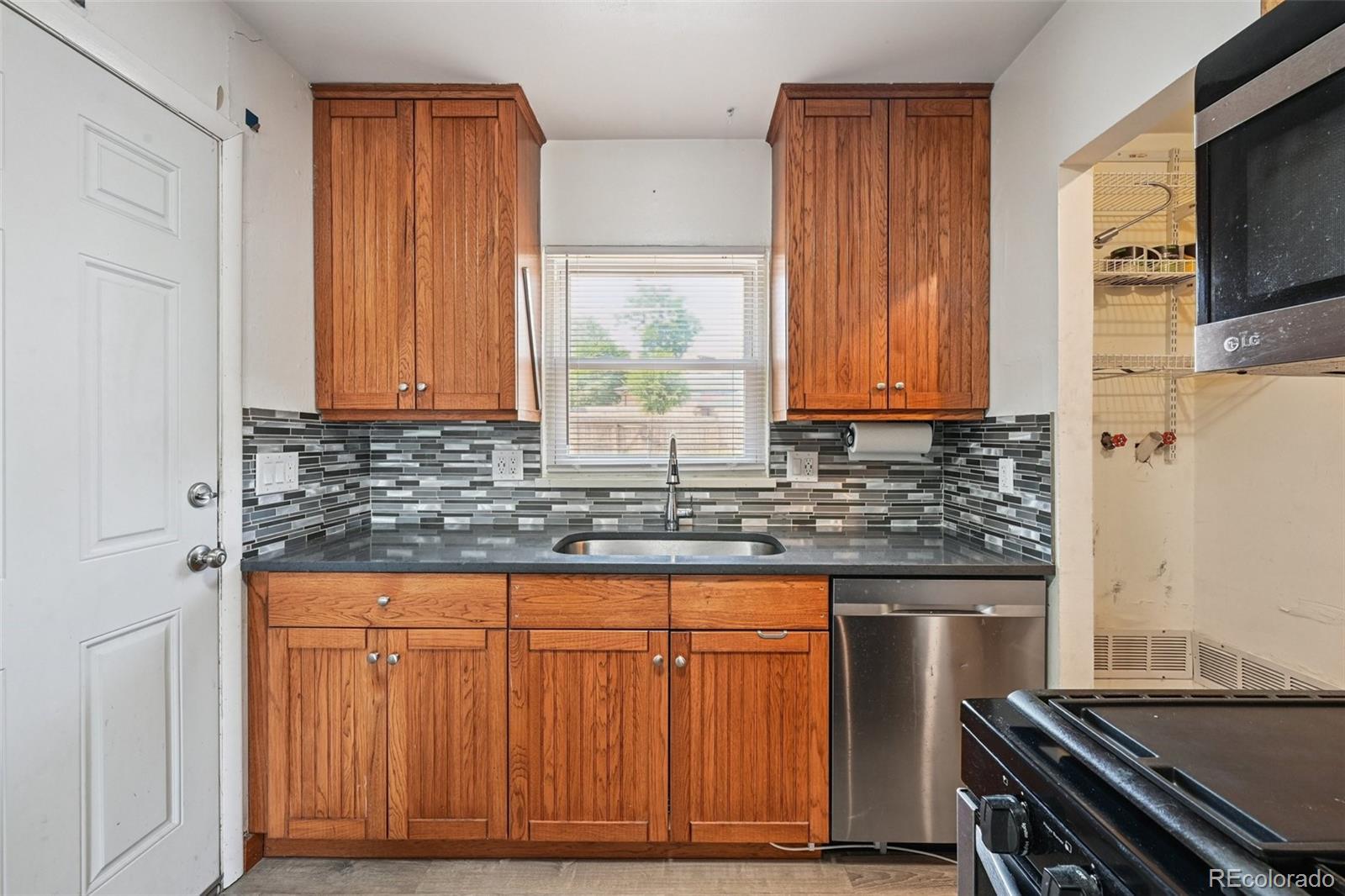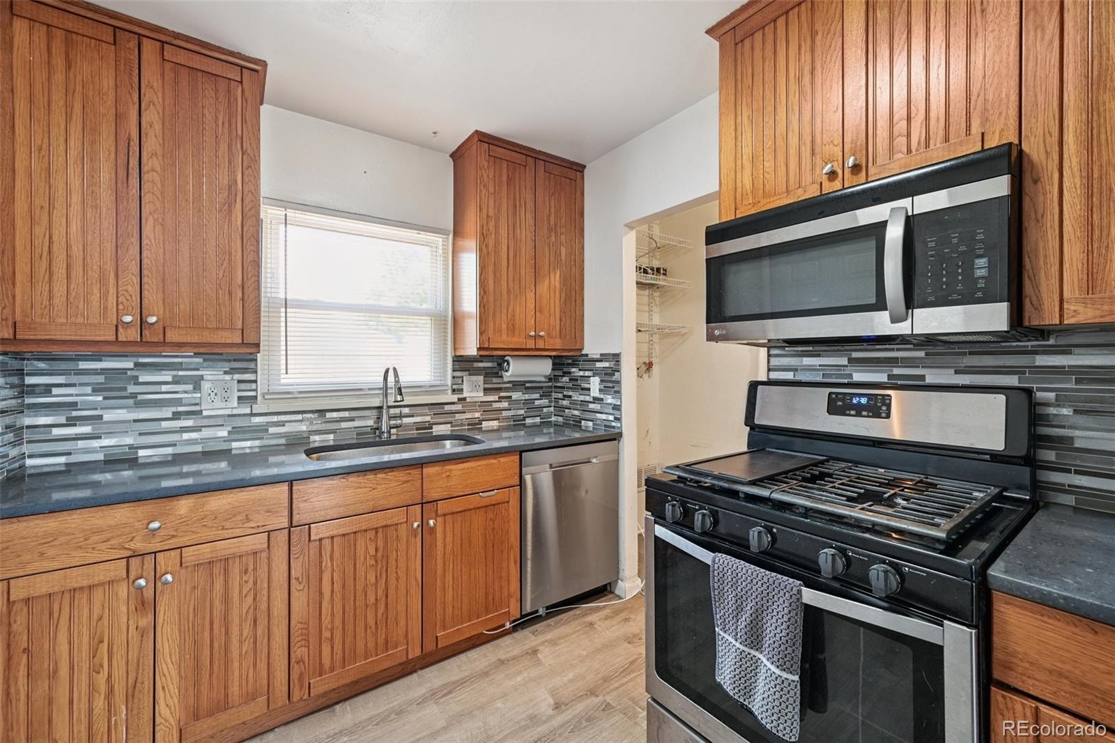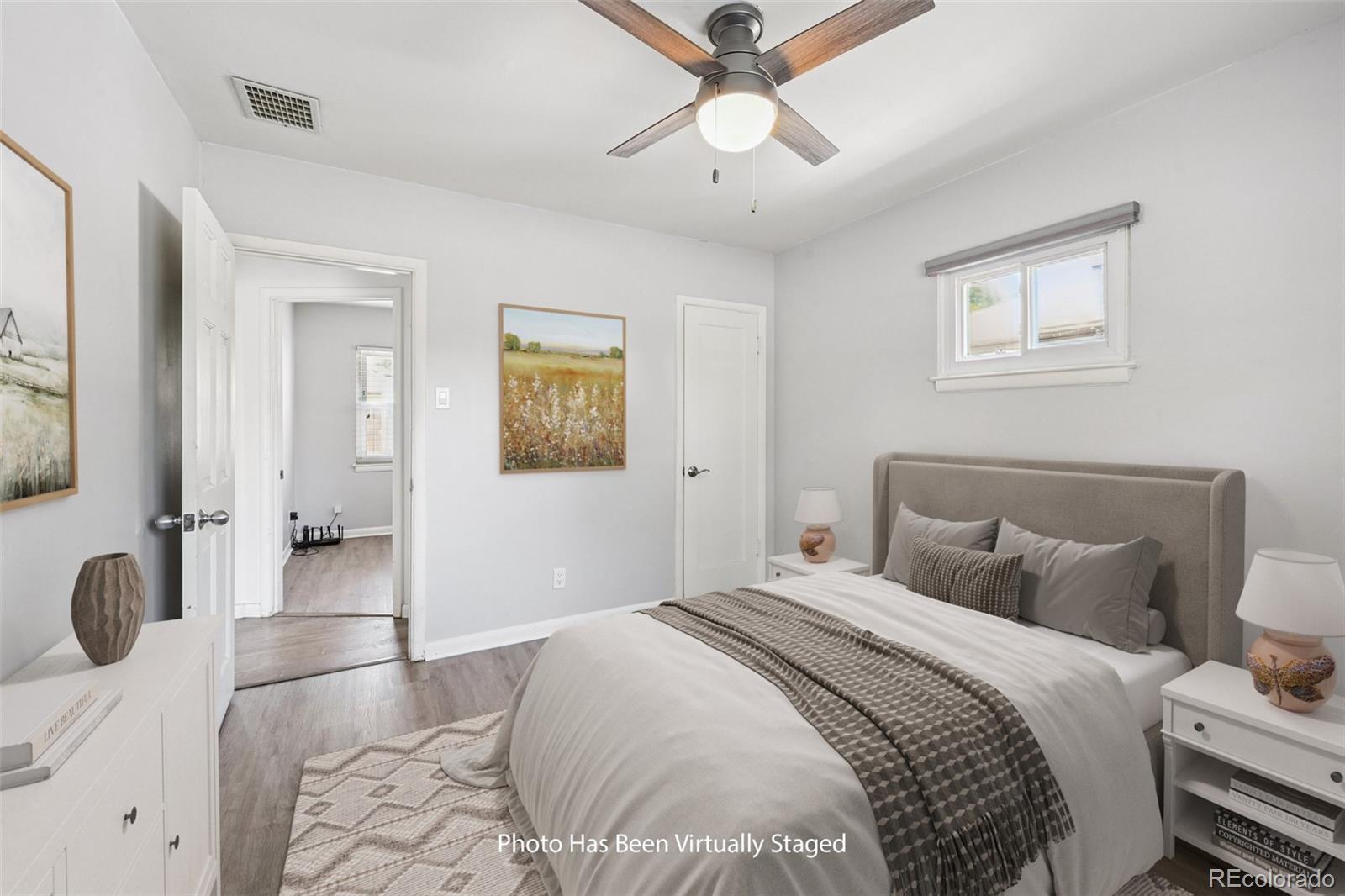NEW PRICE! Welcome to this super charming, modernly remodeled 2-bedroom/1-bathroom home offering all main-level living with no stairs! Though compact, the thoughtfully designed floor plan makes every square inch useable, with creative storage solutions throughout. The interior features luxury vinyl plank flooring in the main spaces, brand-new bedroom flooring, and a freshly updated bathroom with new vanity, flooring, storage cabinet, and shower surround. The kitchen boasts solid wood cabinets, 42-inch uppers, a modern backsplash, and stainless steel appliances—a perfect blend of style and function. Additional features and upgrades include a radon mitigation system, new main electric panel (2023), EV car charger, washer & dryer hook-ups and large backyard storage shed. The huge fully fenced yard is a blank slate ready for your vision, with alley access and off-street parking via the front driveway pad. A brand-new park is being built just 1.5 blocks away, and you’ll love the easy access to Lowry and Central Park for shopping, dining, and amenities. This home is move-in ready and brimming with charm!