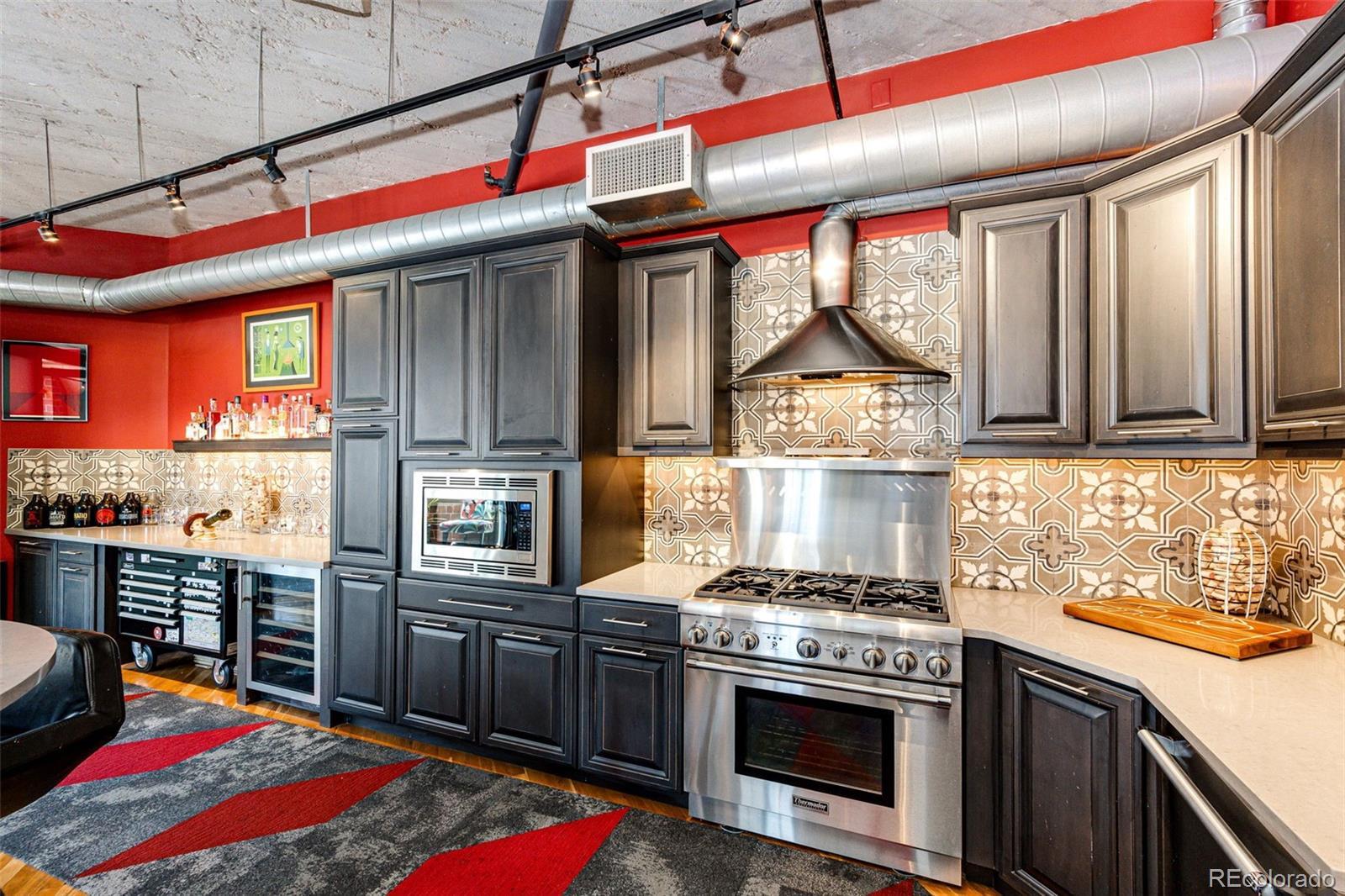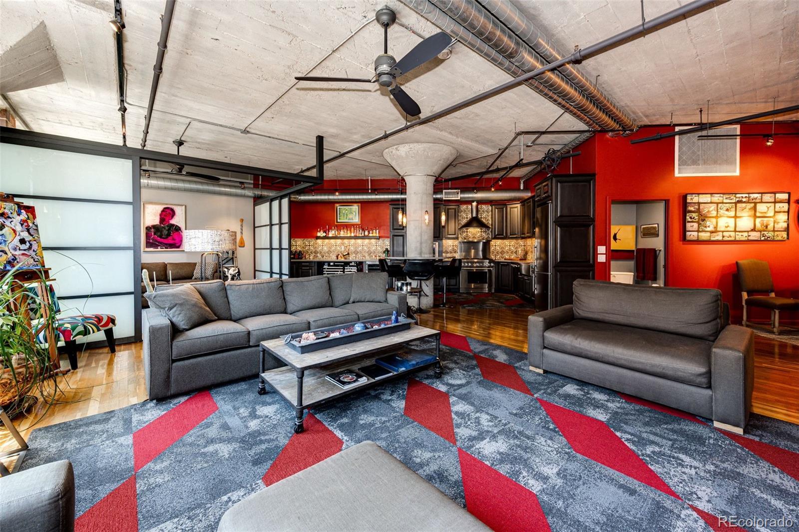 Welcome to exceptional city living—Denver style! This beautifully upgraded loft offers a perfect blend of modern luxury and industrial charm. Upon entry, you'll be struck by the sophisticated upgrades and expansive open layout. The Seller is offering this unit as furnished, if you want. The kitchen has been completely redesigned and features high-end Thermador appliances, a 6-burner cook-top, wine chiller, upgraded cabinetry, and abundant solid surface countertops—perfect for cooking and entertaining. The open-concept design seamlessly connects the kitchen, great room, and dining area, creating a bright and airy living space. The primary bedroom has been thoughtfully enclosed with a wall and door for added privacy, and boasts a spacious walk-in closet outfitted with an Elfa organization system, as well as a dedicated linen closet in the en-suite bath. The second bedroom area can be easily closed off for guests or left open to expand your living space. True to loft style, this home features soaring 11' concrete ceilings, exposed duct work, and stylish finishes throughout. Enjoy access to a rooftop community space for summer gatherings, one deeded underground parking space, and a convenient 4.6' x 7.8' storage unit directly across from the garage spot. There is also a designated area for motorcycles and bicycles. Located just 1.5 blocks from Coors Field and within walking distance to McGregor Square, DCPA, Union Station, Ball Arena, the Convention Center, and countless dining options—from casual to upscale—this location is a true urban gem. Furniture is optional—the unit can be sold fully furnished or delivered vacant, depending on the buyer’s preference.