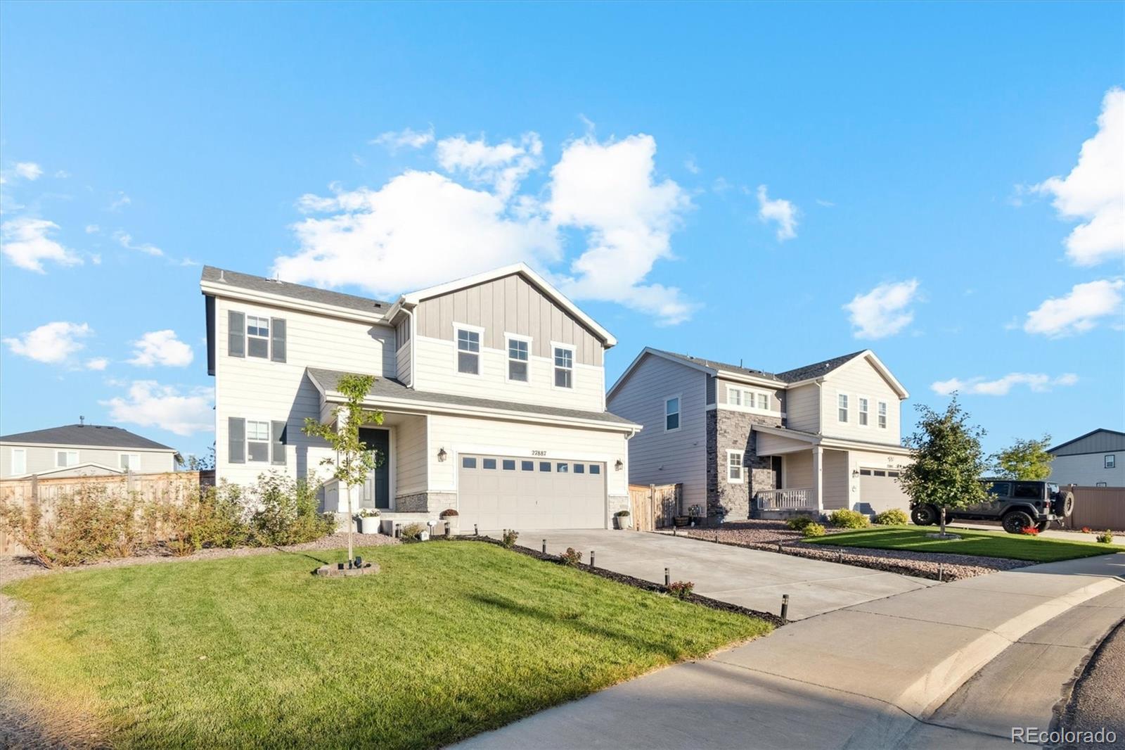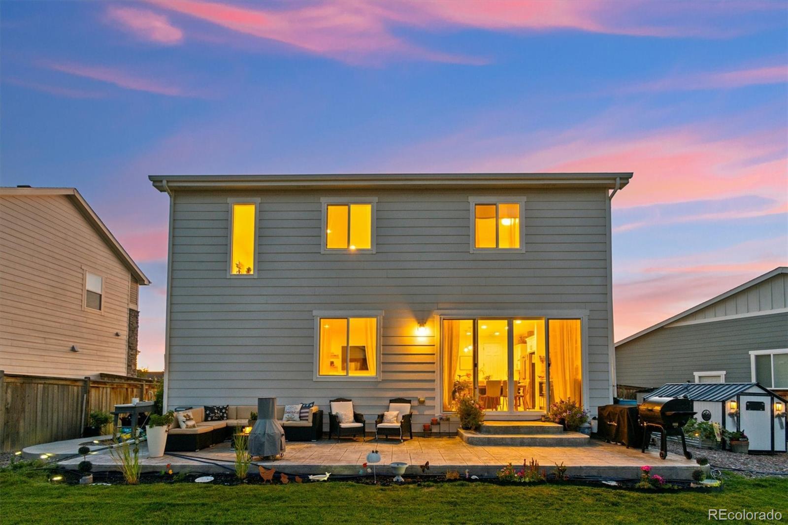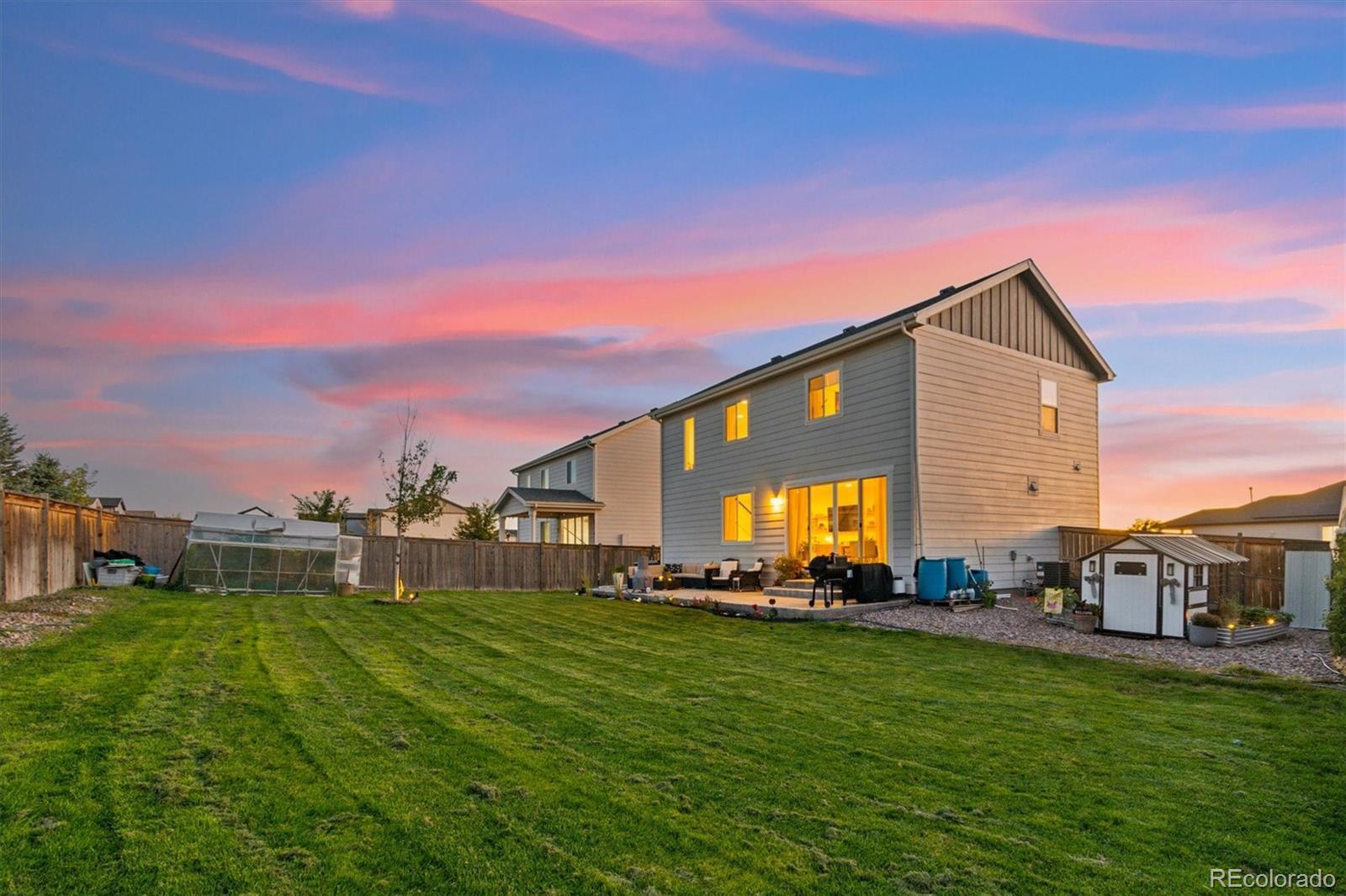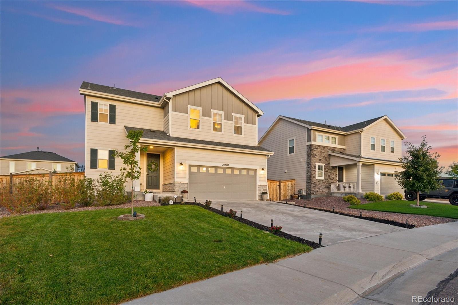 Welcome to this beautifully maintained 3-bedroom, 3-bath home nestled in the serene and sought-after community of Sky Ranch! Featuring a spacious layout and thoughtful upgrades throughout, this home offers comfort, functionality, and charm. Enjoy cooking and entertaining in the upgraded dining area with added cabinetry and extra counter space—perfect for gatherings. The kitchen and bath cabinets have been freshly painted, with updated hardware throughout, giving a modern, refreshed feel. Accent walls in the entryway and primary bathroom add a stylish touch, while a new shower head elevates the en-suite experience. With a mountain view from the primary bedroom, the location can't be beat. Upstairs, the versatile loft features a custom built-in entertainment system, ideal for movie nights or a cozy reading nook. Each bedroom boasts updated light fixtures, adding warmth and character. Outside, the large backyard is a gardener’s dream with raised garden beds, a greenhouse, and a chicken coop—all included! The stamped concrete patio (completed 2 years ago) and recently finished sidewalk path (June 2025) create an inviting outdoor space for relaxation and entertaining. Additional features include a 2-car attached garage, a gas control valve on the water heater replaced 2 years ago, and numerous stylish upgrades throughout. Located in the peaceful Sky Ranch community, you’ll love the nearby parks, taco truck, and charter school right across the street, with a brand-new college preparatory academy currently under construction—offering excellent educational opportunities. Don’t miss the chance to make this beautifully updated home yours!
