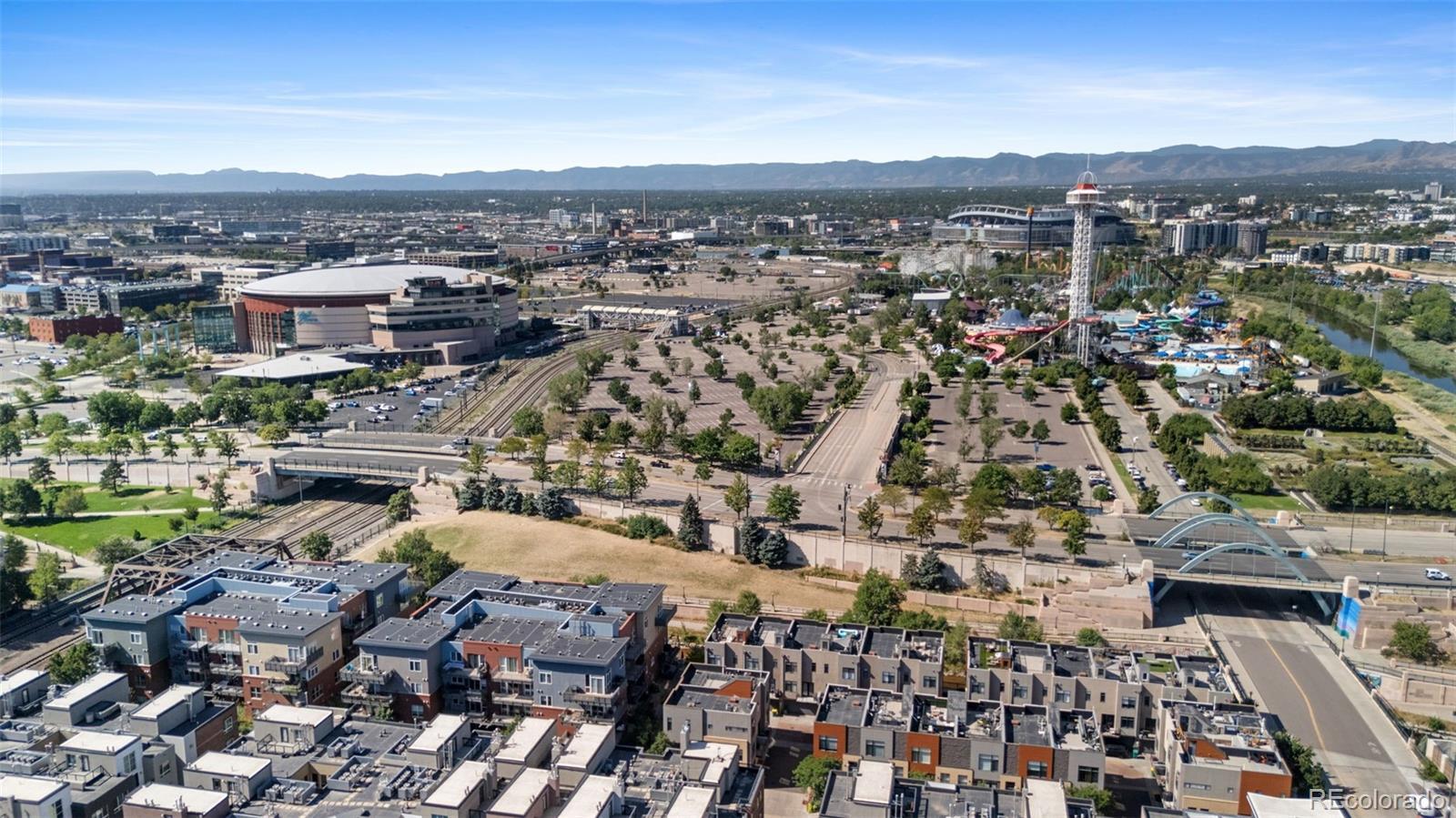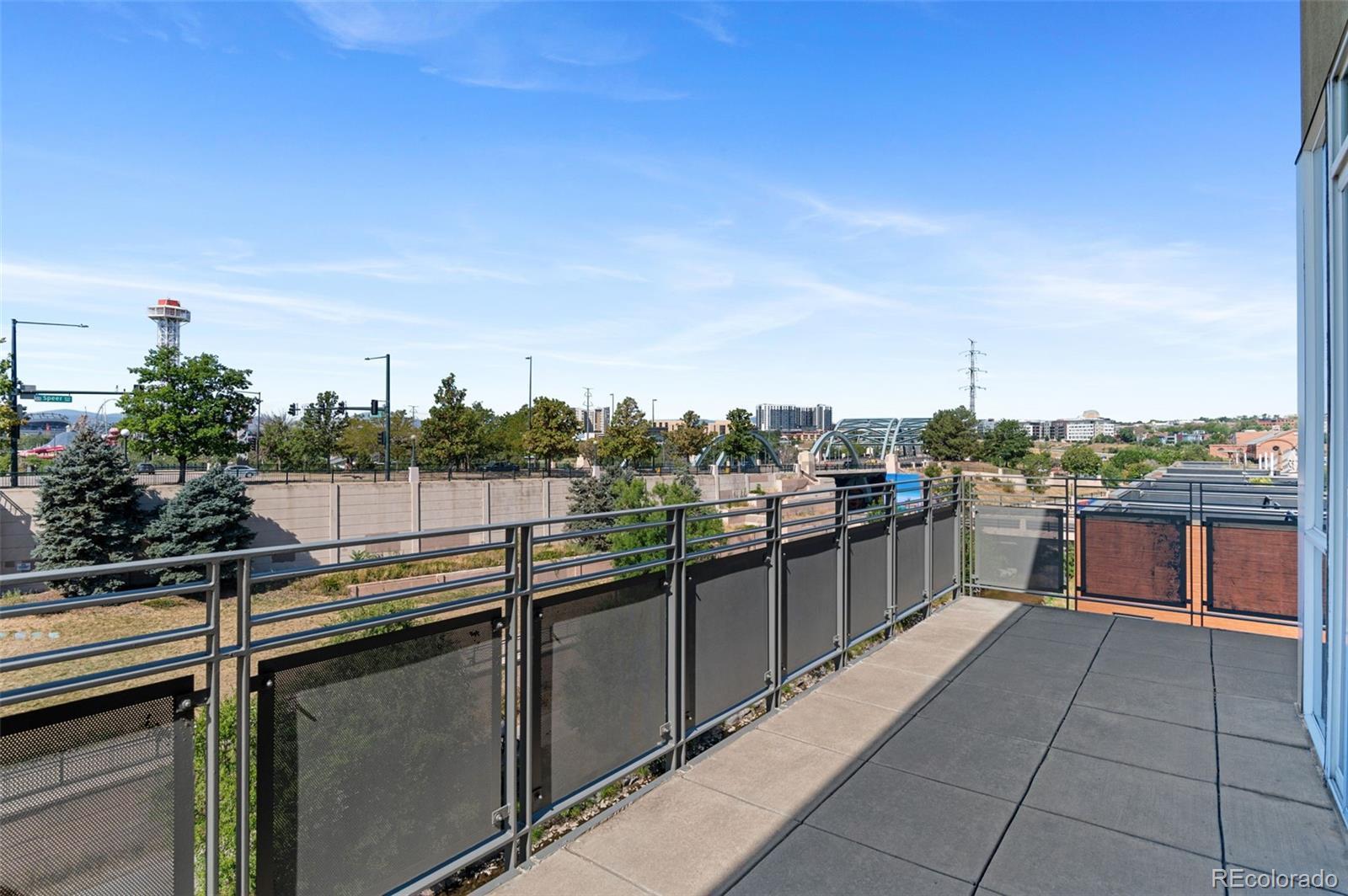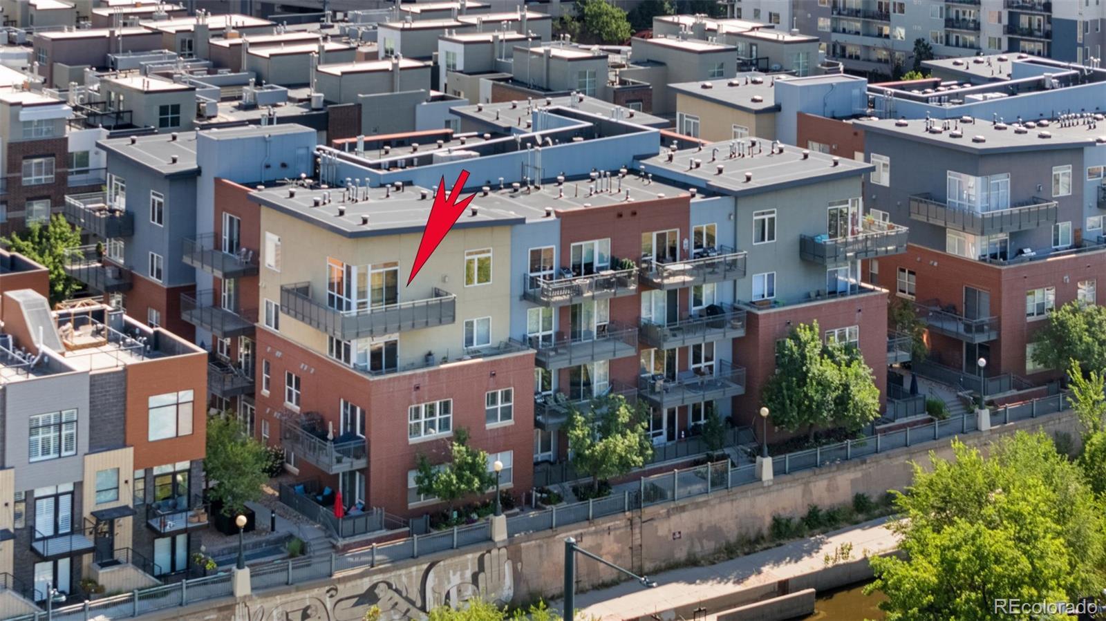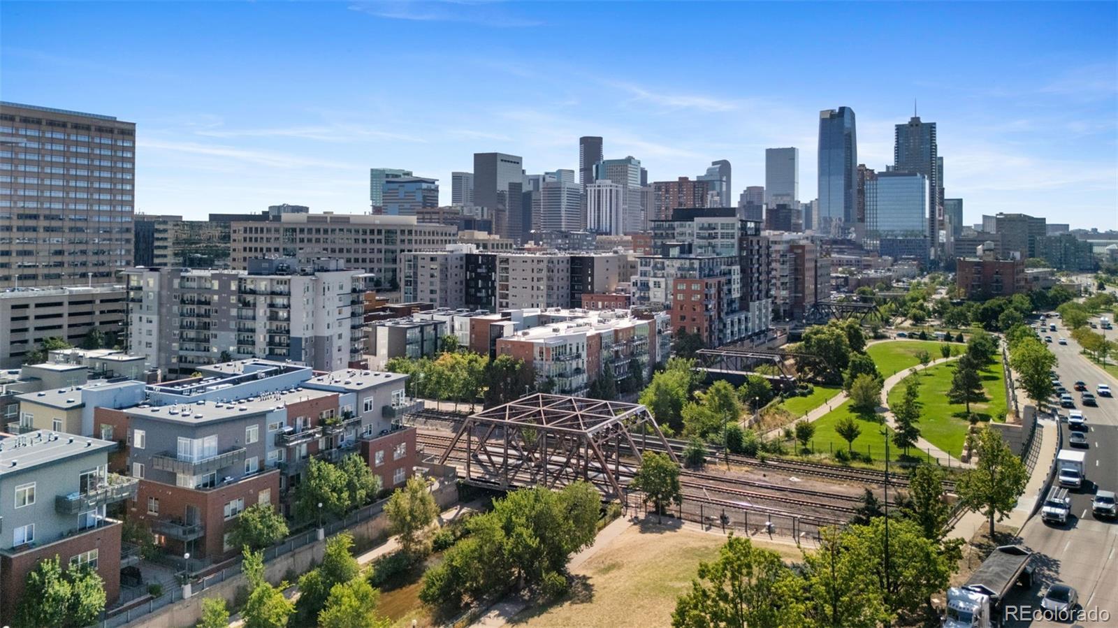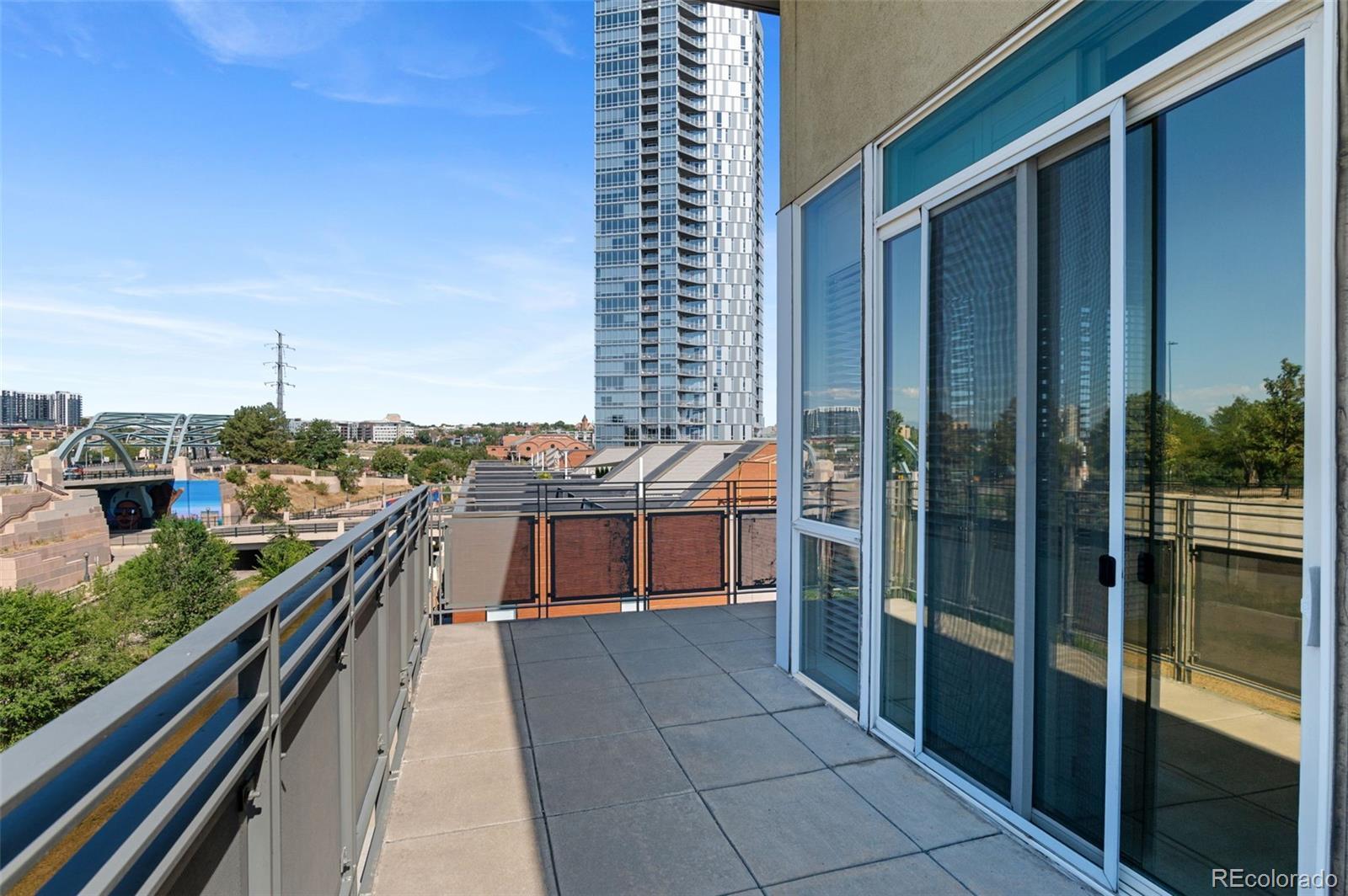 Outstanding penthouse with 2 garage parking spaces!!? This 2 Bedroom 2 Bath 4th floor Penthouse with 14ft ceilings features spectacular riverfront and mountain views! You will enjoy the wrap around terrace that overlooks Cherry Creek and its bike path on those beautiful sunny Colorado days! Oversized windows in this home make the beautiful interior shine. The newly refinished maple hardwood floors are warm and bright. Stunning kitchen complete with expansive solid surface granite countertops top of the line appliances and maple cabinetry. Custom remodeled primary bathroom with oversized tiled shower. Additional features include Hunter Douglas Window shutters, Two secured underground parking spaces (Spaces 55 and 56) which sit directly across from elevator, a very convenient 4th floor Storage unit and garbage chute. This is a One-of-a-kind property in a very desirable Downtown location. Walking distance to Riverfront Park, Elitch Gardens, Confluence Park, Cherry Creek Trail and Pedestrian Bridge to LoHi. Short walk to Union Station and fabulous Downtown restaurants. New Hot water heater, washer dryer included