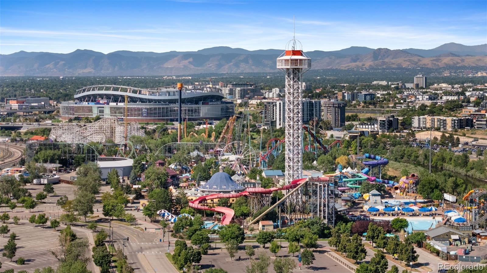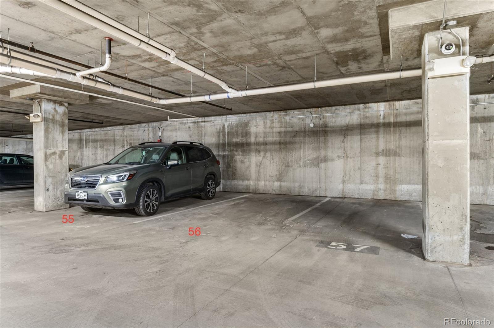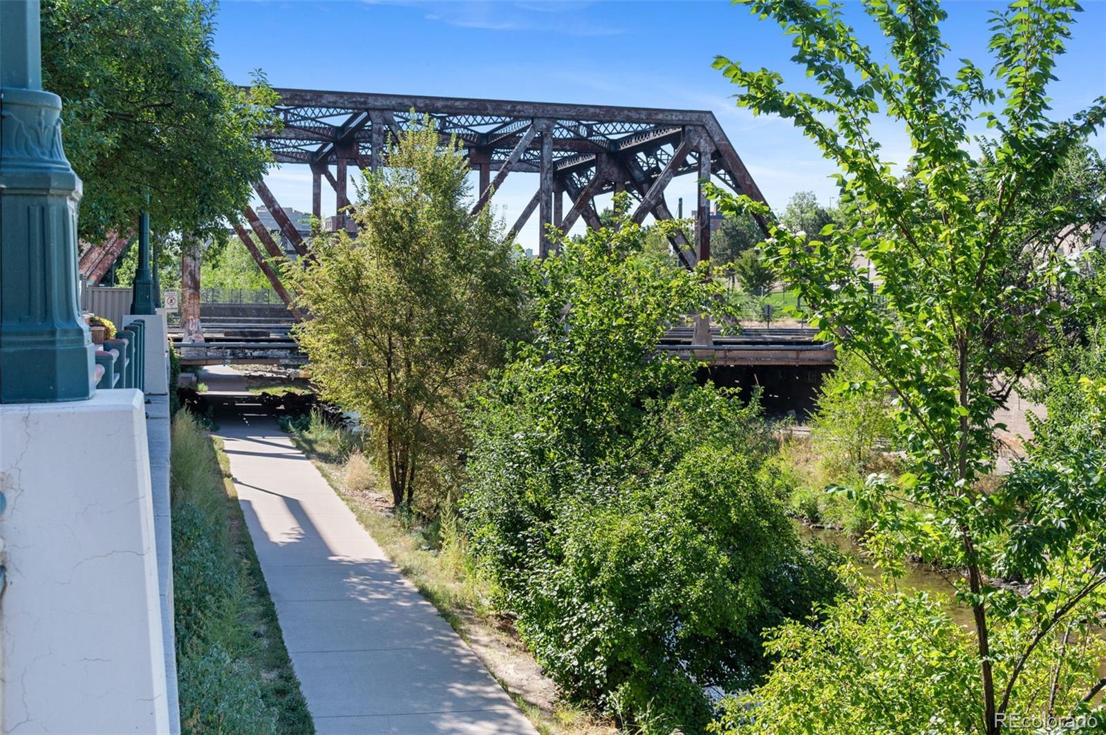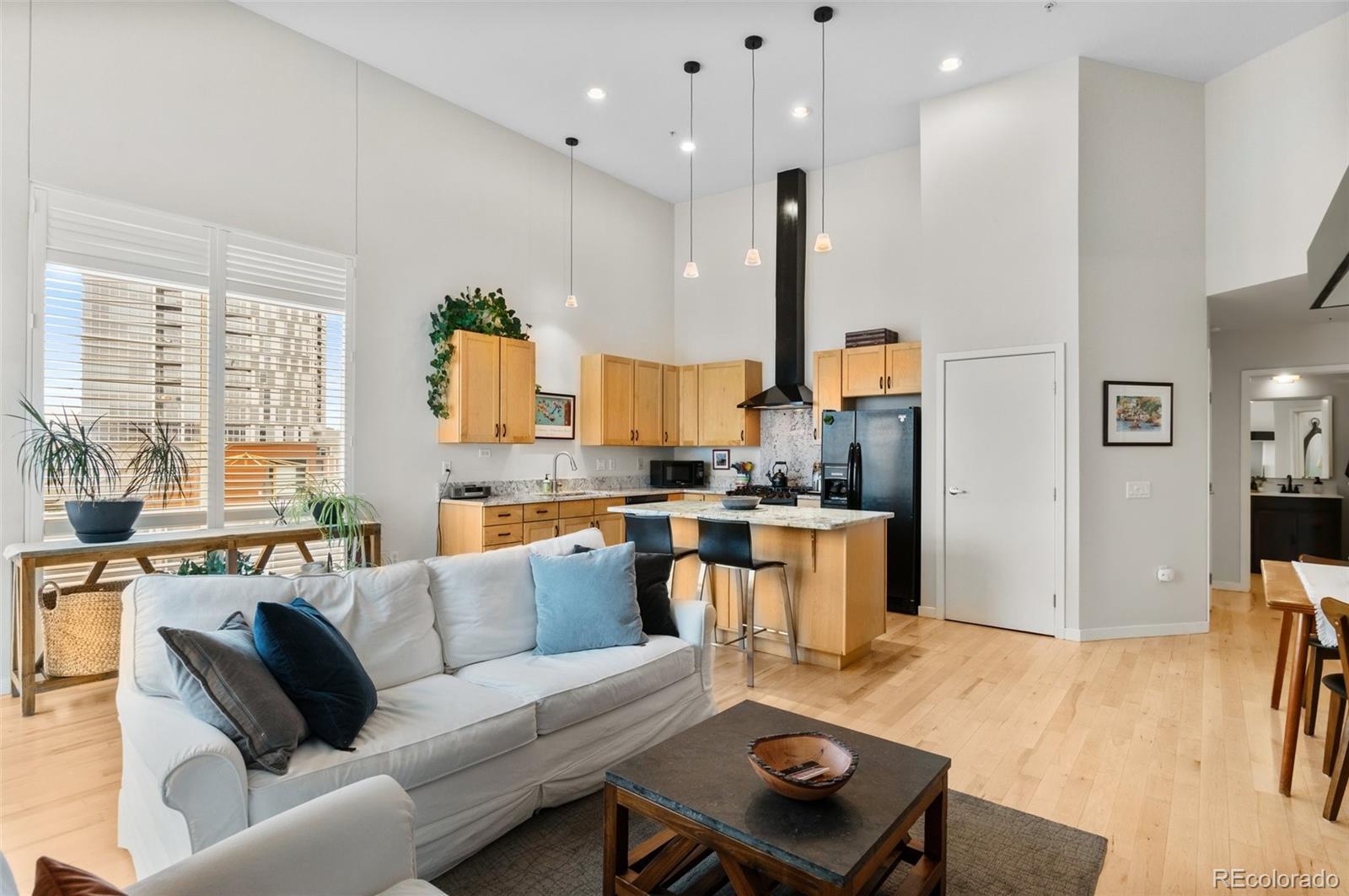 Outstanding penthouse with 2 garage parking spaces!!? This 2 Bedroom 2 Bath 4th floor Penthouse with 14ft ceilings features spectacular riverfront and mountain views! You will enjoy the wrap around terrace that overlooks Cherry Creek and its bike path on those beautiful sunny Colorado days! Oversized windows in this home make the beautiful interior shine. The newly refinished maple hardwood floors are warm and bright. Stunning kitchen complete with expansive solid surface granite countertops top of the line appliances and maple cabinetry. Custom remodeled primary bathroom with oversized tiled shower. Additional features include Hunter Douglas Window shutters, Two secured underground parking spaces (Spaces 55 and 56) which sit directly across from elevator, a very convenient 4th floor Storage unit and garbage chute. This is a One-of-a-kind property in a very desirable Downtown location. Walking distance to Riverfront Park, Elitch Gardens, Confluence Park, Cherry Creek Trail and Pedestrian Bridge to LoHi. Short walk to Union Station and fabulous Downtown restaurants. New Hot water heater, washer dryer included