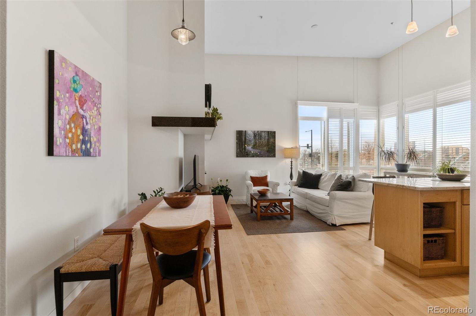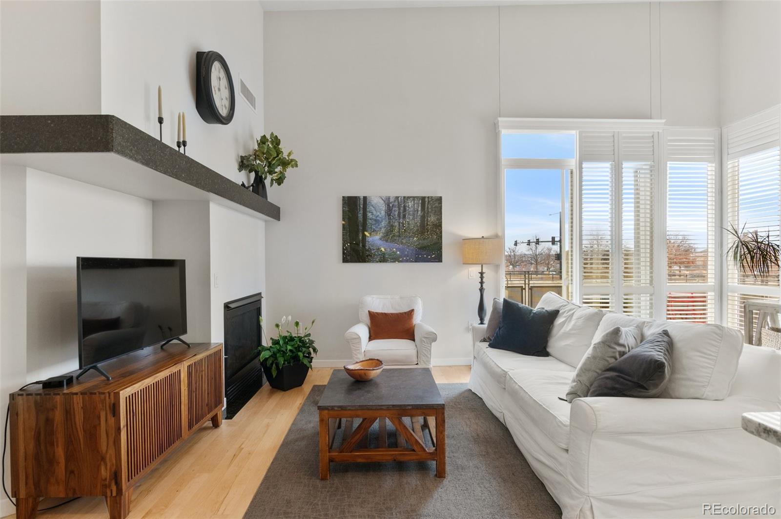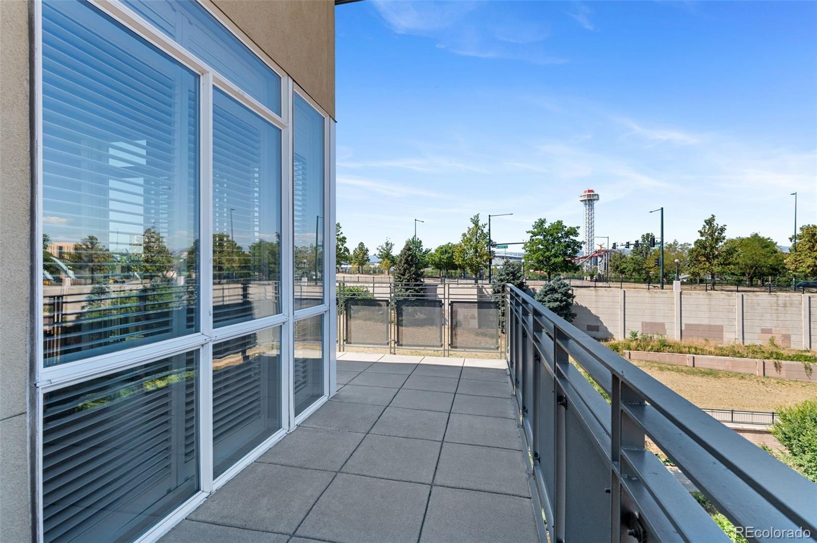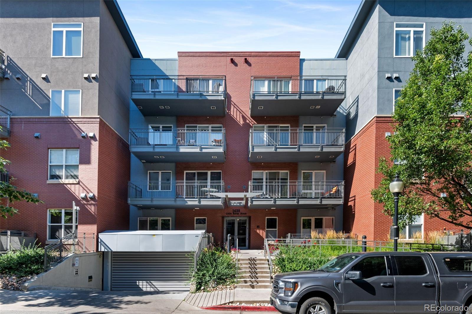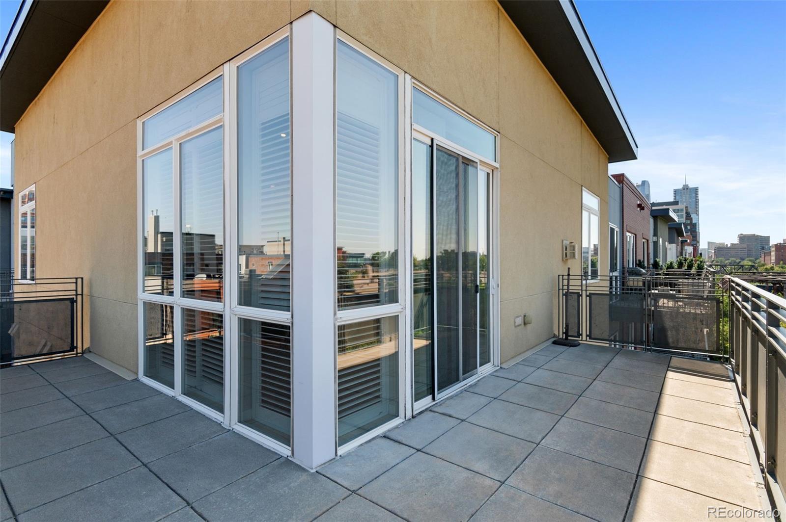 Outstanding penthouse with 2 garage parking spaces!!? This 2 Bedroom 2 Bath 4th floor Penthouse with 14ft ceilings features spectacular riverfront and mountain views! You will enjoy the wrap around terrace that overlooks Cherry Creek and its bike path on those beautiful sunny Colorado days! Oversized windows in this home make the beautiful interior shine. The newly refinished maple hardwood floors are warm and bright. Stunning kitchen complete with expansive solid surface granite countertops top of the line appliances and maple cabinetry. Custom remodeled primary bathroom with oversized tiled shower. Additional features include Hunter Douglas Window shutters, Two secured underground parking spaces (Spaces 55 and 56) which sit directly across from elevator, a very convenient 4th floor Storage unit and garbage chute. This is a One-of-a-kind property in a very desirable Downtown location. Walking distance to Riverfront Park, Elitch Gardens, Confluence Park, Cherry Creek Trail and Pedestrian Bridge to LoHi. Short walk to Union Station and fabulous Downtown restaurants. New Hot water heater, washer dryer included