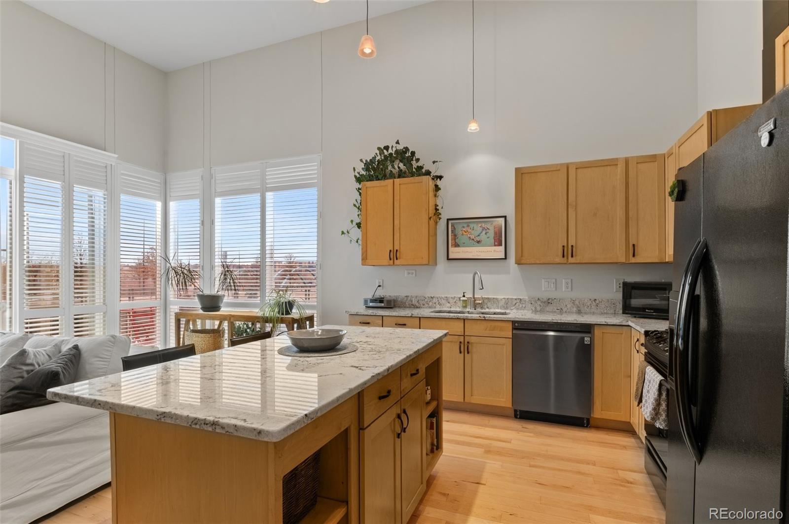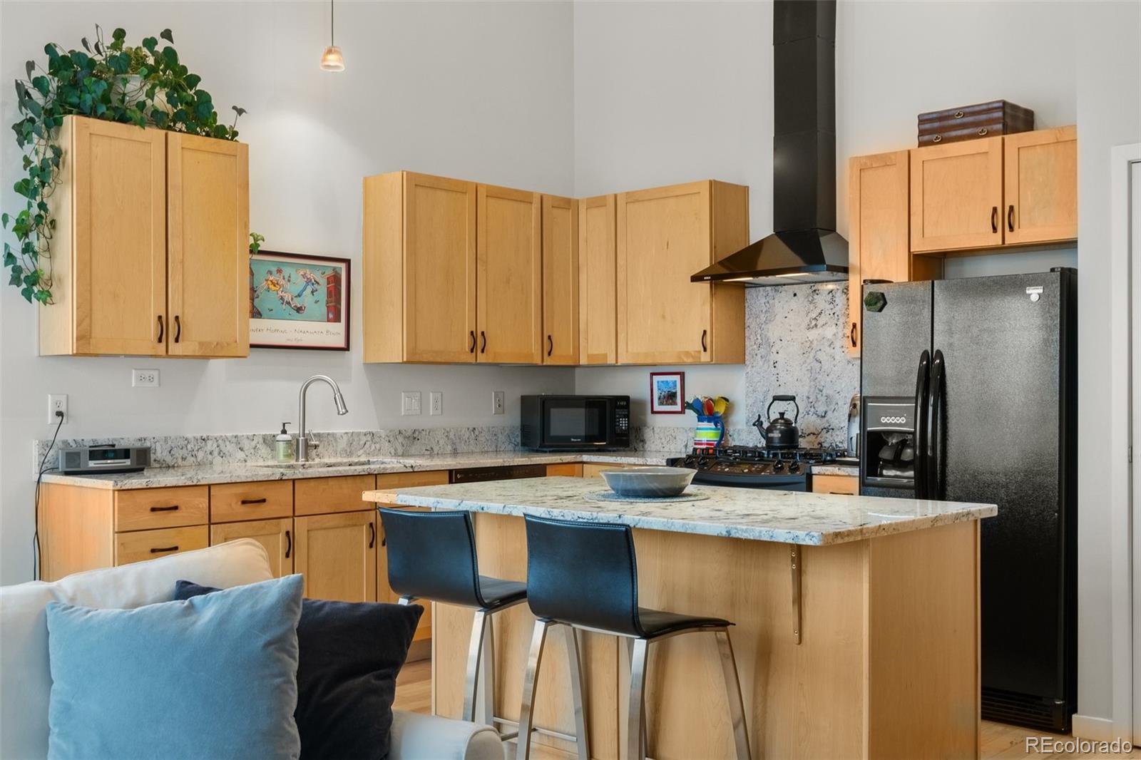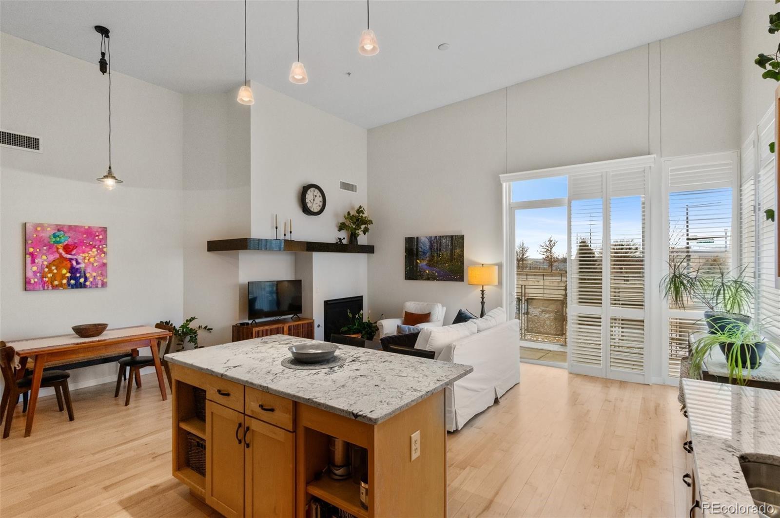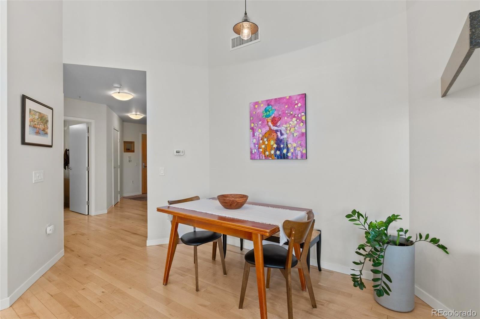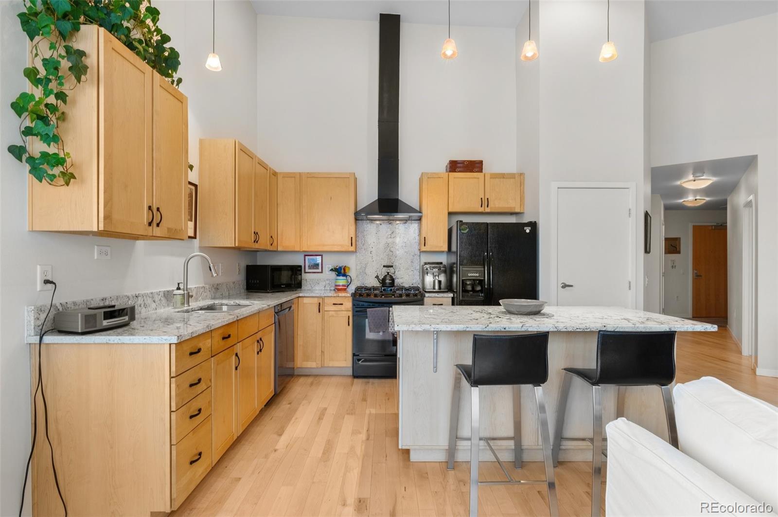 Outstanding penthouse with 2 garage parking spaces!!? This 2 Bedroom 2 Bath 4th floor Penthouse with 14ft ceilings features spectacular riverfront and mountain views! You will enjoy the wrap around terrace that overlooks Cherry Creek and its bike path on those beautiful sunny Colorado days! Oversized windows in this home make the beautiful interior shine. The newly refinished maple hardwood floors are warm and bright. Stunning kitchen complete with expansive solid surface granite countertops top of the line appliances and maple cabinetry. Custom remodeled primary bathroom with oversized tiled shower. Additional features include Hunter Douglas Window shutters, Two secured underground parking spaces (Spaces 55 and 56) which sit directly across from elevator, a very convenient 4th floor Storage unit and garbage chute. This is a One-of-a-kind property in a very desirable Downtown location. Walking distance to Riverfront Park, Elitch Gardens, Confluence Park, Cherry Creek Trail and Pedestrian Bridge to LoHi. Short walk to Union Station and fabulous Downtown restaurants. New Hot water heater, washer dryer included