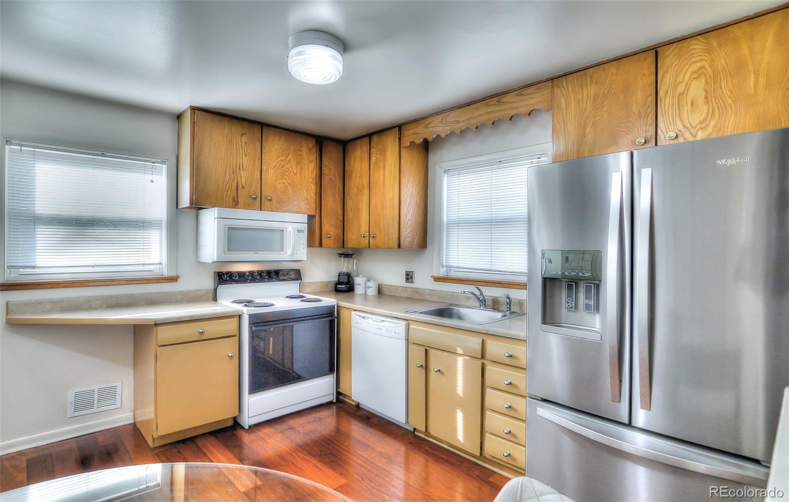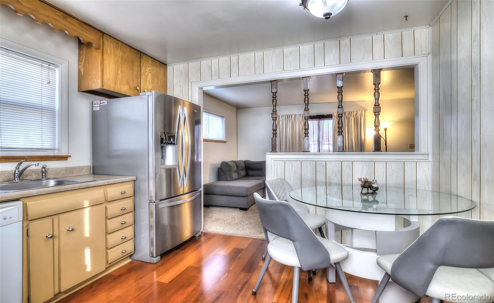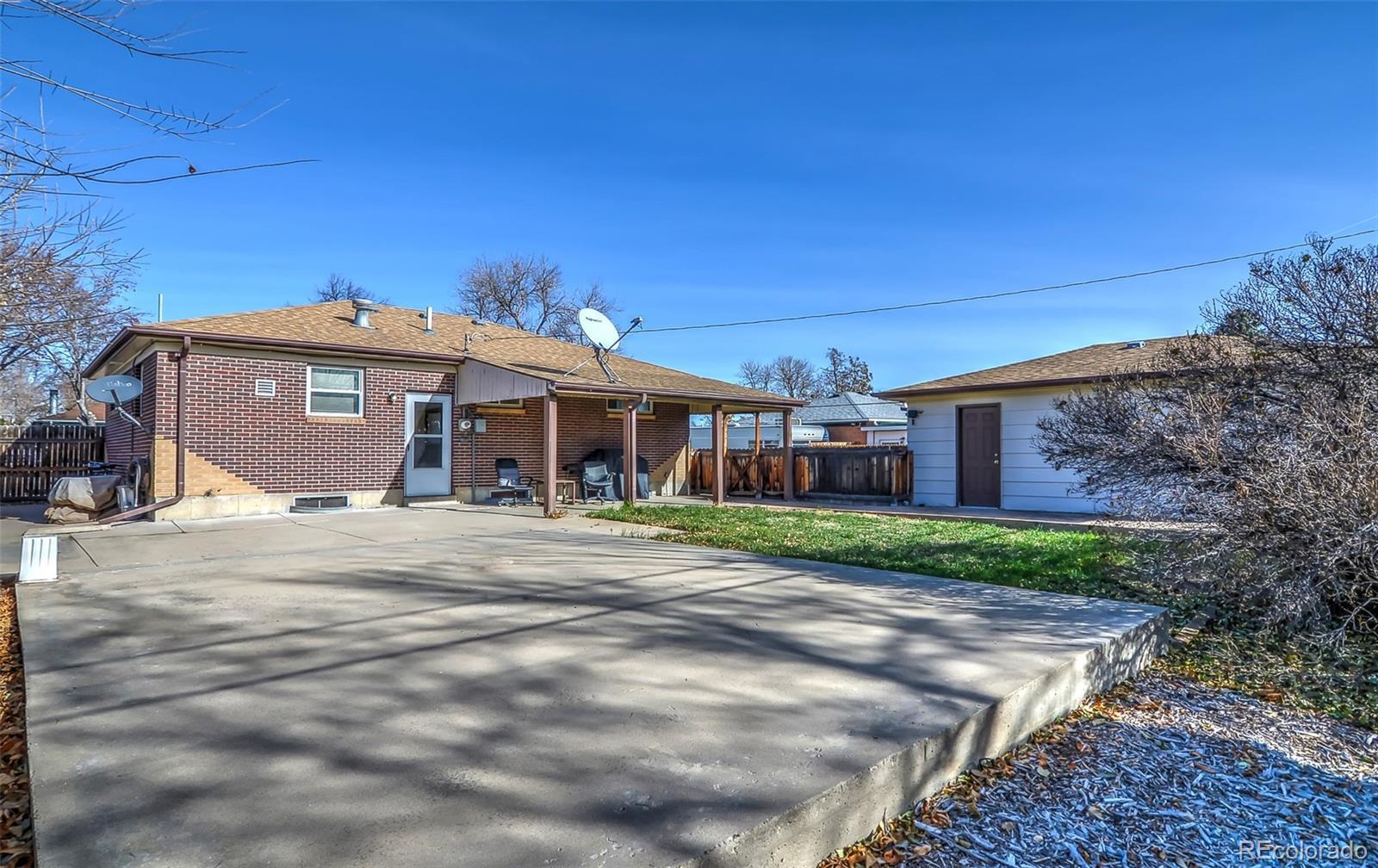 Charming brick Ranch style home located in a prime Northglenn neighborhood just under five minutes away from a variety of shopping stores, restaurants, main services and schools, short and easy access to I-25 highway, walking/biking path and parks, Denver DT can be reached in 20 min by car and DIA airport is only a 30 minute drive. This is truly an ideal location! Three bedrooms, two bath including a fully finished basement. The layout can present many options open to your imagination and skills. Currently, the primary suite, full bath, second bedroom and kitchen, including a dine-in space, are located in the main level, the third bedroom is located in the basement as well as the 3/4 bathroom and laundry room. The basement itself offer many possibilities, an office, workshop, a gym and entertainment room, or it can be dedicated as a rental unit, it has enough space for a living and dinning quarters as well as a separate area for a kitchen, there is a sink in place already, so there is plumbing set up, plenty of electrical outlets for a cooking stove, large refrigerator and a dishwasher if desired, a back door that leads to the patio can be used as a private entrance to this basement room. Partially covered patio and private back yard for enjoyment of the outdoors, BBQ cookouts or simply enjoy a cup of coffee or your favorite refreshment. The detached oversized garage offers plenty of room for two vehicles and extra overhead space for storage. The large driveway offer space for at least six cars or four RV’s, and an extra driveway on the West side offer enough space for an RV, car or SUV, they all provide a very generous parking space for the residents and or visitors. Newer furnace, newer appliance, water heater and AC. Move in ready home, quiet neighborhood, Adams 12 Five Star Schools, easy access, no HOA! Everything a homebuyers may need.
