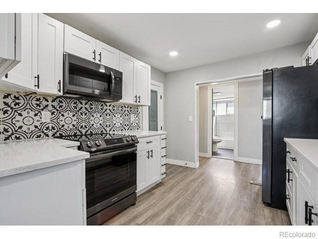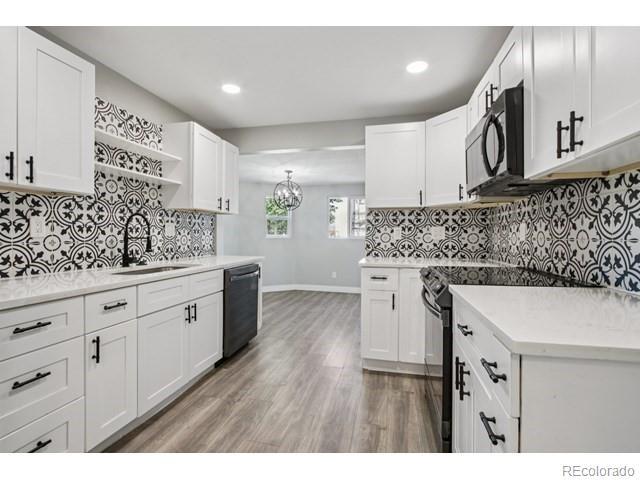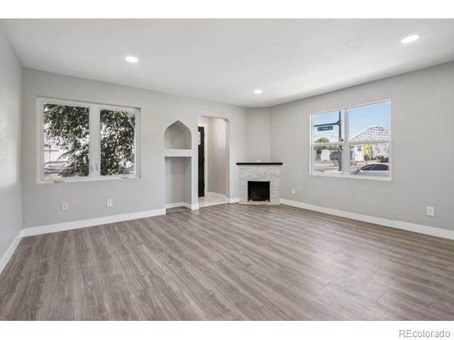 Incredible opportunity on a large corner lot directly across from the historic Lakeside Amusement Park. Just steps from Berkeley Lake and Inspiration Point Park, and only a five-minute drive to the shops, dining, and nightlife on Tennyson Street. This beautifully remodeled Berkeley home blends classic charm with a clean, modern black-and-white aesthetic. Inside, the open-concept layout features a spacious living area, dedicated dining space, and an impressive kitchen outfitted with quartz countertops, black stainless steel appliances, a large pantry, tile backsplash, and matte black finishes throughout. The thoughtful design carries through every detail, from fixtures to doors. The home offers three bedrooms and two full bathrooms across three finished levels. Upstairs, a charming suite features private access to a west-facing rooftop deck—ideal for relaxing evenings and mountain views. The main floor includes a second bedroom and full bathroom, while the finished basement adds a third bedroom or versatile space perfect for a home office or guest suite. Main floor laundry adds convenience, and the attached two-car garage offers extra storage space. The backyard is fully landscaped with mature trees, a privacy fence, and additional off-street parking accessible from the alley. Located at the corner of 46th and Sheridan, this move-in-ready home is the perfect blend of location, design, and functionality. The property is zoned to allow for an ADU (Accessory Dwelling Unit), offering strong investment potential as a future rental or multi-unit setup. Schedule your showing today and experience all that Northwest Denver living has to offer.