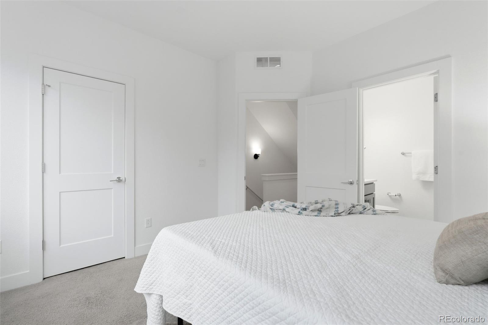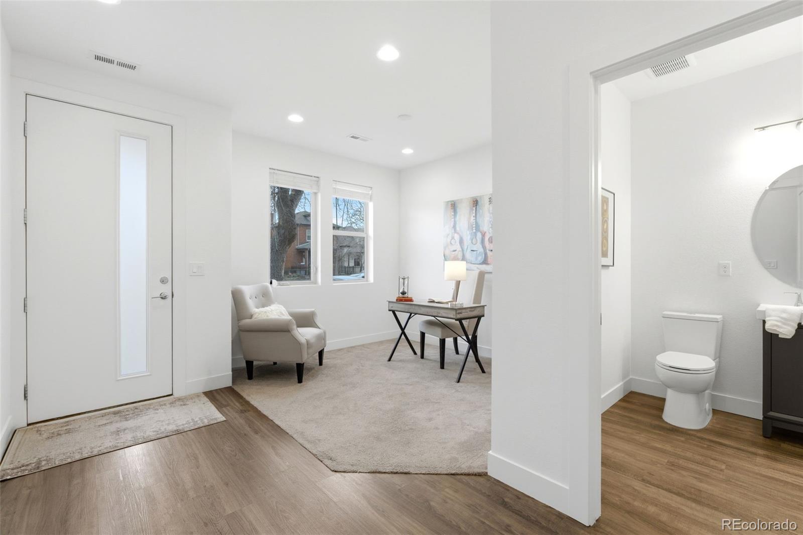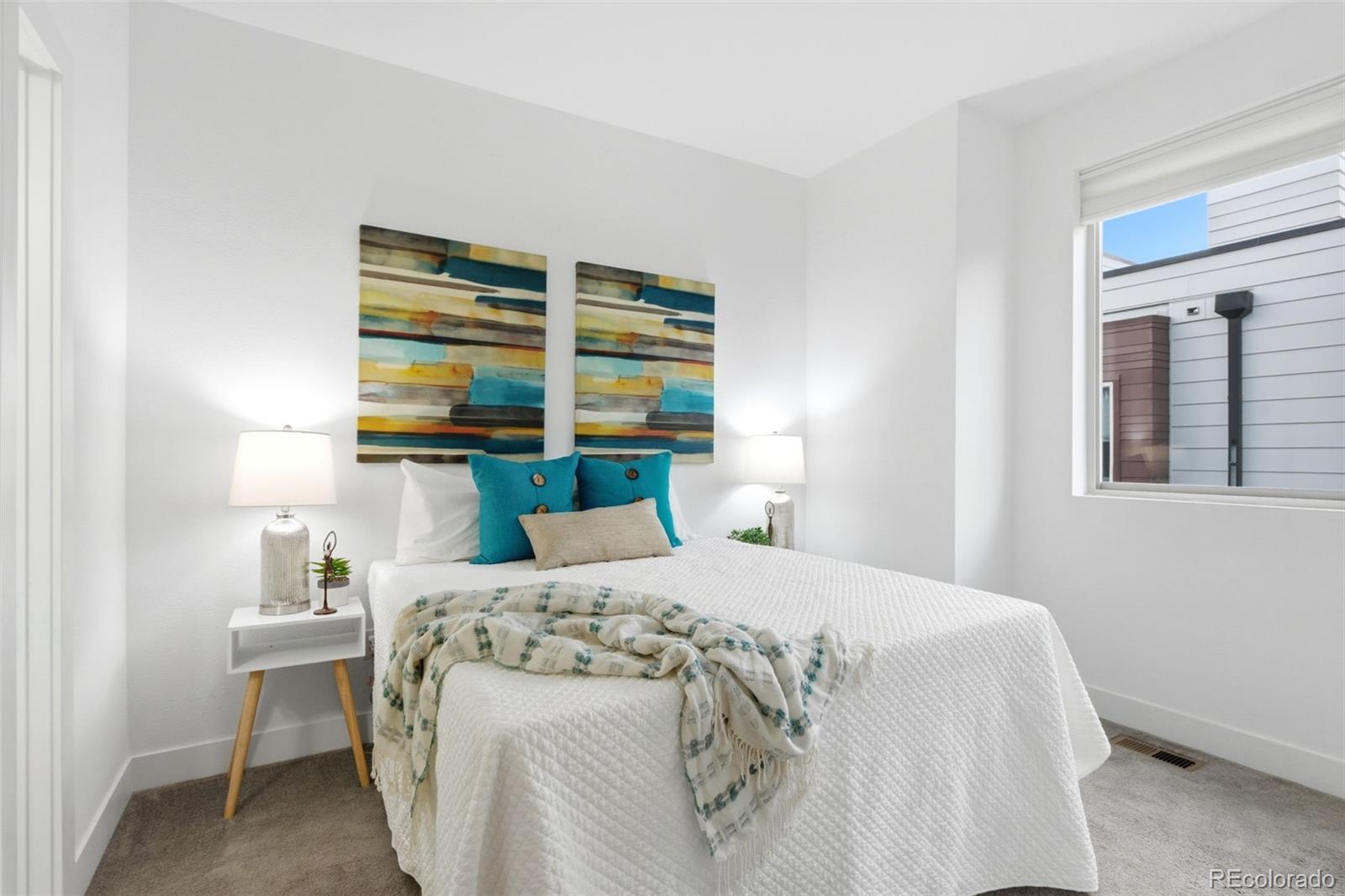 Discover the best of city living at 1081 Mariposa Street, a modern townhome nestled in one of Denver’s most historic and connected neighborhoods. This home places you at the heart of it all — steps from the 10th & Osage Light Rail station for quick commutes, and just minutes from the Santa Fe Arts District, Denver Art Museum, DCPA, and some of the city’s top restaurants, breweries, and entertainment spots. Outdoor enthusiasts will love immediate access to the Cherry Creek and South Platte River bike paths, while sports fans can literally bike to games at Ball Arena or Coors Field. Inside, the thoughtful layout spans three levels of light-filled living. The ground floor offers a flexible entry-level space perfect for a home office, guest suite, or gym — complete with an en suite half bath and the potential to expand to a ¾ bath. This level also provides direct access to the attached garage, a rare convenience in central Denver. Upstairs, you’ll find an airy open-concept living space featuring a contemporary kitchen with a breakfast bar, dedicated dining area, and a bright family room ideal for entertaining or relaxing in natural light. The upper level includes a spacious primary bedroom with a private en suite bath and convenient laundry closet (combo washer/dryer unit included), plus a rare second bedroom with its own full en suite bath — perfect for guests or roommates. Cap it all off with a private rooftop deck offering peek-a-boo mountain and downtown views — the ideal setting for morning coffee or sunset gatherings. With quick access to I-25, downtown Denver, and City Park, this home seamlessly blends connected urban living with comfort and versatility.