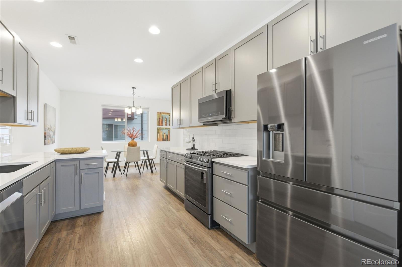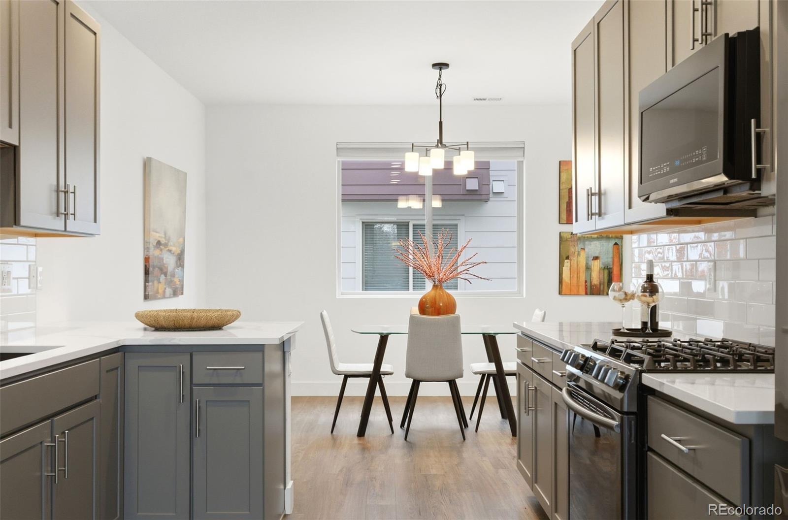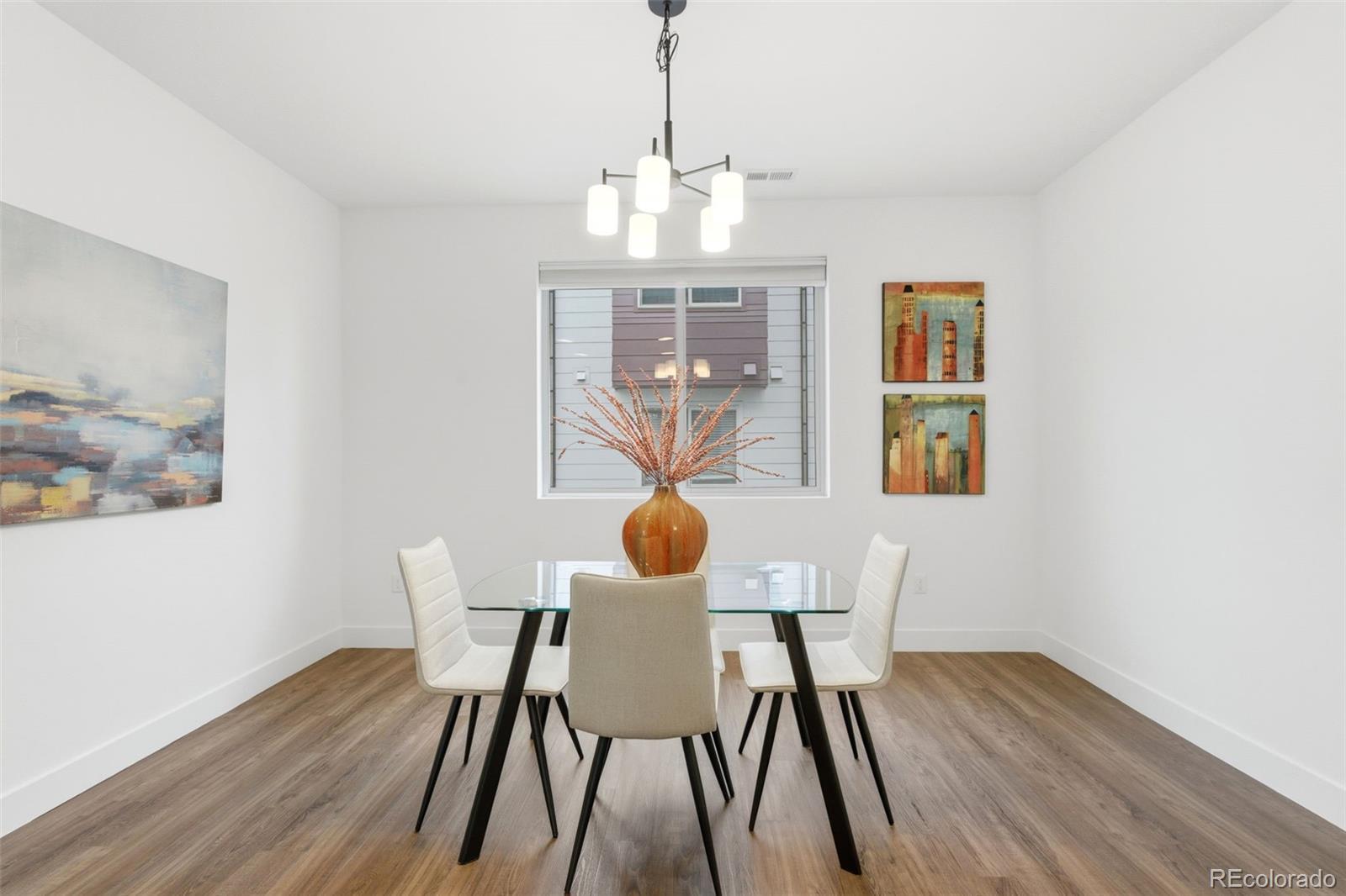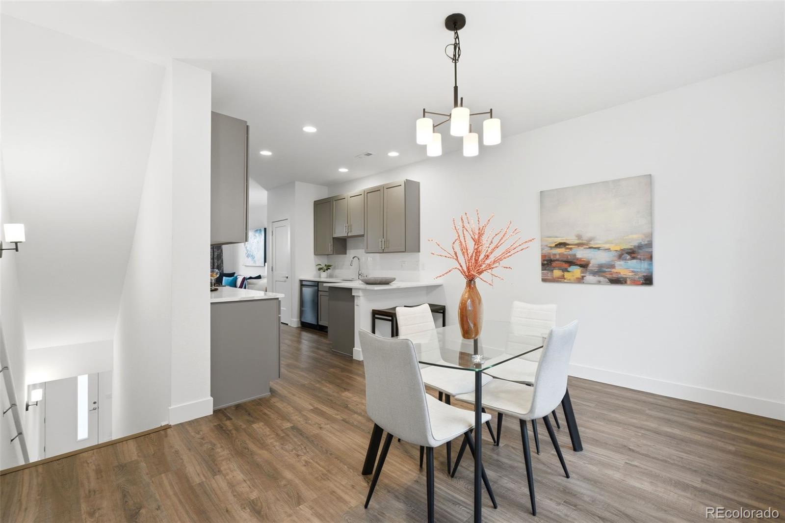 Discover the best of city living at 1081 Mariposa Street, a modern townhome nestled in one of Denver’s most historic and connected neighborhoods. This home places you at the heart of it all — steps from the 10th & Osage Light Rail station for quick commutes, and just minutes from the Santa Fe Arts District, Denver Art Museum, DCPA, and some of the city’s top restaurants, breweries, and entertainment spots. Outdoor enthusiasts will love immediate access to the Cherry Creek and South Platte River bike paths, while sports fans can literally bike to games at Ball Arena or Coors Field. Inside, the thoughtful layout spans three levels of light-filled living. The ground floor offers a flexible entry-level space perfect for a home office, guest suite, or gym — complete with an en suite half bath and the potential to expand to a ¾ bath. This level also provides direct access to the attached garage, a rare convenience in central Denver. Upstairs, you’ll find an airy open-concept living space featuring a contemporary kitchen with a breakfast bar, dedicated dining area, and a bright family room ideal for entertaining or relaxing in natural light. The upper level includes a spacious primary bedroom with a private en suite bath and convenient laundry closet (combo washer/dryer unit included), plus a rare second bedroom with its own full en suite bath — perfect for guests or roommates. Cap it all off with a private rooftop deck offering peek-a-boo mountain and downtown views — the ideal setting for morning coffee or sunset gatherings. With quick access to I-25, downtown Denver, and City Park, this home seamlessly blends connected urban living with comfort and versatility.