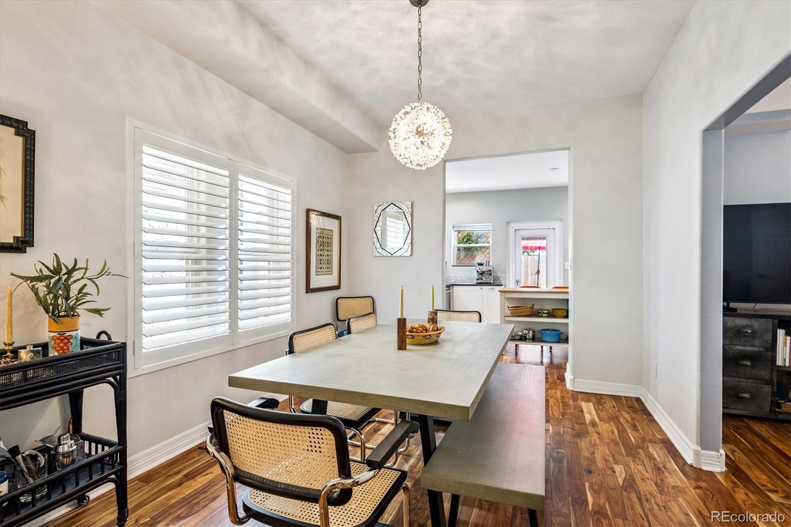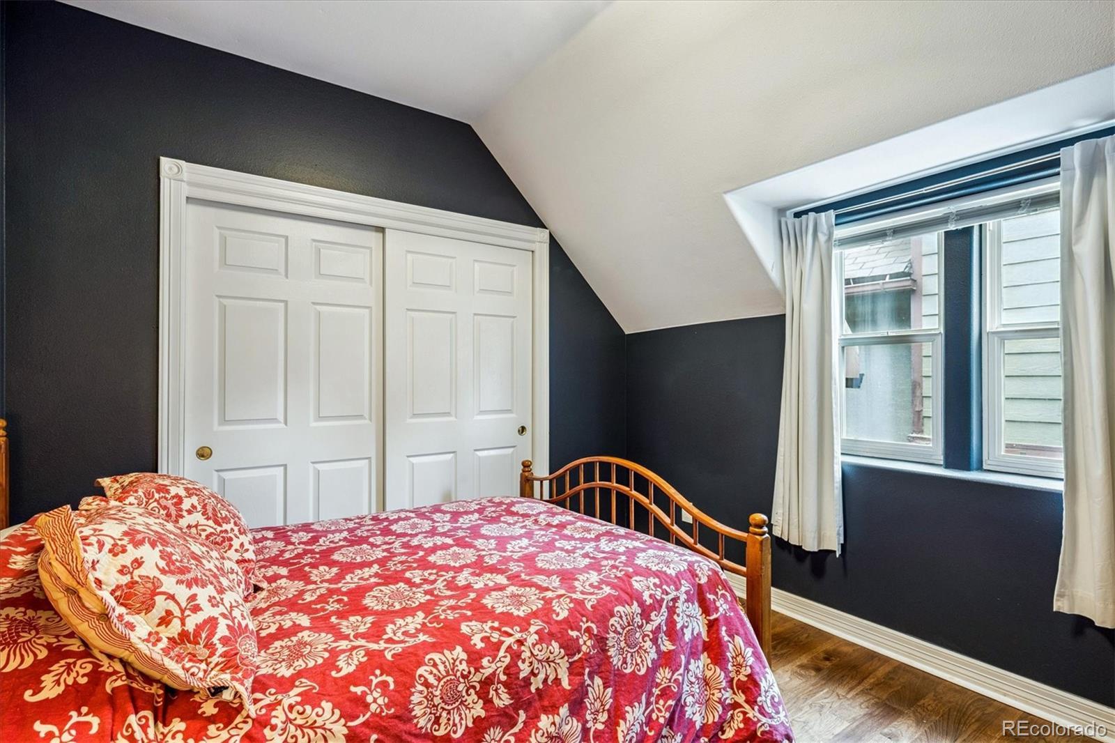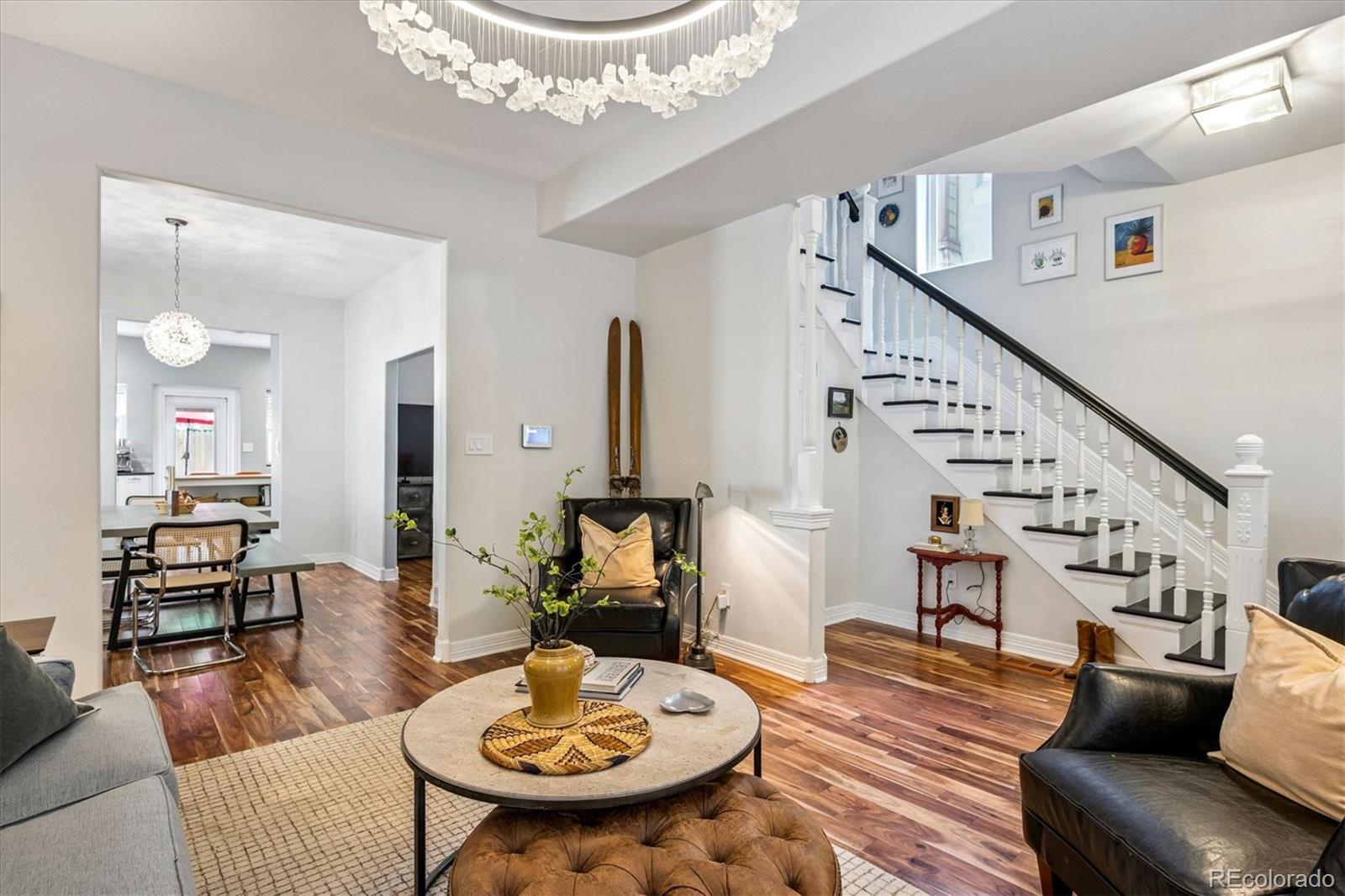 This house is easy to make into a home. Step inside this darling Victorian in San Rafael, and you will want to make it yours. Utterly quiet and wrapped in the comfort of new windows with custom shutters that offer unparalleled privacy, new kitchen and baths, new electrical, new HVAC, new roof, and new plumbing (including the main water line), this home has every modern convenience. All of the headaches (and major expenses) of yesteryear have been resolved. You can't beat the residential feel of this home surrounded by $1M+ properties, and places like Beyond Thai Cafe and Sun Market within mere blocks. Have friends for dinner, then take them to Sweet Action for ice cream and a nightcap in their secret speakeasy, 'Retrograde.' Within a mile is City Park for Jazz, Denver Central Market in Rino, Marczyk's or Watercourse on 17th, plus dozens of other entertainment and essential service spots all along the way. You CAN actually live car-less in this home. Sacrifice no aesthetics: the original newel post, banister, and stairs all speak to the vintage style, and the hardwood floors and high ceilings keep the house airy and bright. The Timothy Oulten chandelier in the LR is included. A coat closet, main-level laundry room, and pretty half bath make for easy living and entertaining. The bonus room off the dining room is being used as a TV room, but could easily become an office or exercise space, and it has a large closet. Upstairs, 3 bedrooms - including the primary - are all bright and have spacious closets. New hickory floors are gorgeous and capture the charm of cottage living. Soaring ceilings and a skylight are highlights of the primary with a full bath and walk in closet. Escape to the basement 'Bourbon Room' for a game of chess or a quiet moment. Off the 'Bourbon Room' is a large storage area, and the owners are using part of this space as an office. The backyard is a city dwellers delight. Private and manageable, it evokes nights in secret European gardens. Come see!