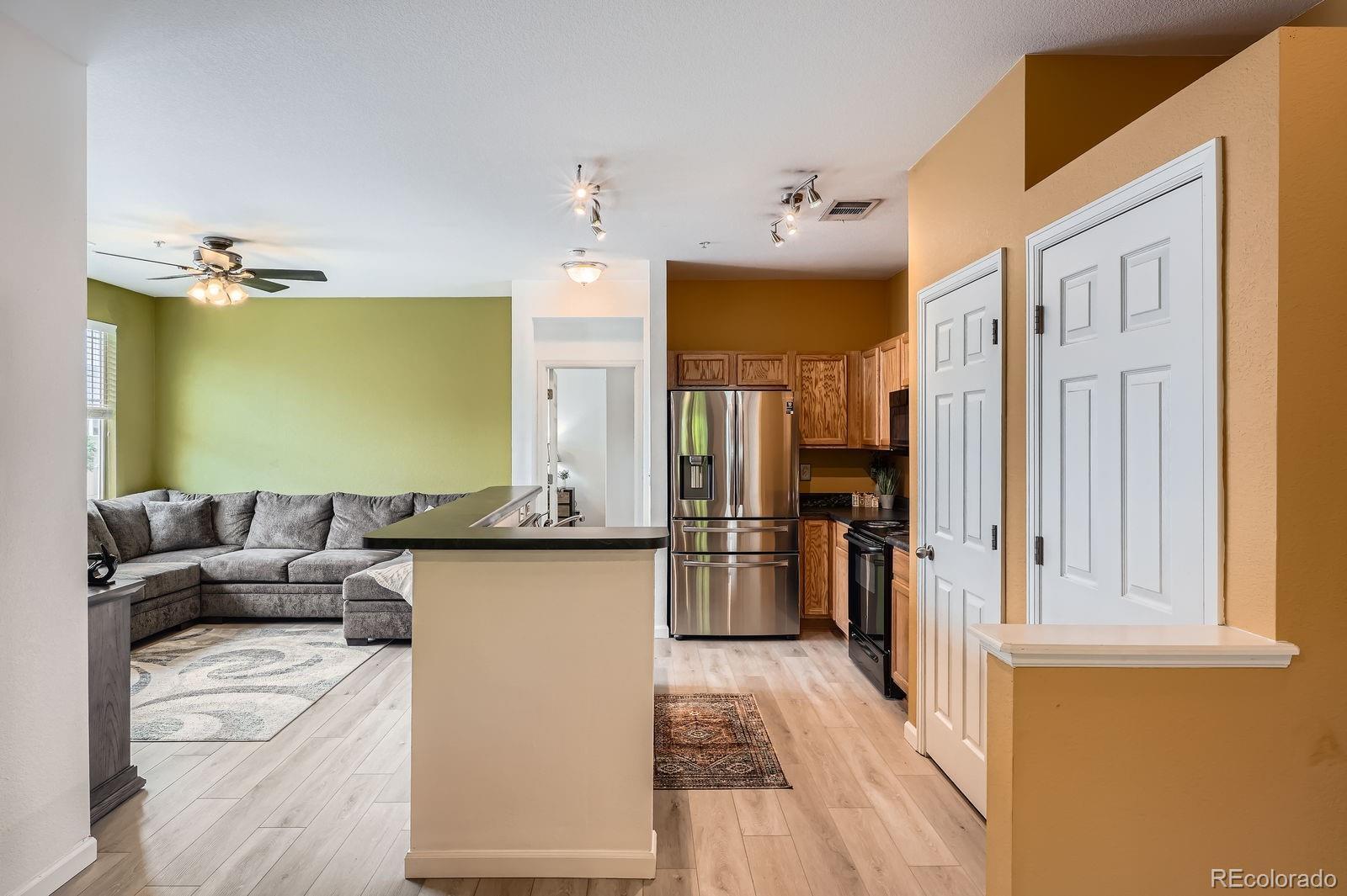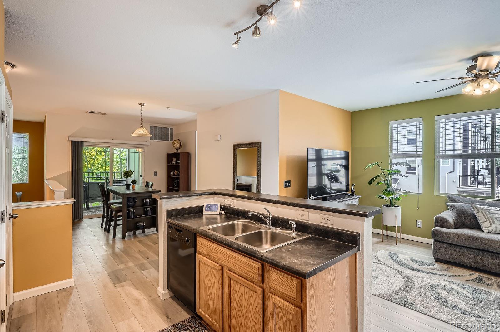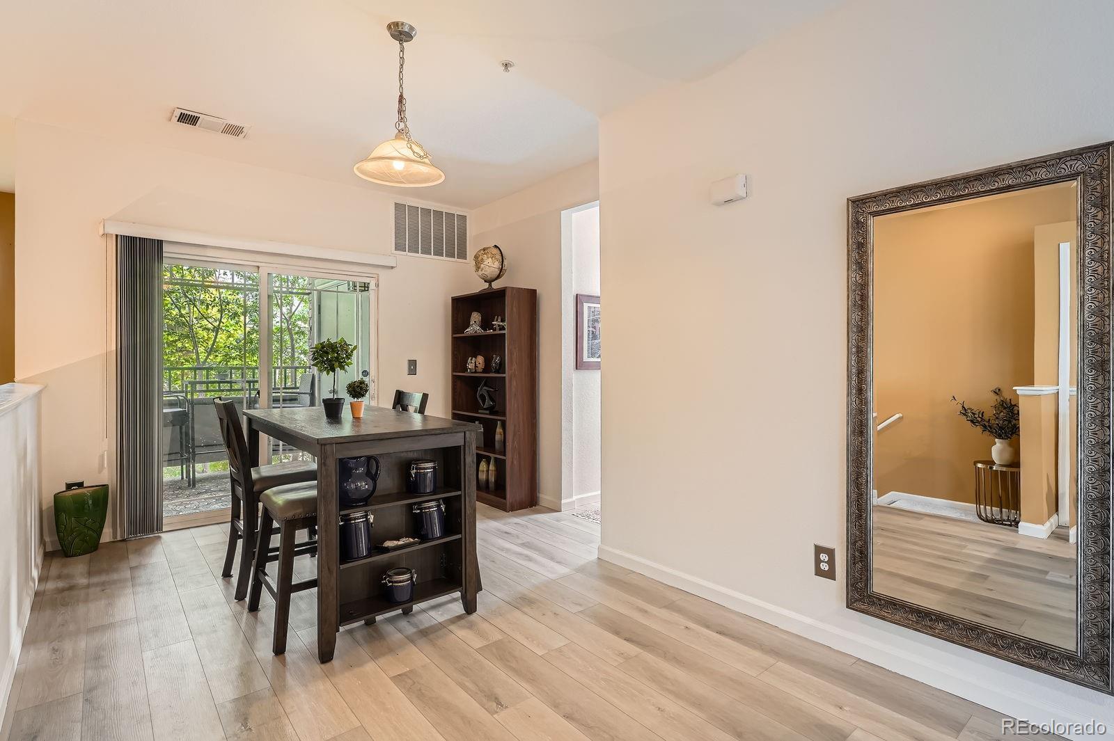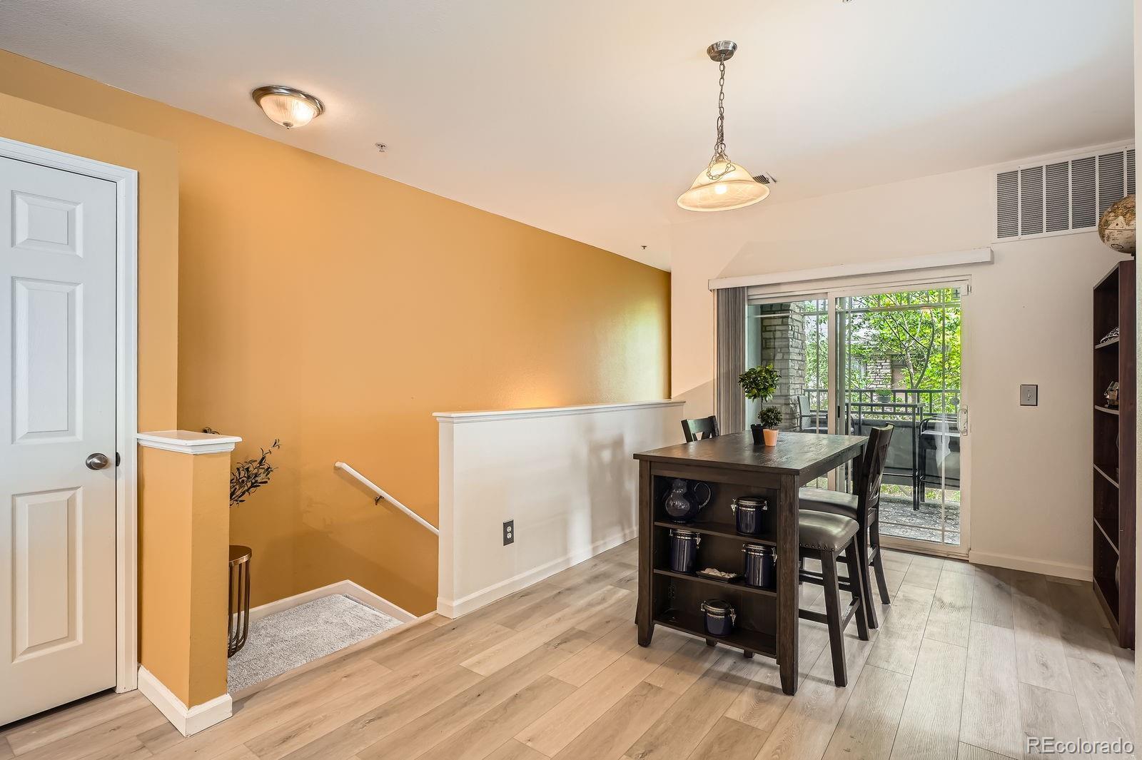 PRICE IMPROVEMENT! Welcome to this amazing new listing in a desirable southeast Denver community, where charm meets convenience. This inviting end unit townhouse-style condo has great architecture with no one above or below. The unit boasts beautiful new luxury vinyl plank flooring for easy maintenance and new carpet on the stairs. The open layout offers a spacious and comfortable living experience, large living room, dining room and open kitchen with ample cabinets, counter space, breakfast bar and pantry. The primary suite is spacious and bright and is complete with a walk-in closet and ensuite bathroom with luxurious soaking tub. The second bedroom offers great flexibility, ideal for guests, a home office, or both and sits adjacent to the second full bath. The 9x7 covered balcony/patio looks out to trees, creating a serene sense of privacy. Additional highlights include all windows have screens, a new garbage disposal, a newer water heater (11/2021), newer furnace and A/C, and an attached garage with opener. The community offers wonderful amenities such as a pool, hot tub/spa and playground. This fantastic property is just minutes from local dining, shops, Cherry Creek, Glendale, scenic trails and major roadways. This is the kind of home that truly checks all the boxes. Enough extra LVP to finish the primary bathroom.