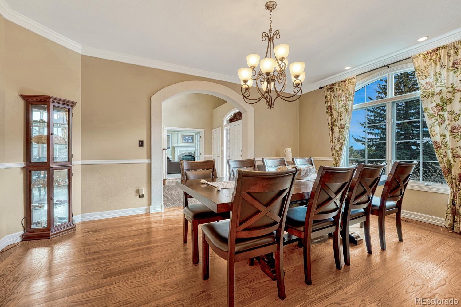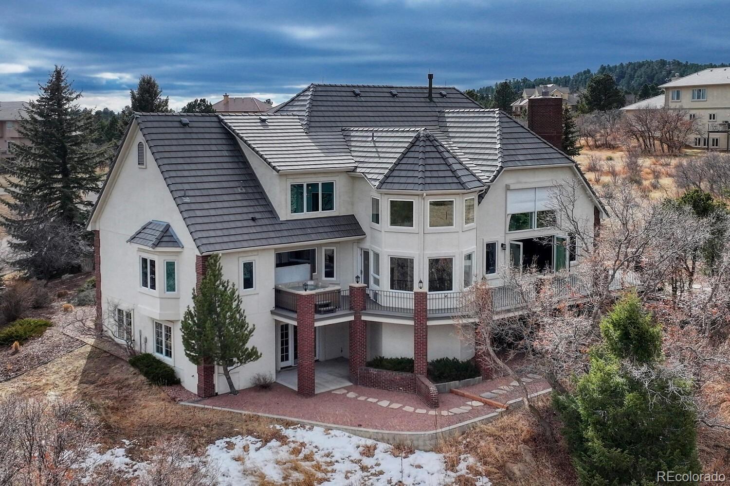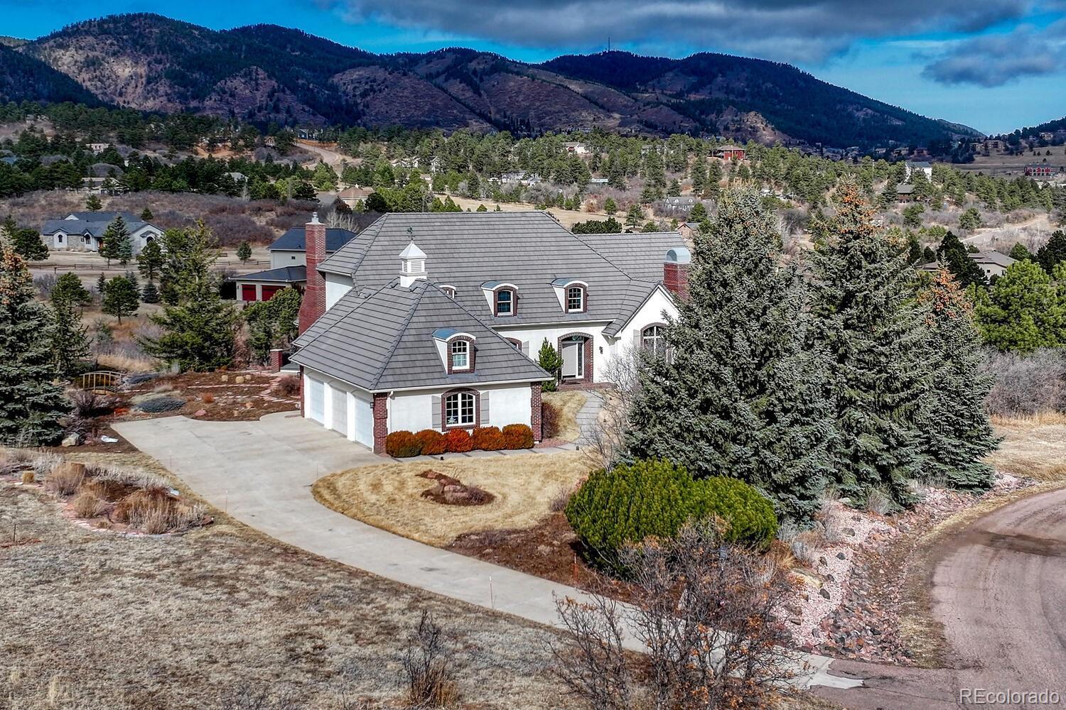 620 Forest View Way offers an exceptional Colorado living experience on 3 acres with beautiful mountain views! Located in the highly sought after Forest View Estates neighborhood and Lewis Palmer School District 38! A truly unique French Country style home with stunning views from every window. When you enter through the front door you know this house is special with a winding stair case & beautiful brick floors. This home has 4 bedrooms, 6 bathrooms and a 3-car garage. This gourmet kitchen is a chef’s dream. Beautiful granite countertops & custom cherry wood cabinets, equipped with top-of the line appliances, Subzero refrigerator, Kitchen-aid double convection ovens and gas cooktop, microwave, a reverse Osmosis water system and plenty of space to spread out. Also, you will find a spacious eating area with a walk-in pantry & half bath. In the large great room you will find soaring ceiling and beautiful craftsman wood work throughout, a fireplace and built-ins for plenty of storage. Step outside onto the large composite deck while noticing the new 4 panel Bi-fold glass sliding door that opens all the way up. Also, on the main is the large primary suite with French doors, luxurious 5-piece bath, soaking tub, and a generous walk-in-closets, remote controlled blinds and private deck with a salt water hot tub. Laundry & sun room are on main as well. Upstairs you will find 2 private bedrooms suites, each with a private bath & walk-in-closet. The walk-out lower level features a spacious family room with a media & game area, a large bedroom w/attached bath and walk-in closet, wine room and a large storage room! Seamless indoor/outdoor access flows to the covered patio for entertaining. Extra features & upgrades: Central Vacuum System, tile roof, newer 3 zone HVAC system, newer water heaters, personal home safe, whole house humidifier, 9 zone sprinkler system! Easy access to I-25, COS & Denver. Don't miss this opportunity to own this one-of-a-kind property!